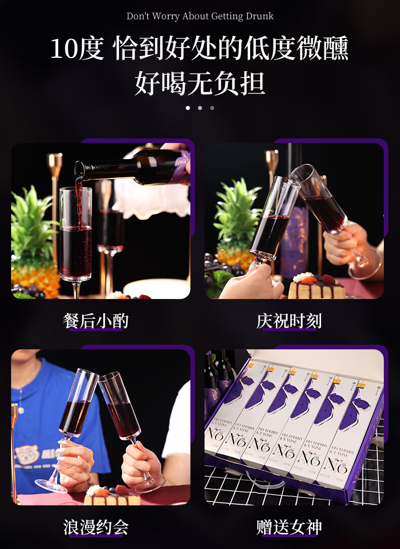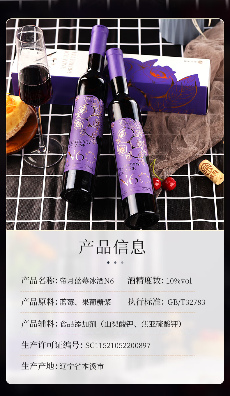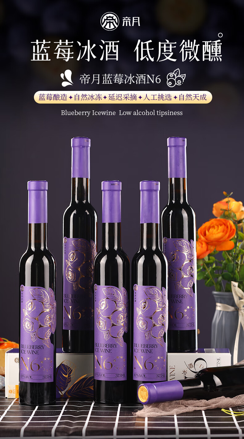 帝月蓝莓冰酒N6低度微醺女士甜型果酒国产红酒整箱6瓶装送礼长辈 【整箱】冰酒N6 375ml*6瓶(赠开瓶器)