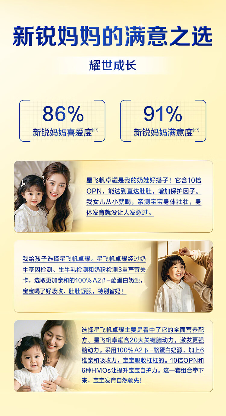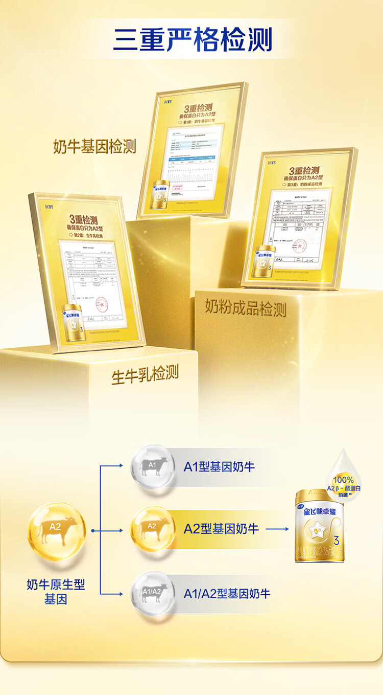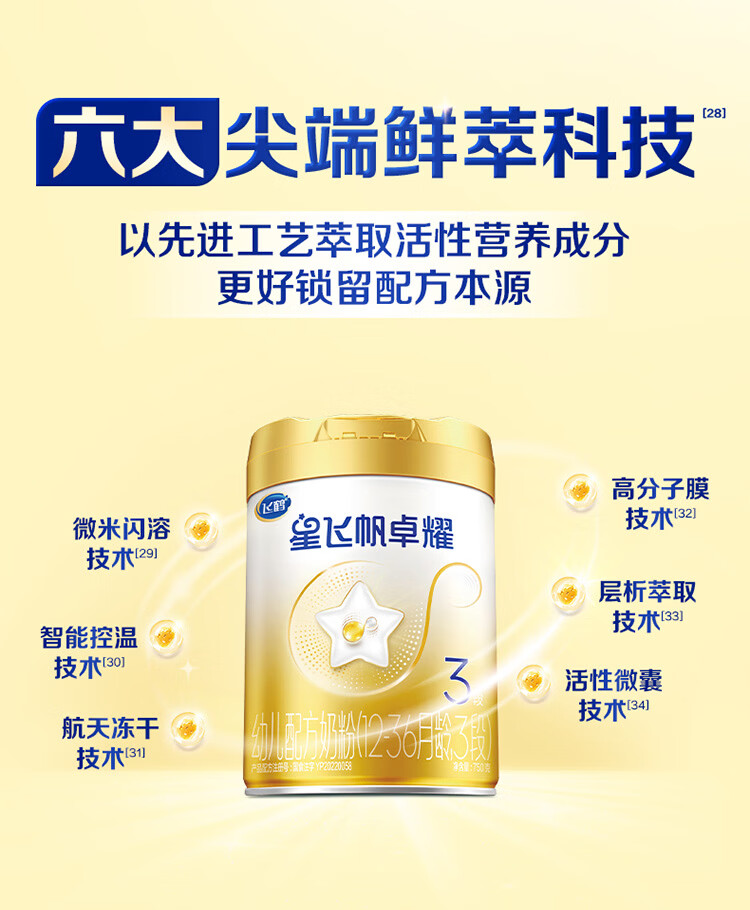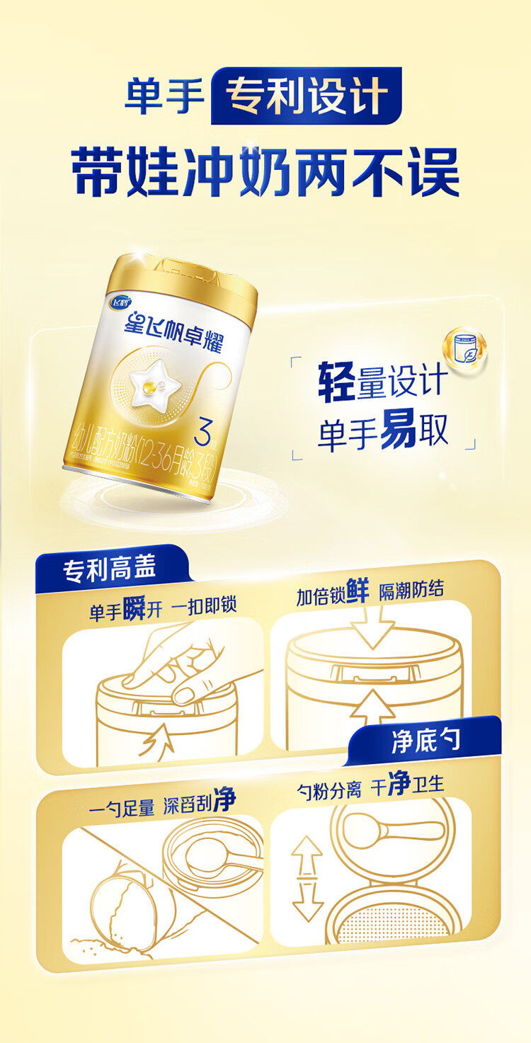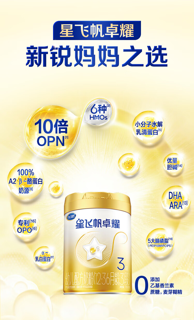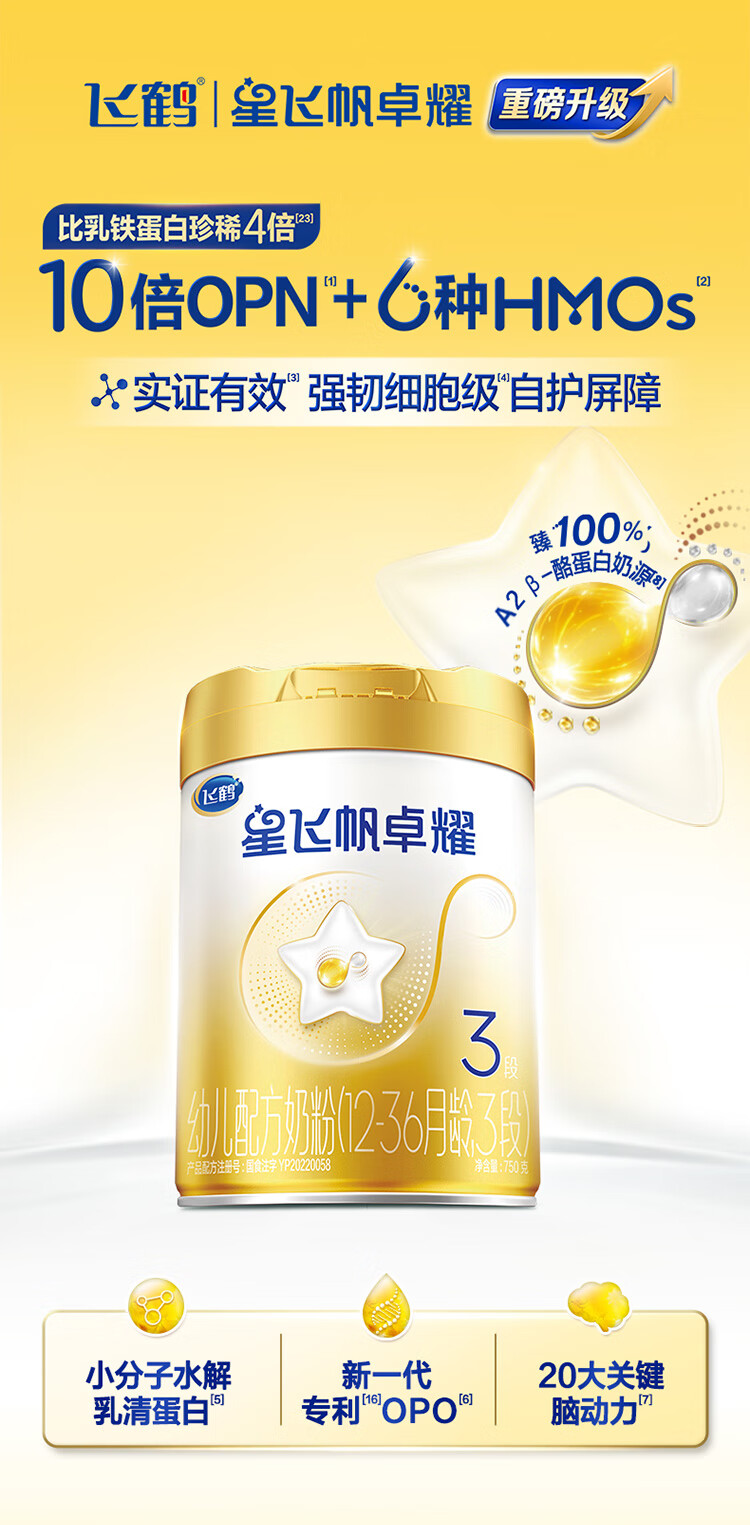飞鹤星飞帆卓耀A2 β-酪蛋白奶源版 幼儿配方奶粉3段(1-3岁) 750g