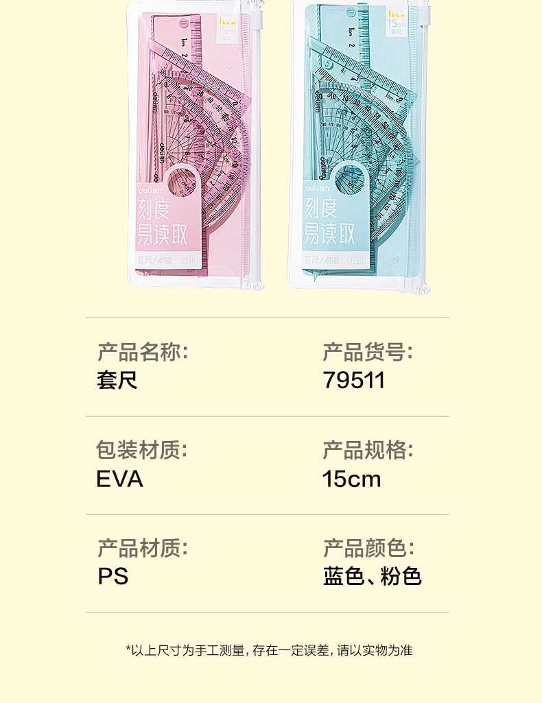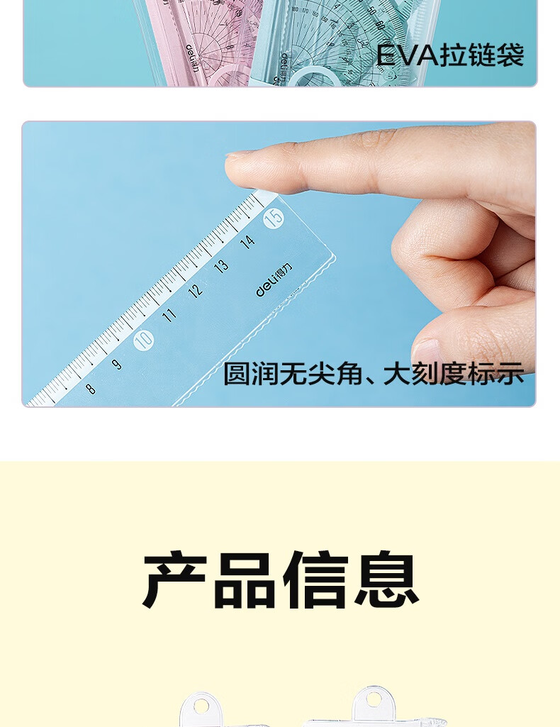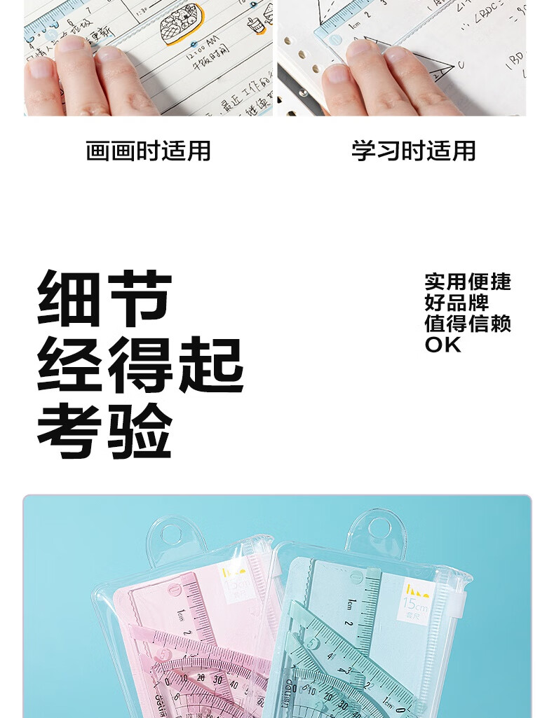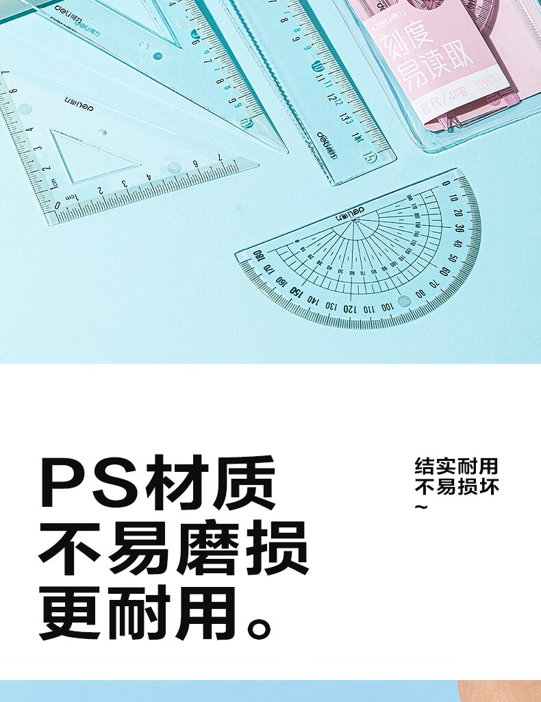 得力学生考研文具高考中考考试绘图套尺(直尺*1+三角尺*2+量角器*1)套装 尺子