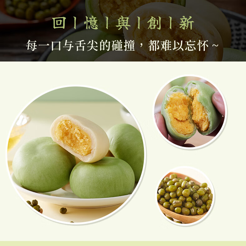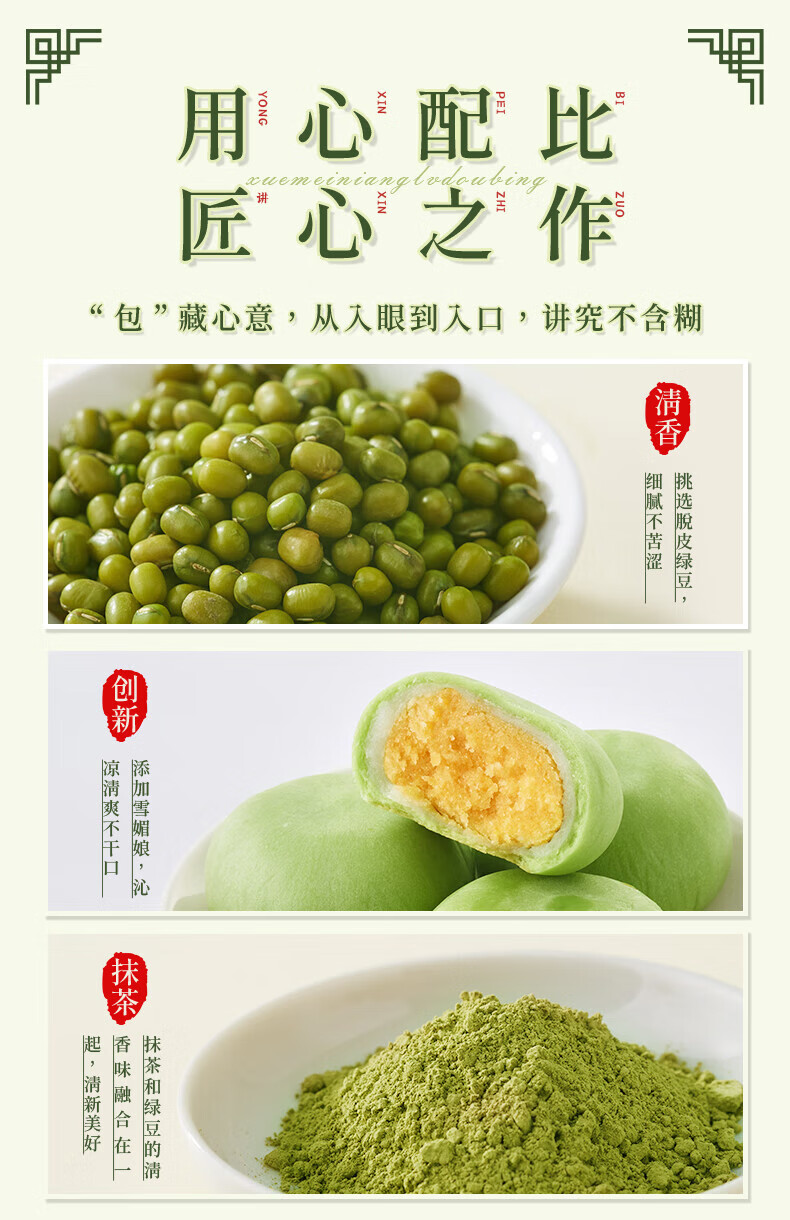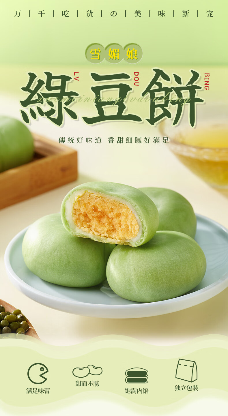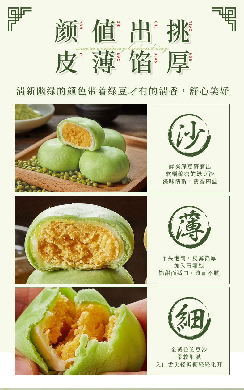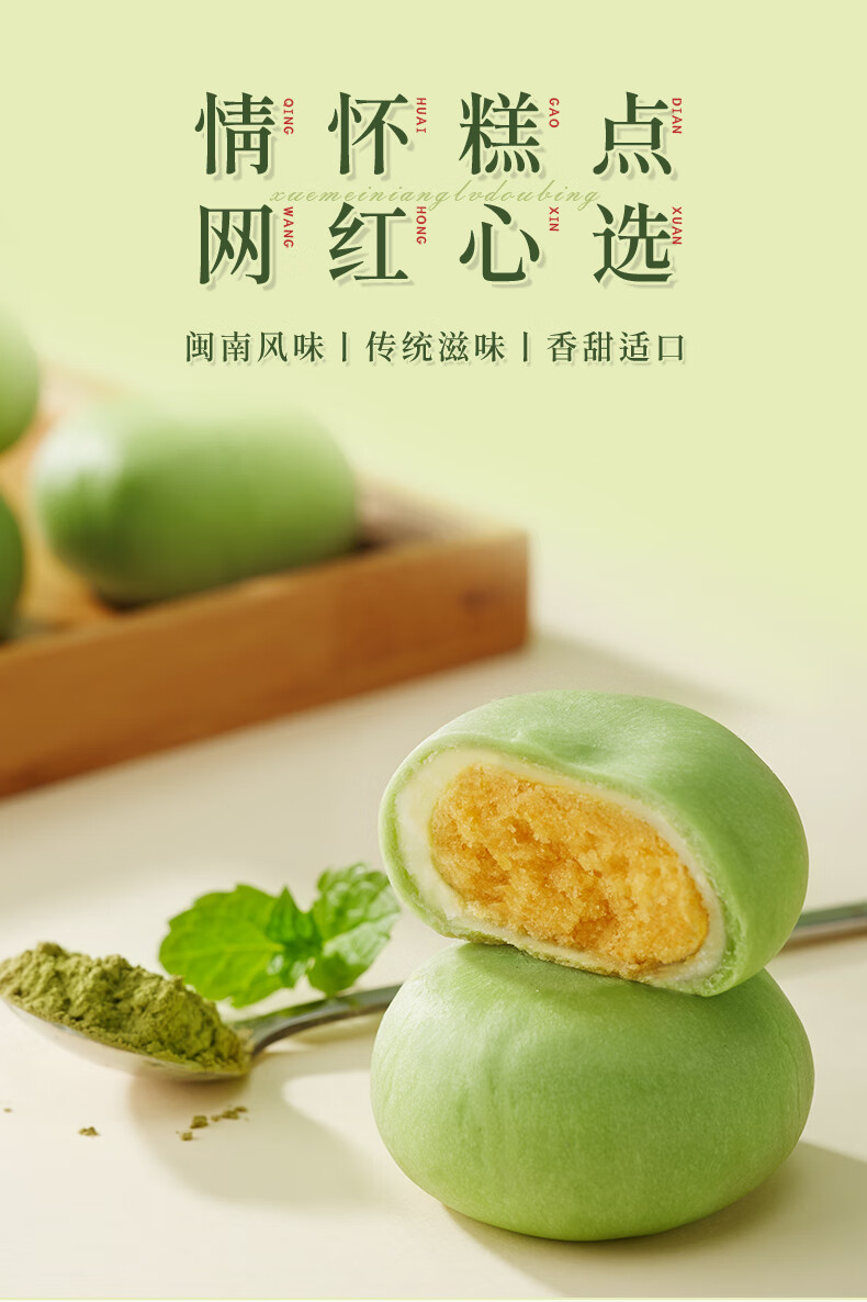 比比赞(BIBIZAN)抹茶雪媚娘绿豆饼1002g经典传统风味面包蛋糕点心饼干休闲零食品