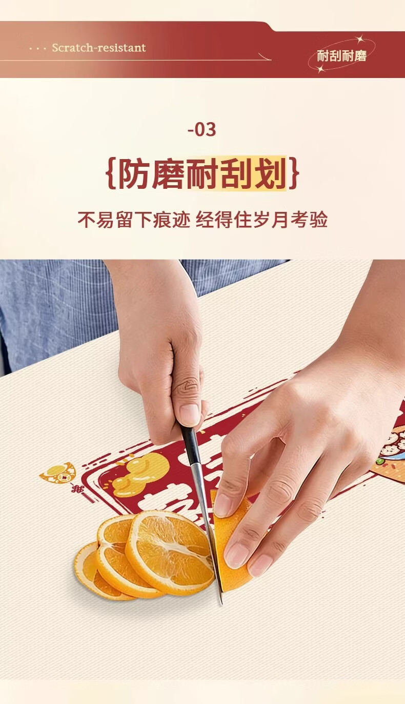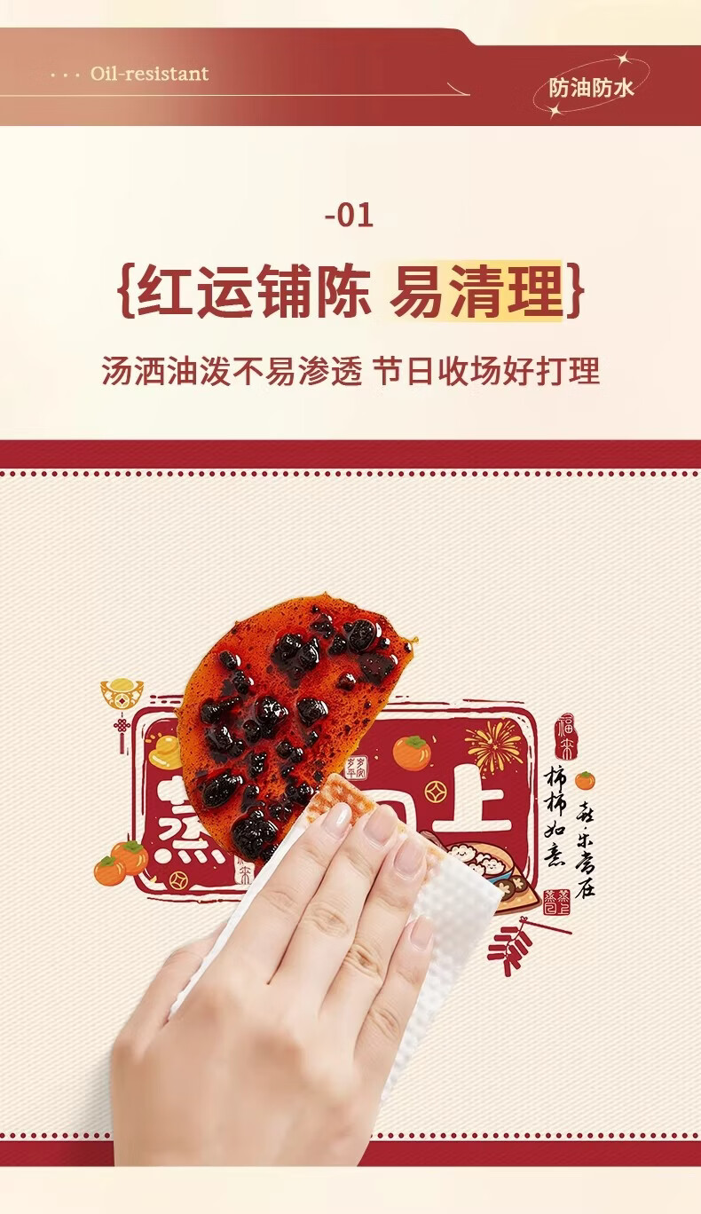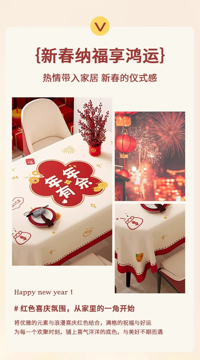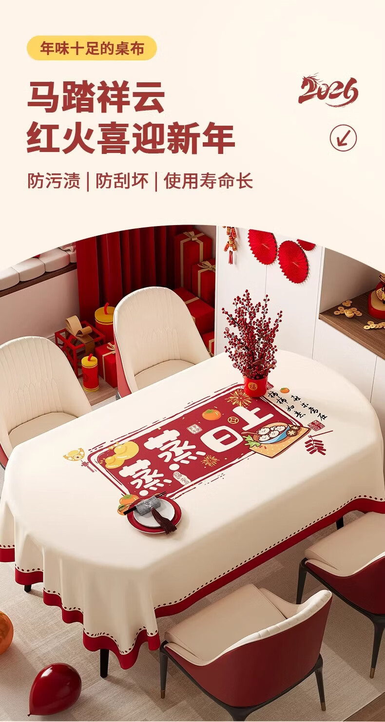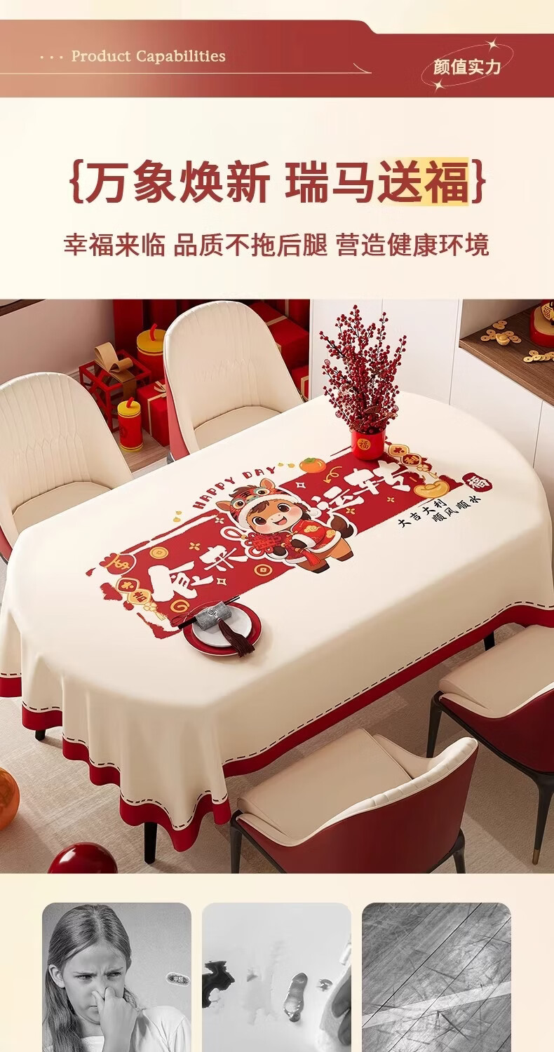 家毅新年桌布防水防油免洗防烫餐桌布轻奢感马年红色喜庆茶几台布 顺气万变【健康母婴级】 60*120cm(防油 防滑)