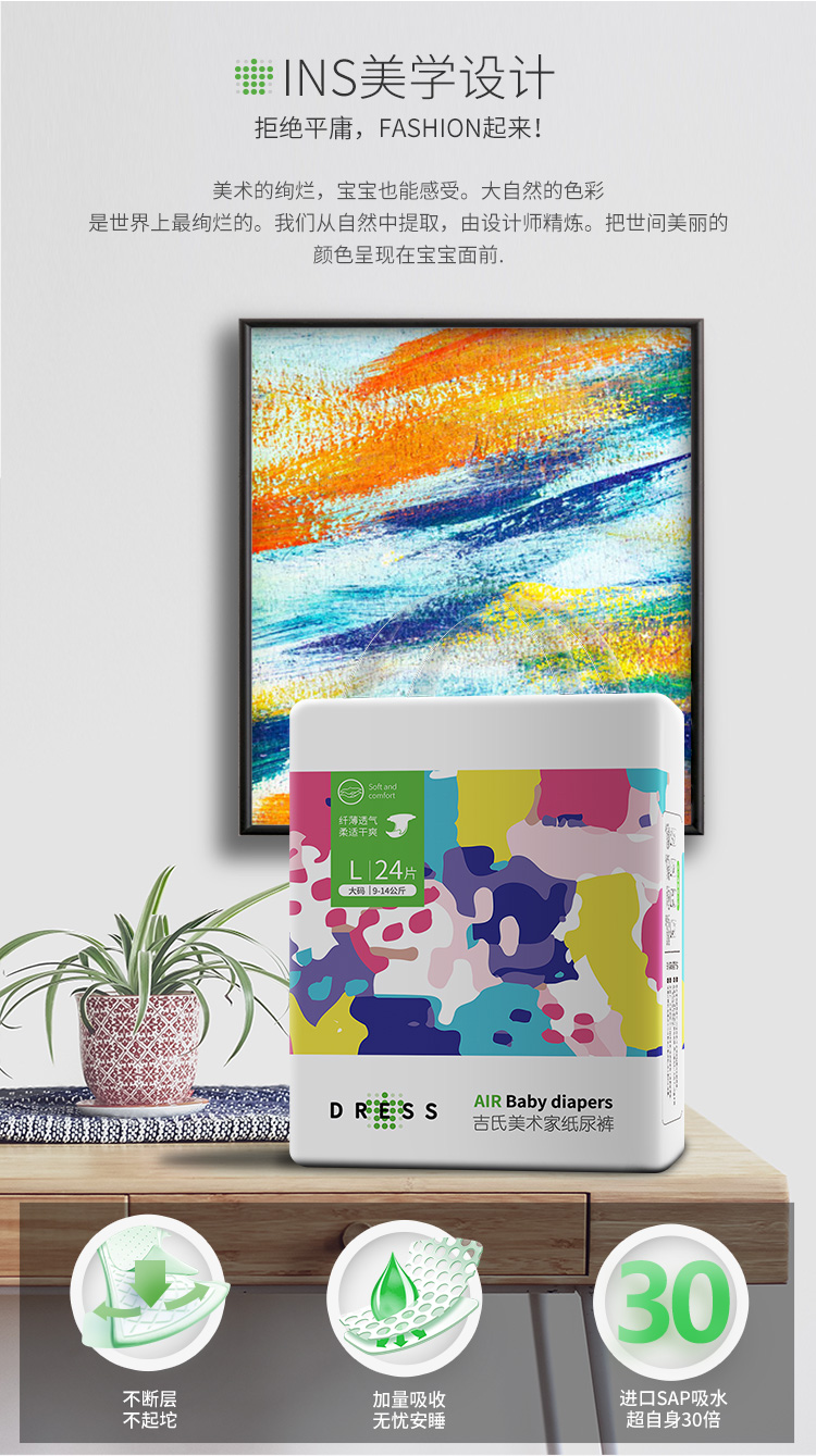 吉氏(DRESS)美术家纸尿裤冬季透气干爽超薄婴儿男女宝宝通用日夜用尿不湿 L码24片*4包【9-14kg适用】