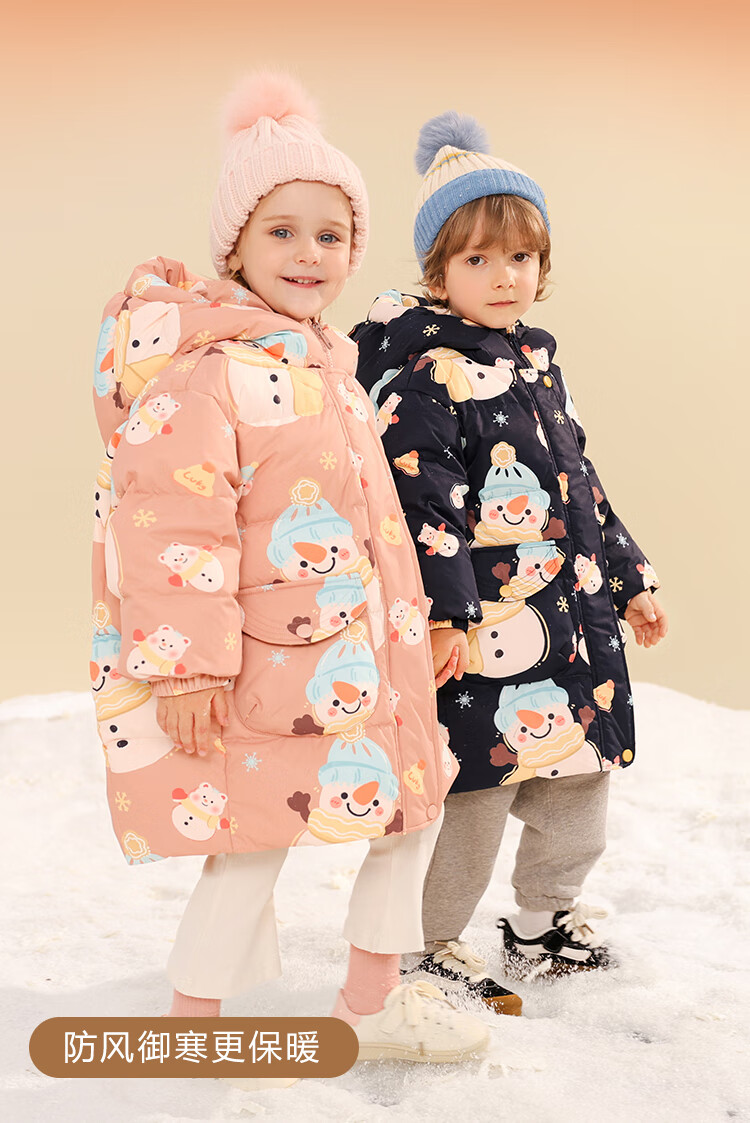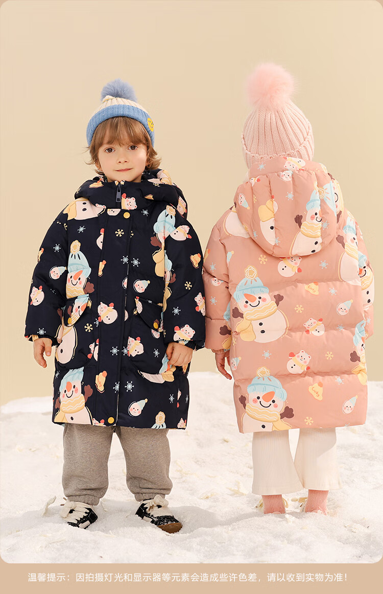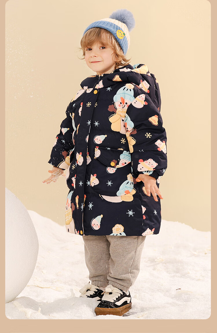康博儿童羽绒服男童冬季中长款新款小童宝宝加厚保暖童装外套 黑色1018 130