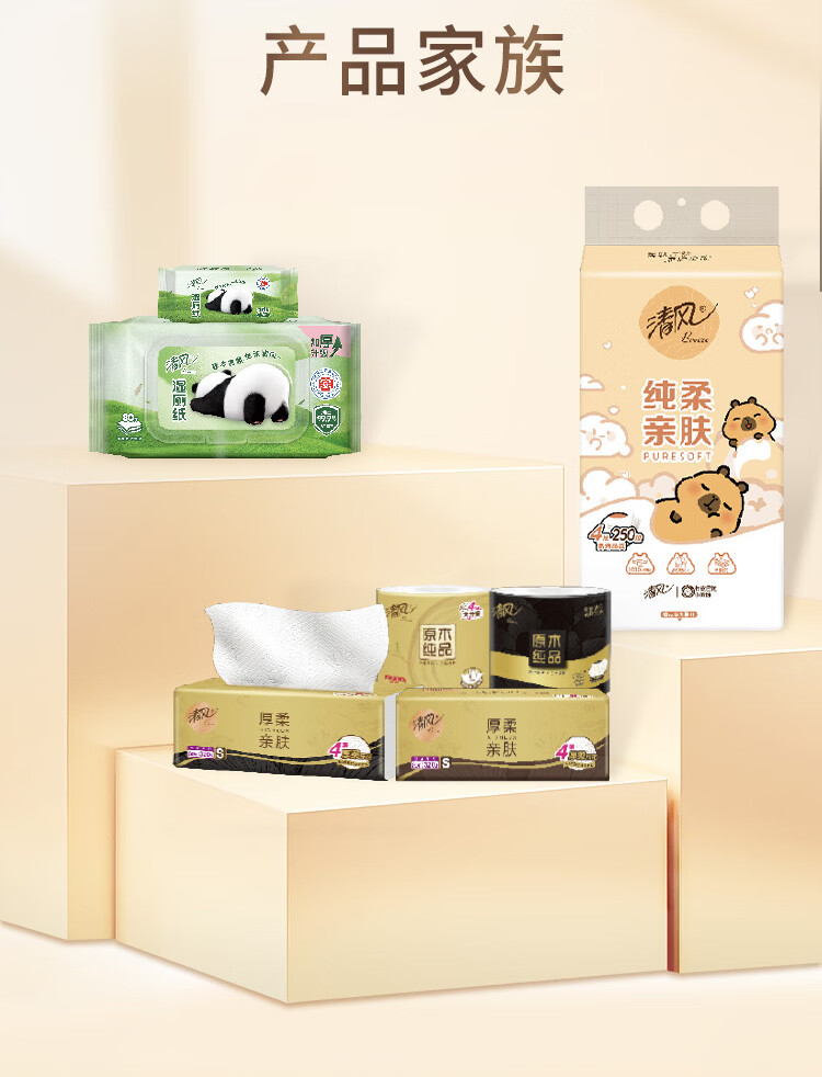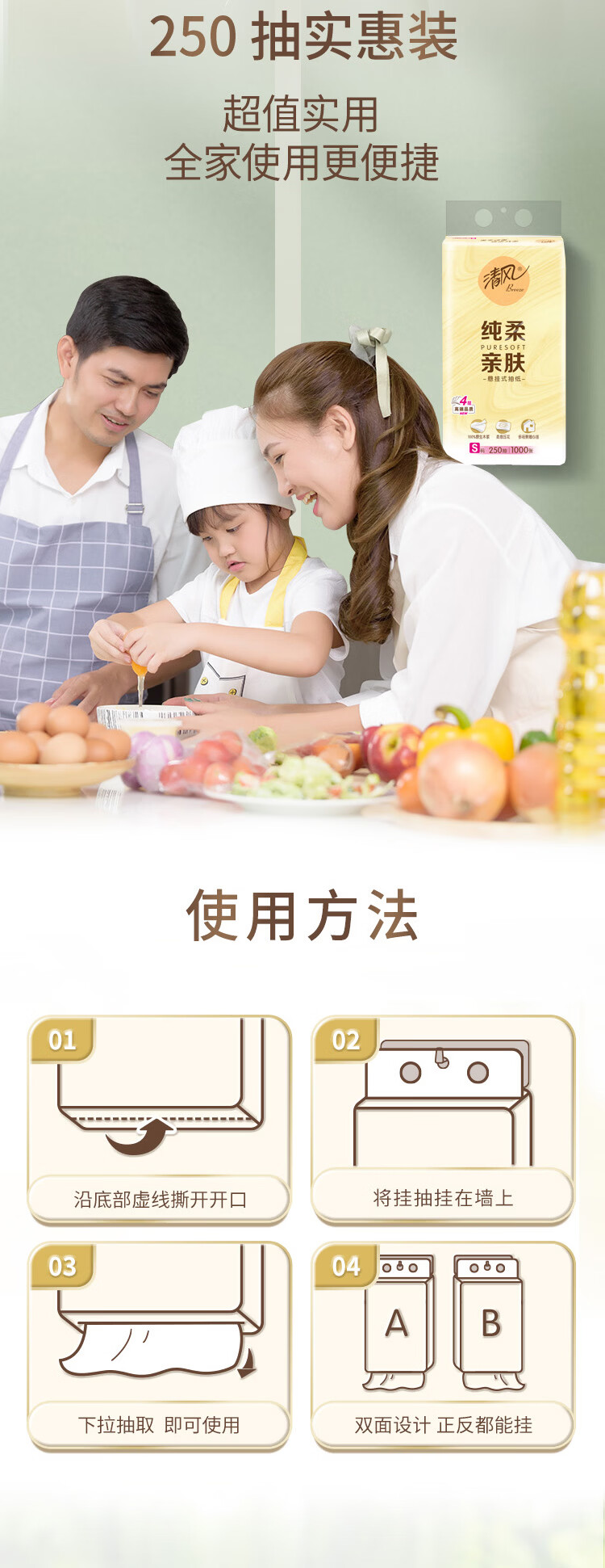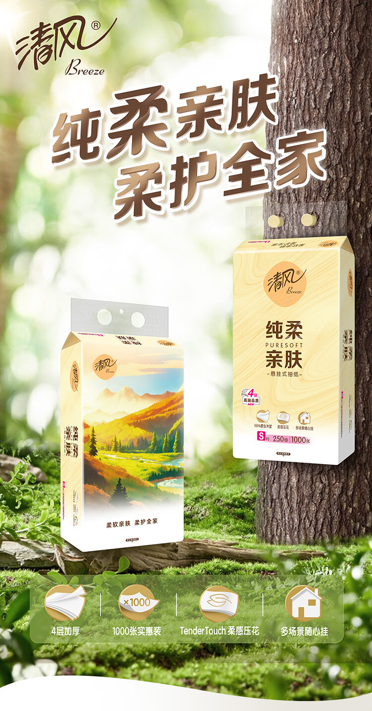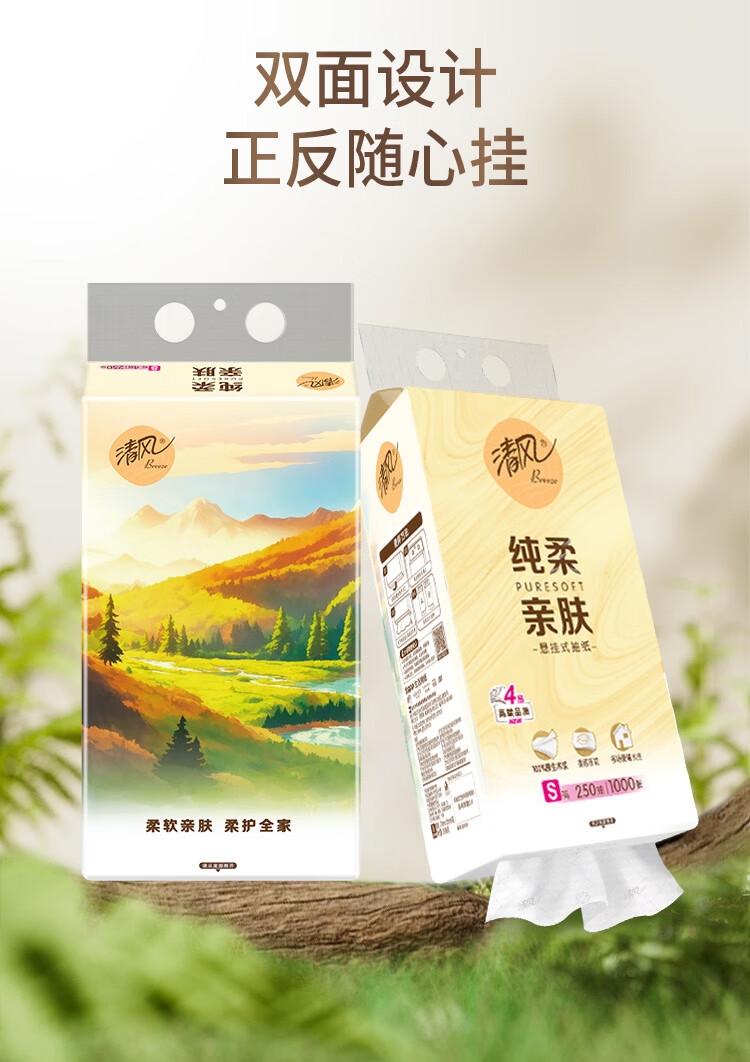 清风纯柔挂抽 4层250抽*6包整箱悬挂式抽纸 家用抽纸量大实惠装