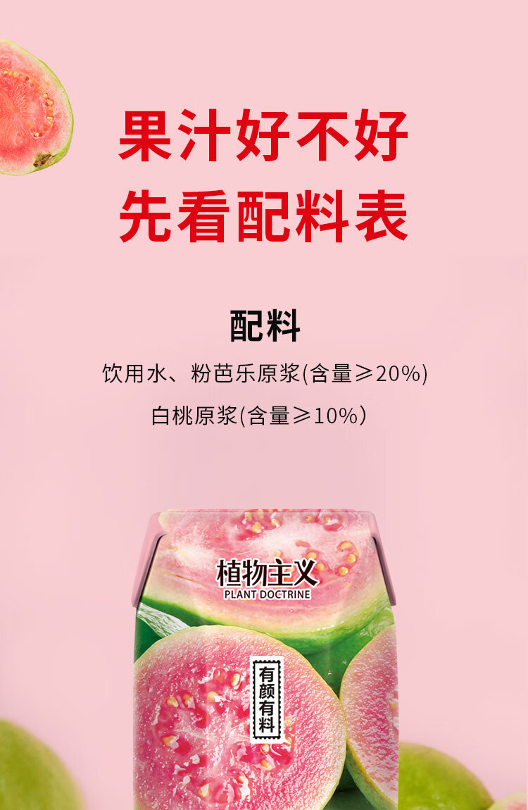 植物主义干净配方红芭乐果汁12瓶整箱无蔗糖无添加剂清甜回甘复合果汁饮品 红芭乐果汁12瓶(0添加剂)