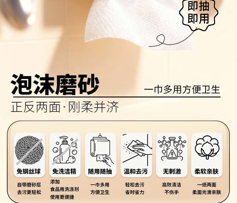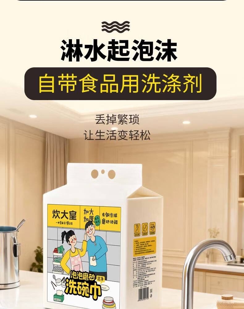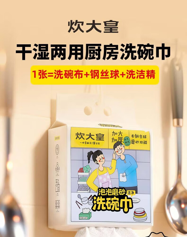 炊大皇(COOKER KING)泡泡磨砂洗碗巾悬挂式懒人抹布清洁用品厨房用纸洗碗布吸油吸水 3包300片