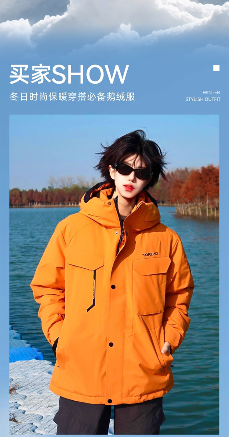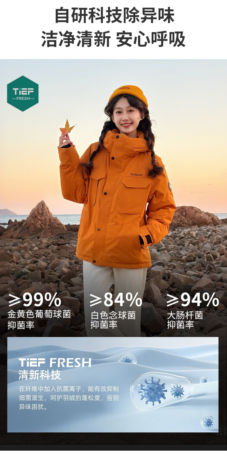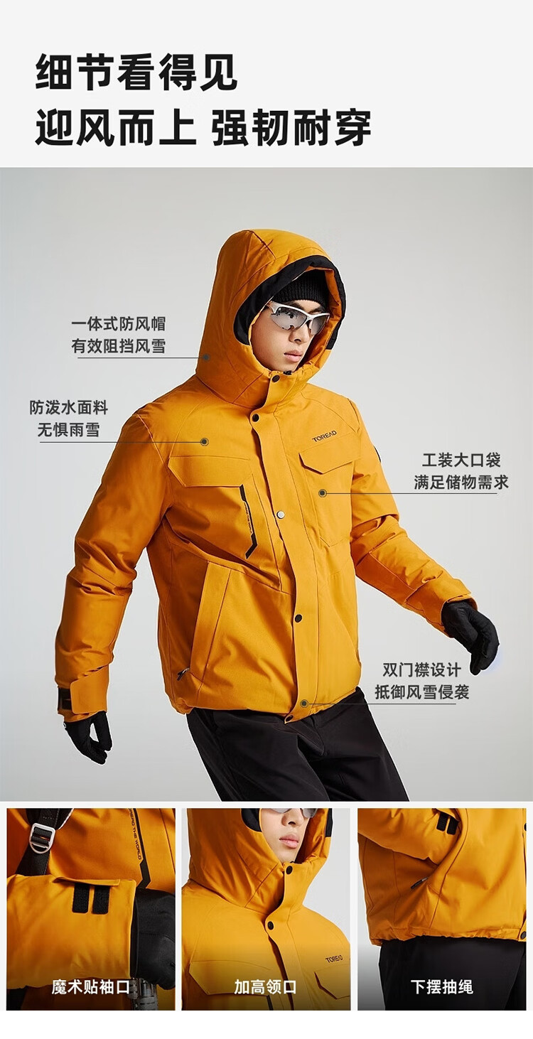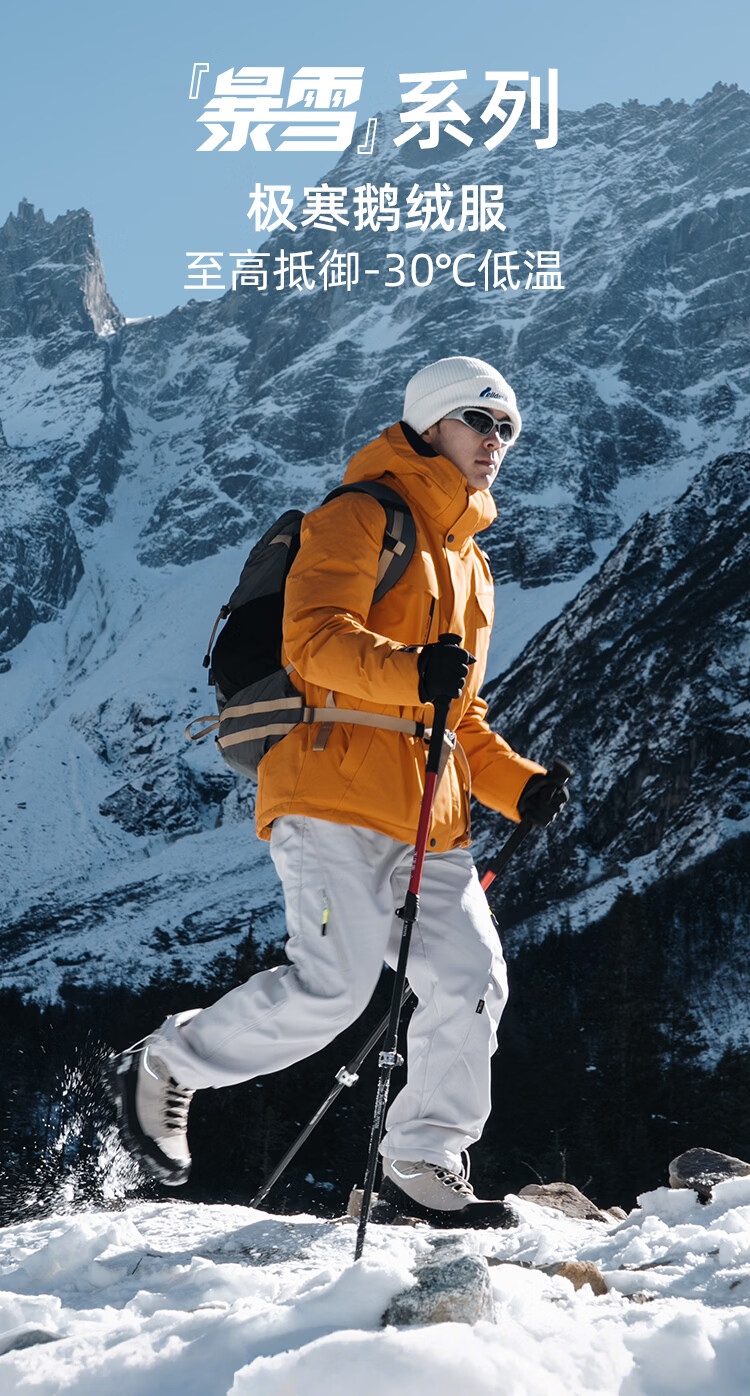 探路者(TOREAD)【暴雪】羽绒服男保暖抗寒防风鹅绒外套户外防泼水锁温科技防寒服 云杉橘 鹅绒 XS 抗寒-30℃