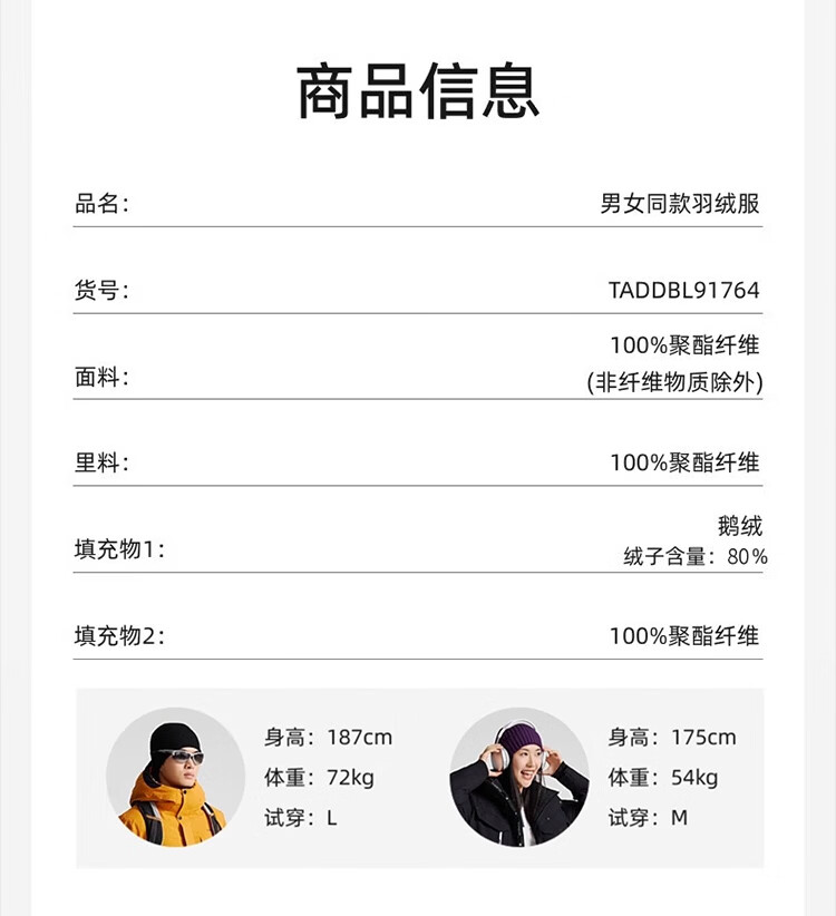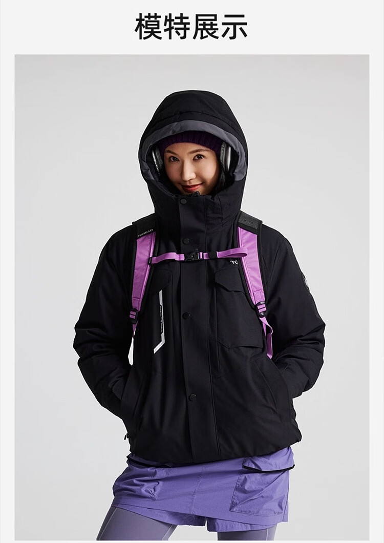 美特斯邦威(Meters Bonwe)男女同款三合一冲锋衣冬季新款羽绒内胆防水防风外套 黑白组 XL 180/100A