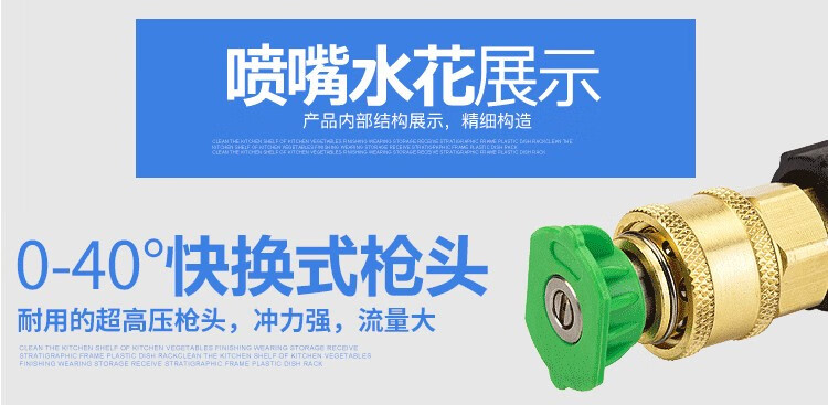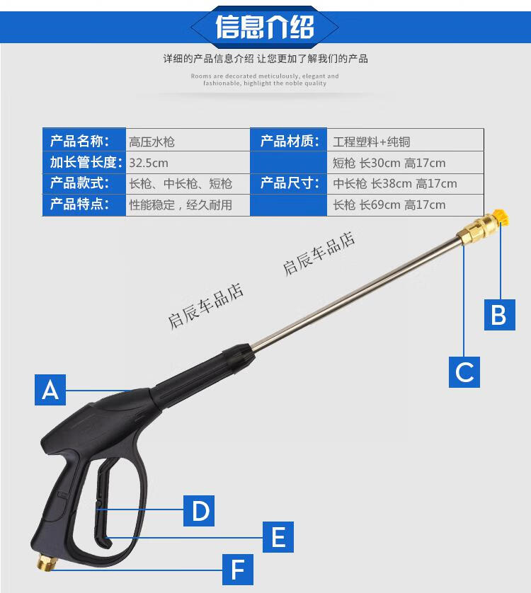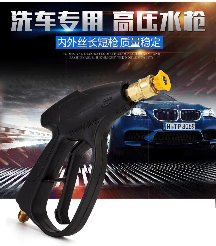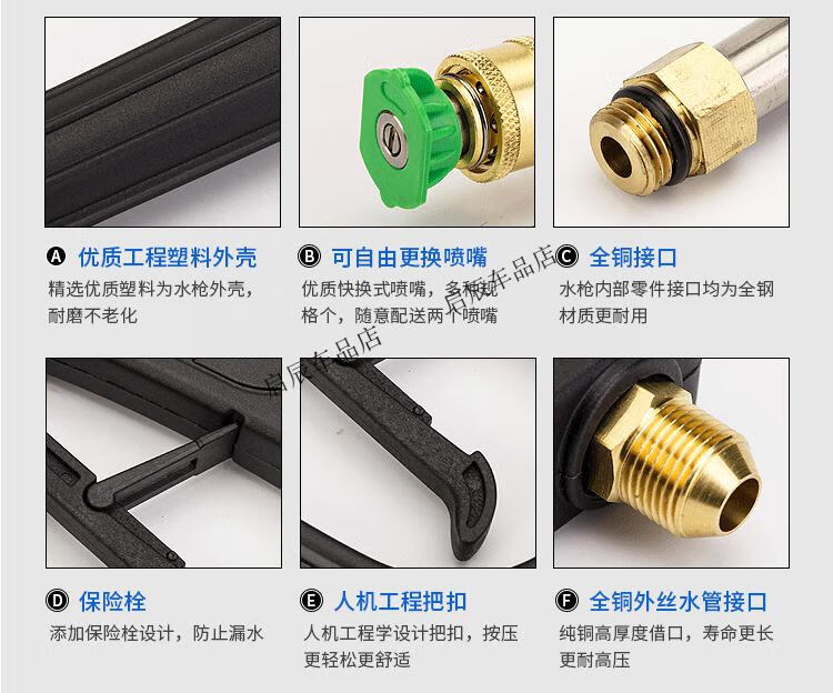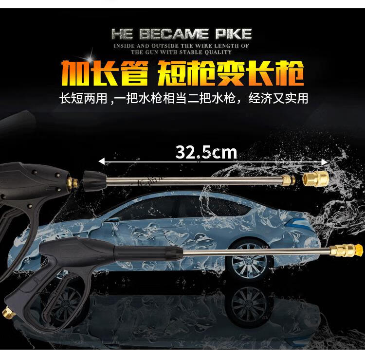 黑猫圣将高压扇形洗车水枪免擦快接式喷头280型380型58清洗机全铜水枪配件 外22芯15加长水枪(配四色喷嘴铜