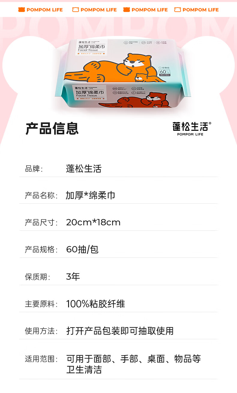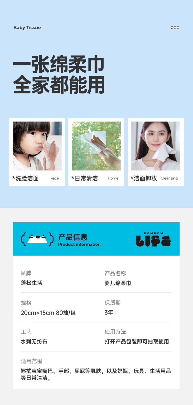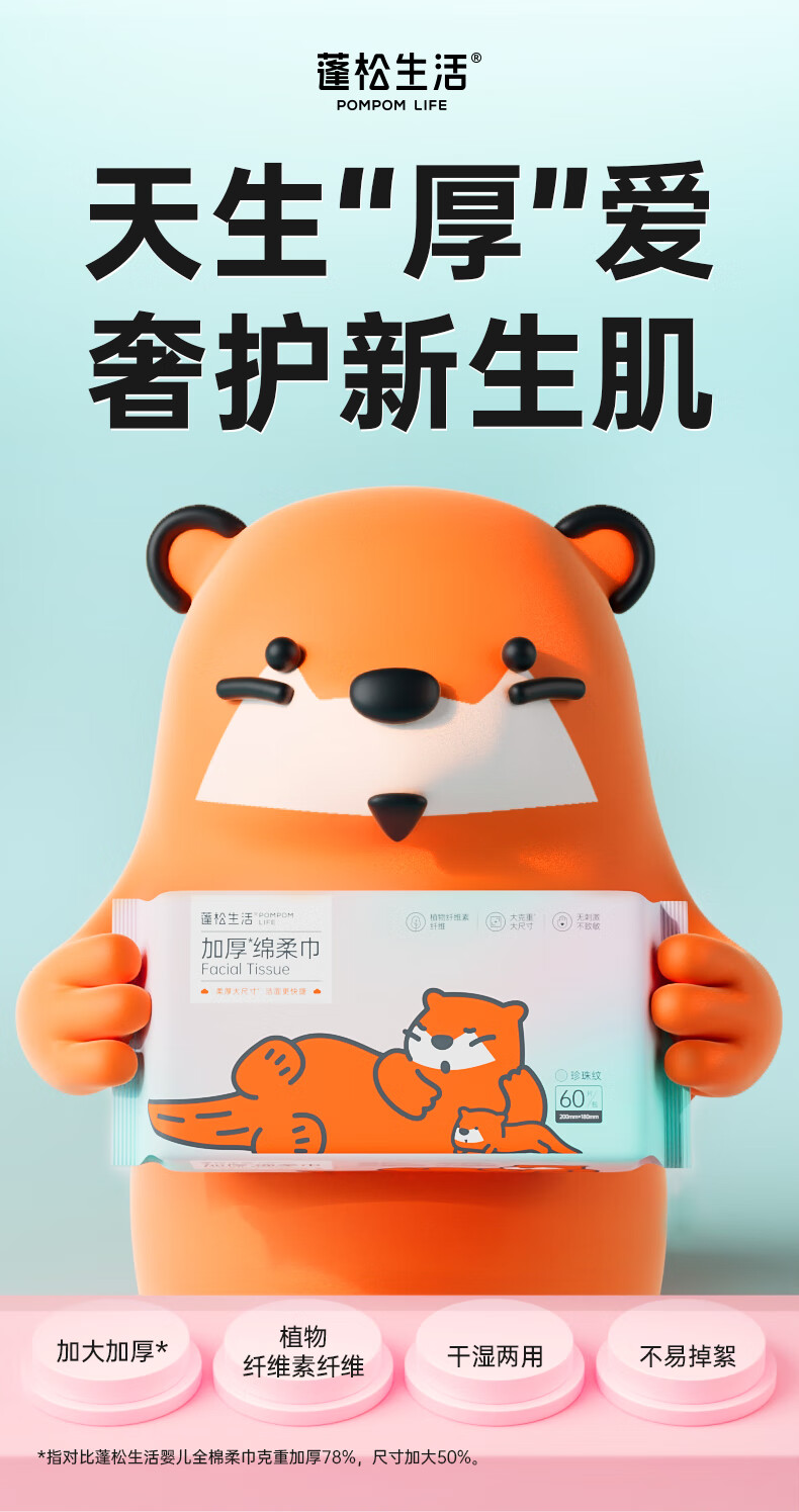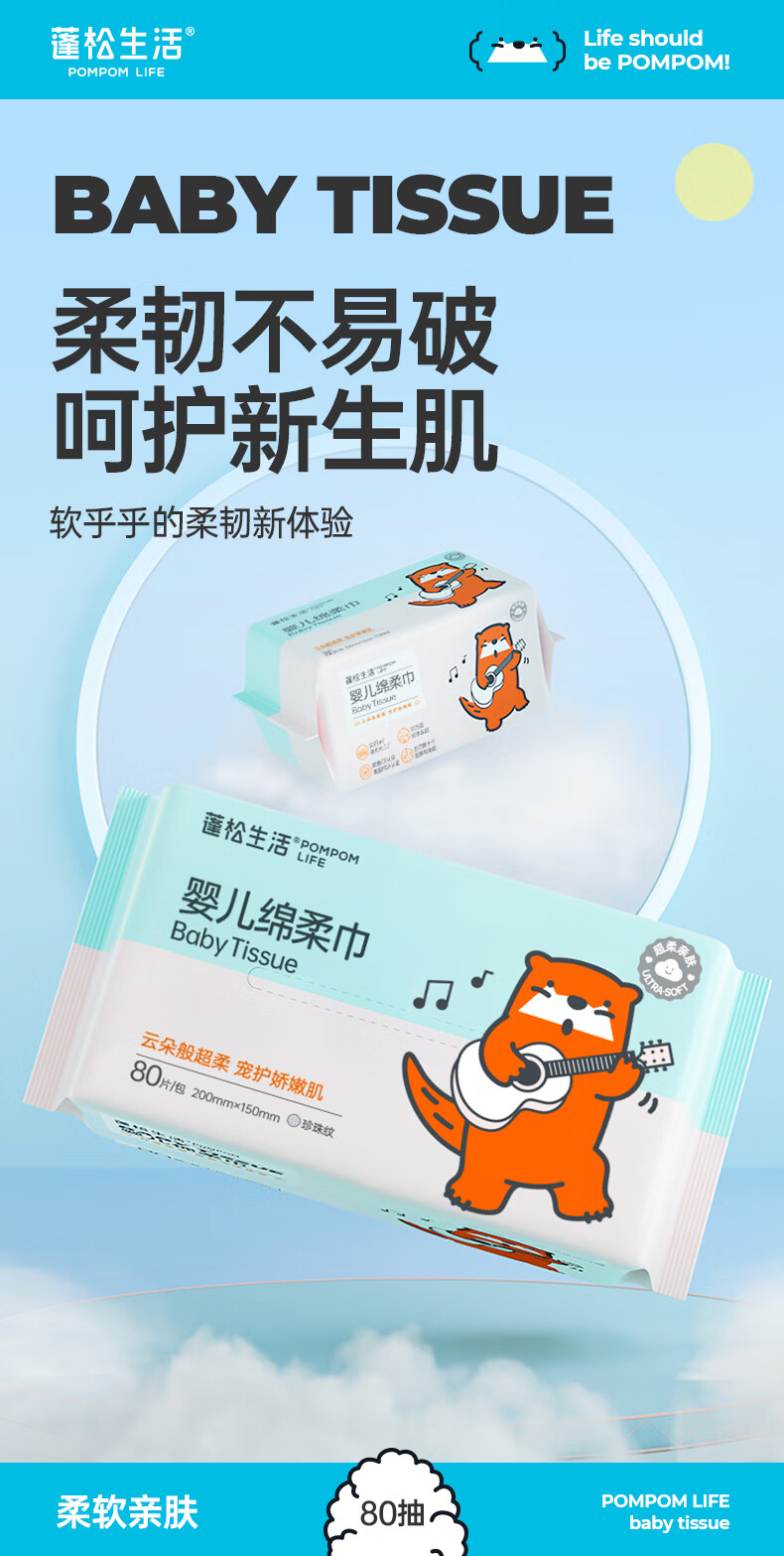 蓬松生活婴儿绵柔巾清洁干湿两用洗脸巾一次性洗脸巾洁面巾大包 绵柔巾80抽*5包