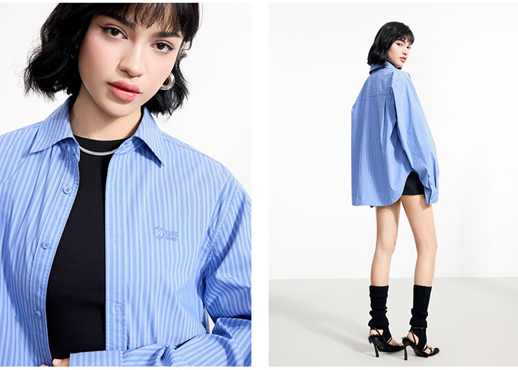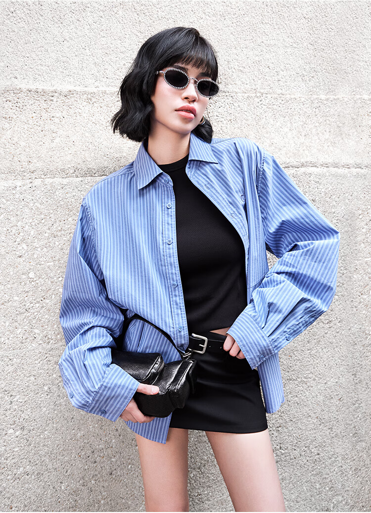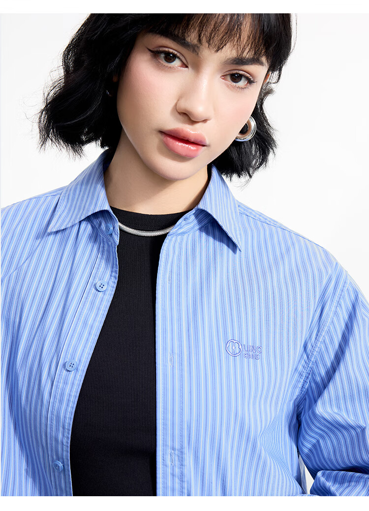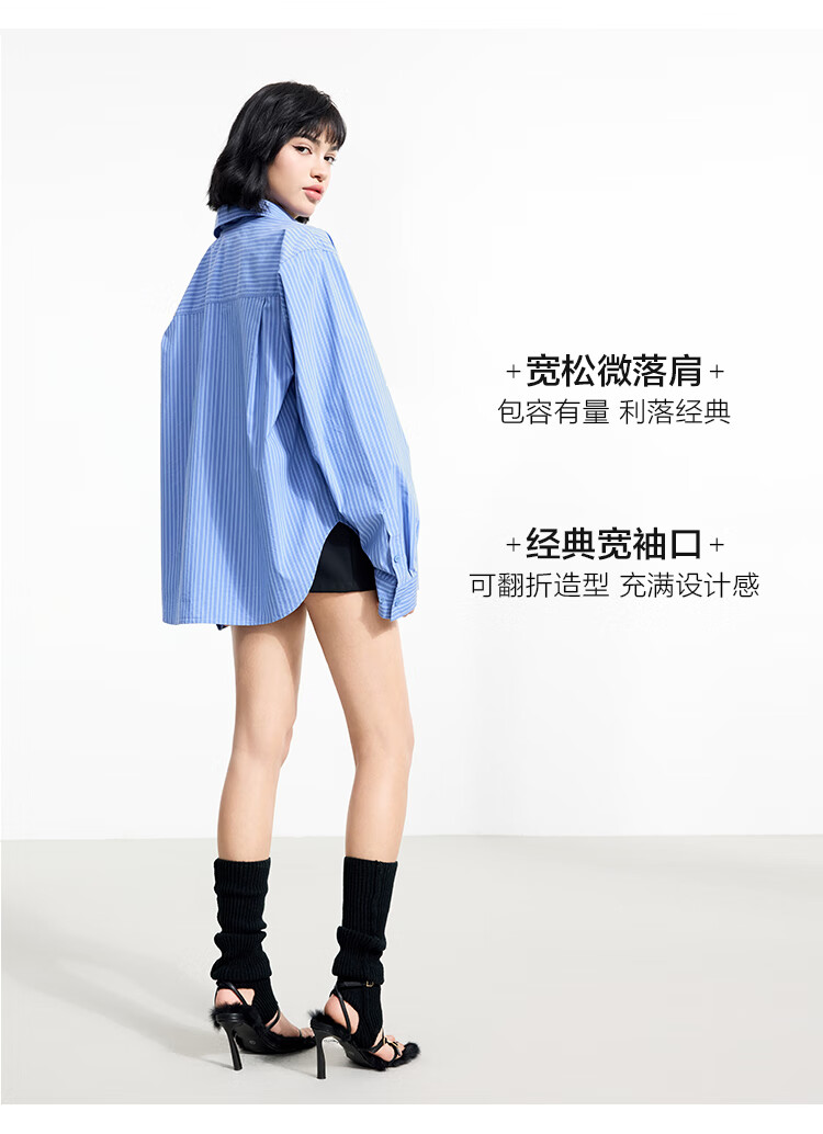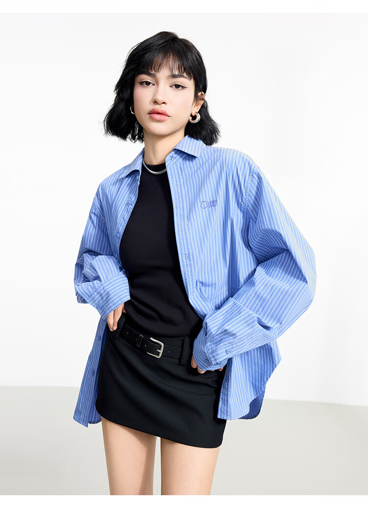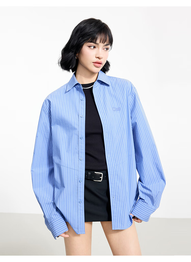 金羽杰2025年春季新品轻奢长袖竖条纹衬衫女士中长款宽松衬衣S251SH093Y 高街蓝条 L 适合150斤以下