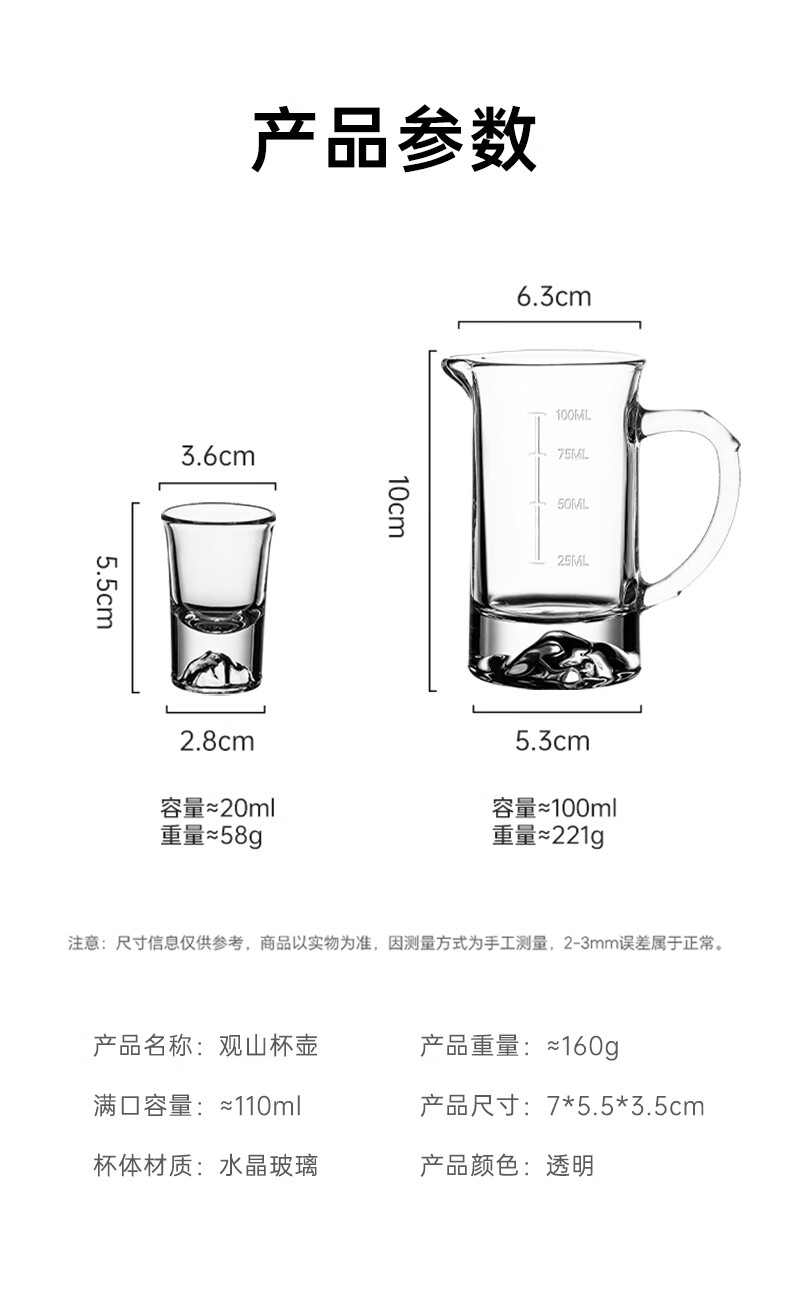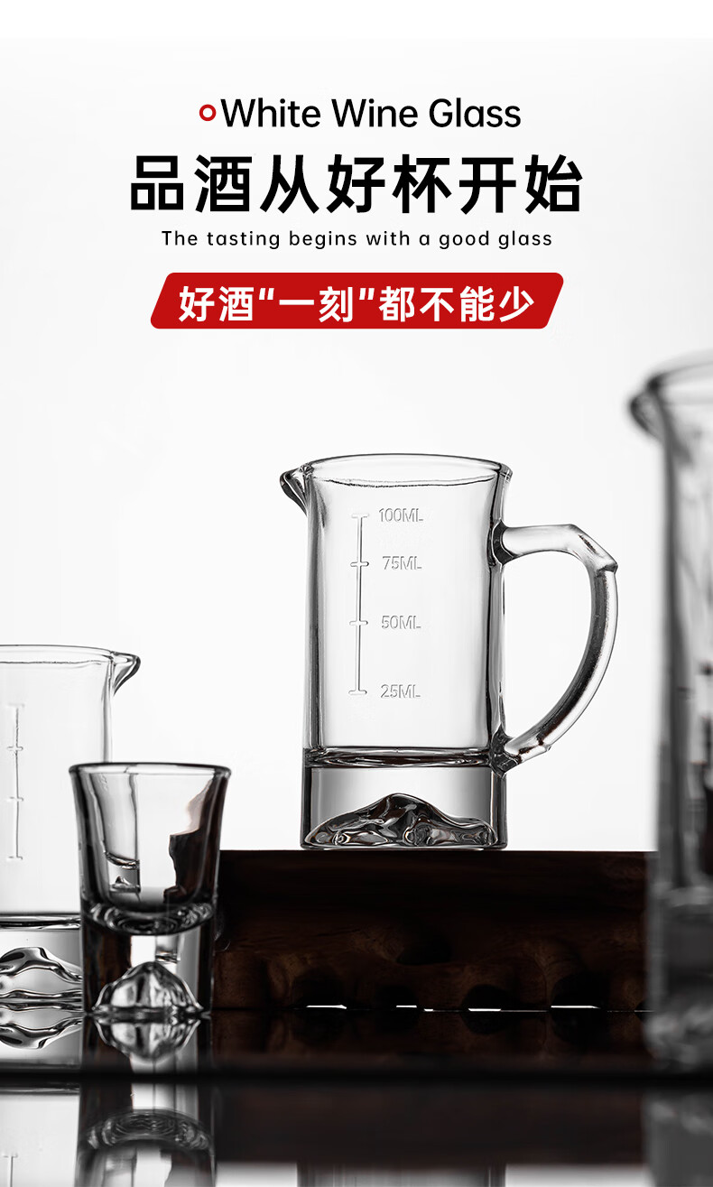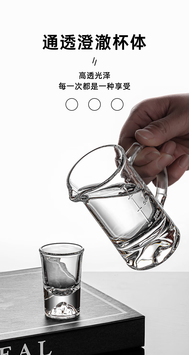 乐唯诗(LOVWISH)白酒杯分酒器套装家用小酒杯一口玻璃商用二两2量带刻度100ml酒盅 观山杯4个+观山分酒器4个100ml