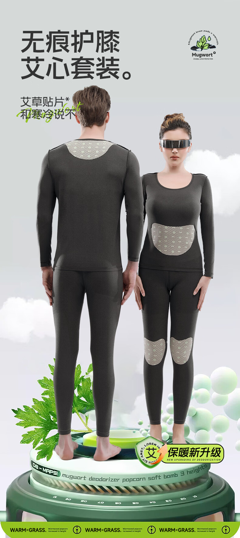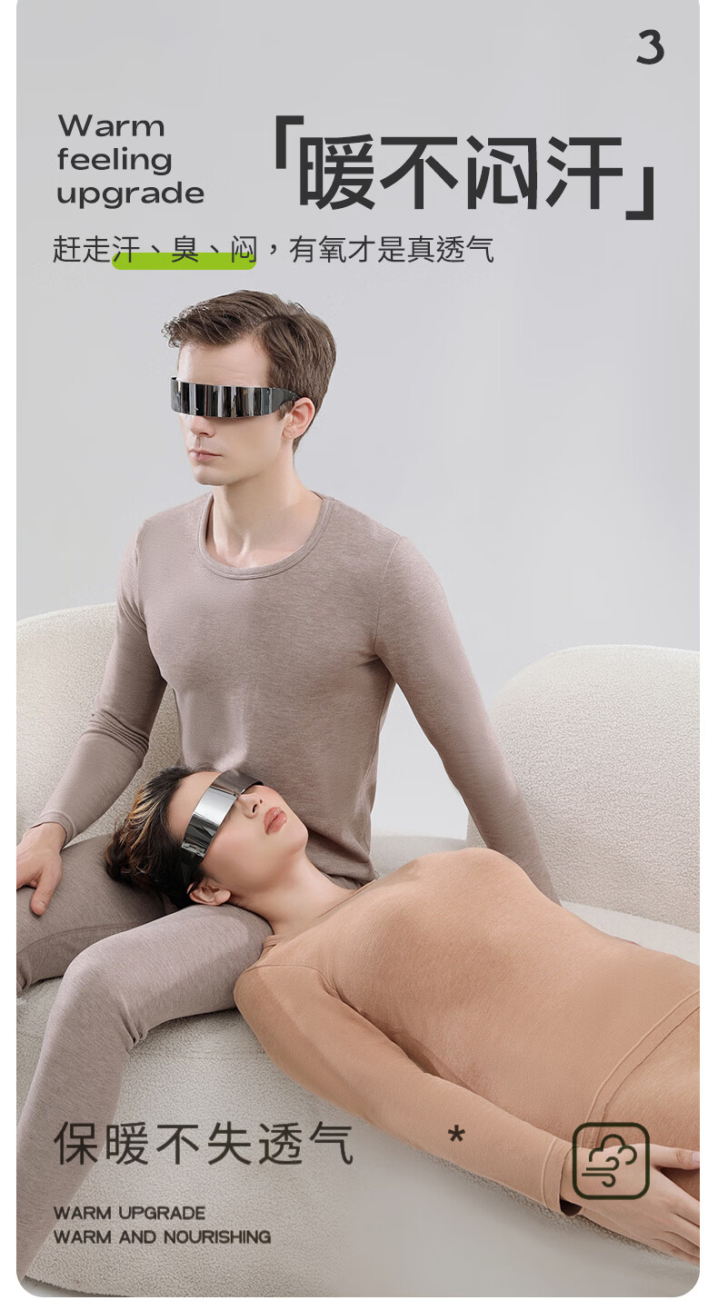 宝派云的超品联名保暖内衣男女套装羊绒暖护贴情侣加绒圆领女秋衣秋裤 羊绒暖护贴男藏青 XL