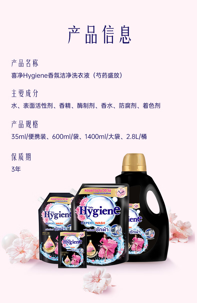 喜净Hygiene泰国原装进口洗衣液/深层洁净去污/持久留香 甜美花香2.8L