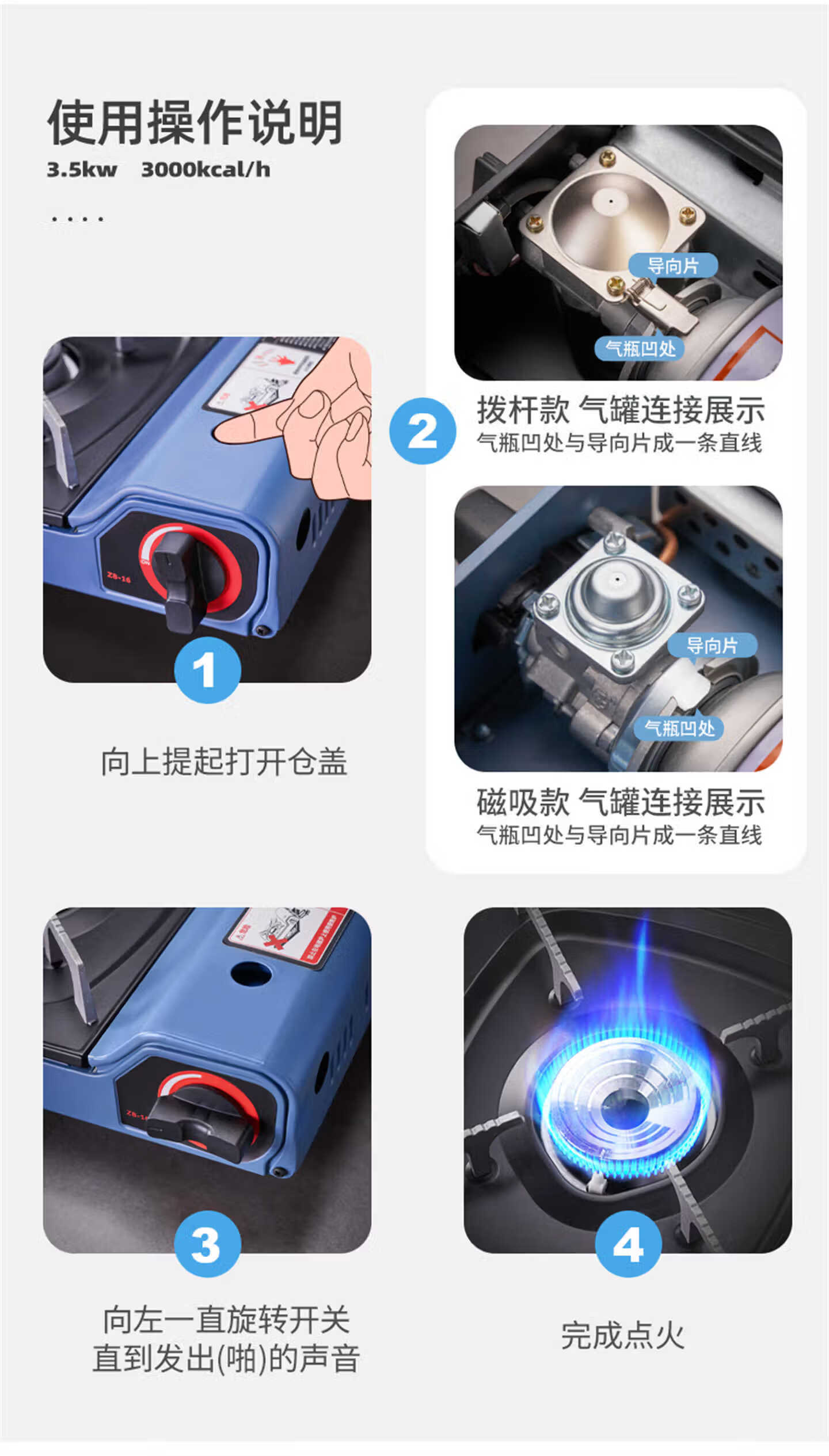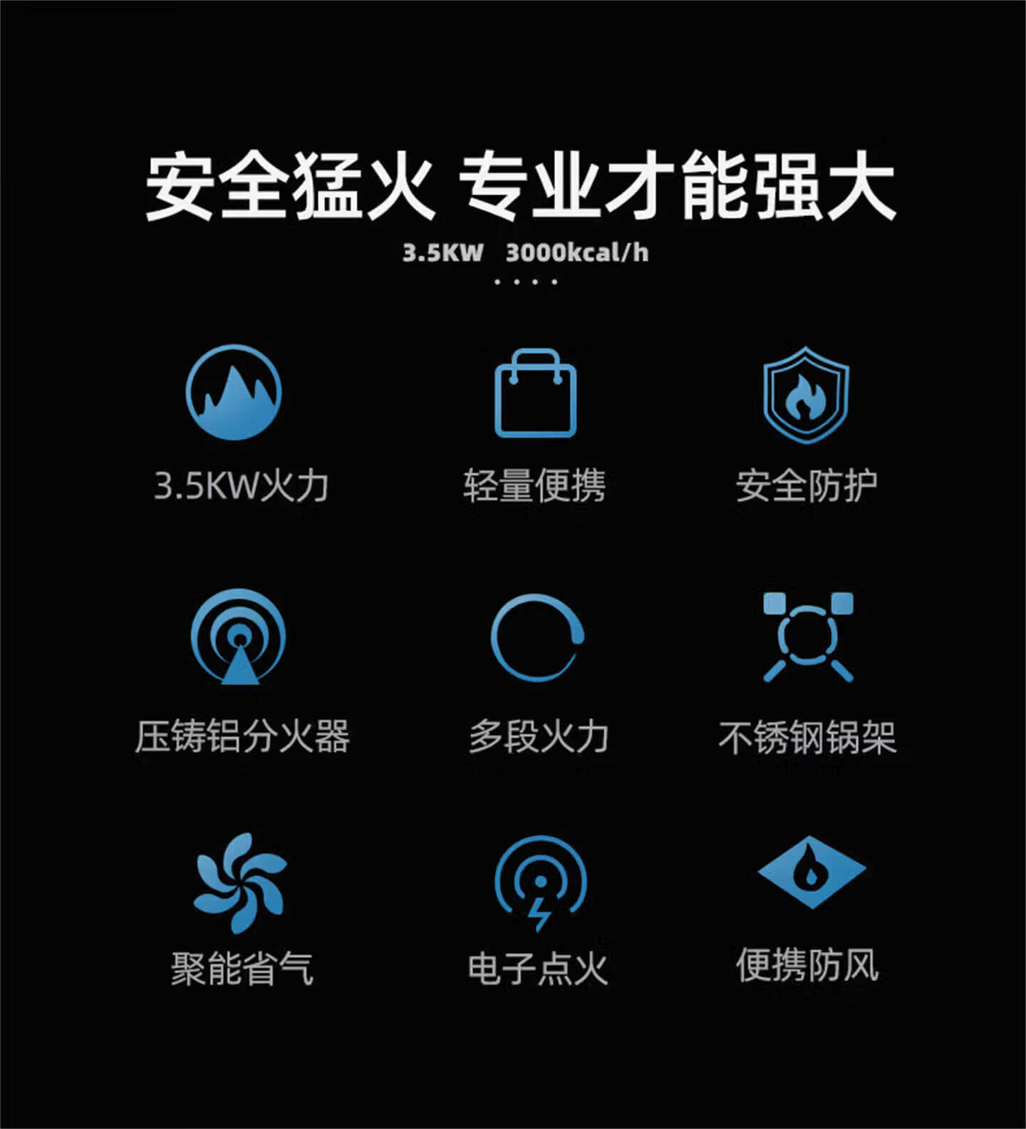 劲舟卡式炉户外餐馆火锅店通用便携式野外炉具炊具卡磁瓦斯炉燃气罐炉 蓝色送手提箱-3500W超猛火力防爆防风
