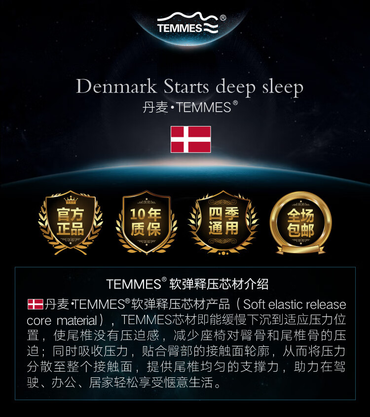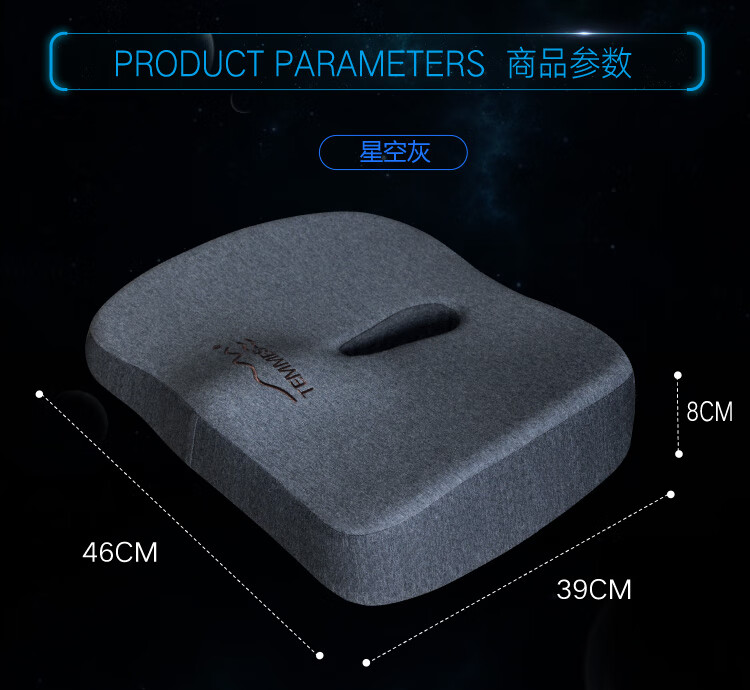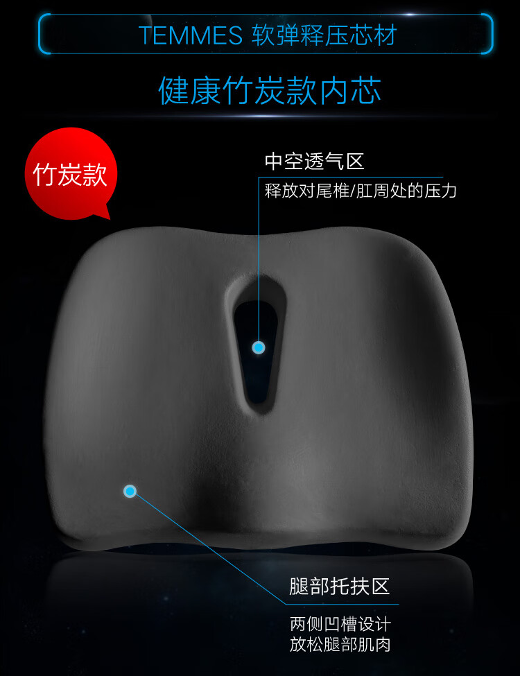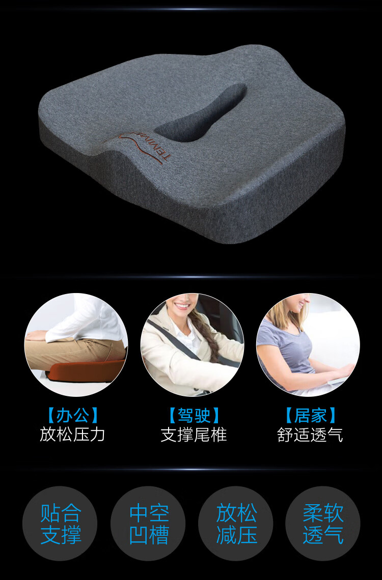 TEMMES 丹麦泰梅斯 办公室椅子垫屁股记忆棉透气减压垫久坐汽车座垫夏季 释压款(星空灰) 软弹释压芯材