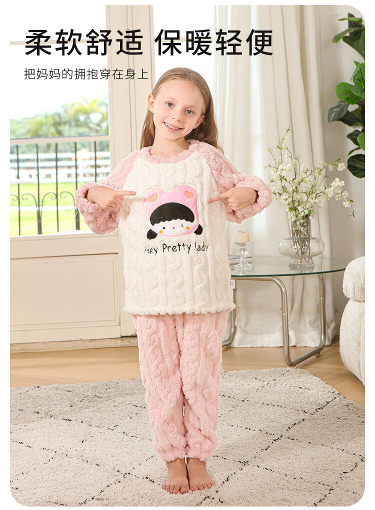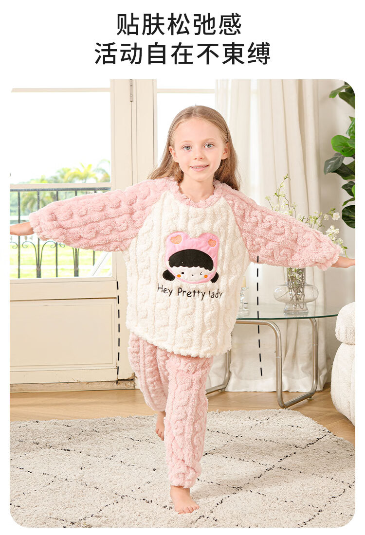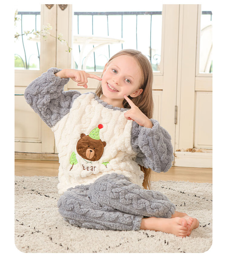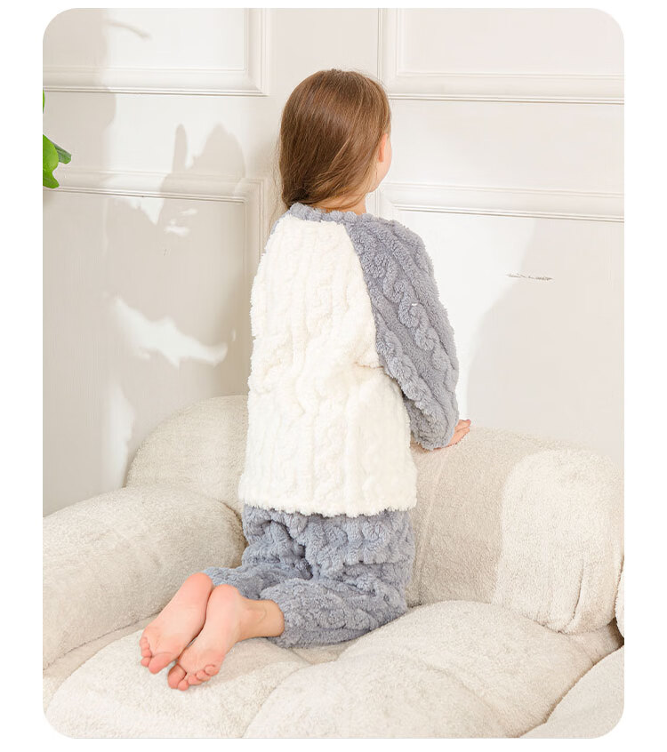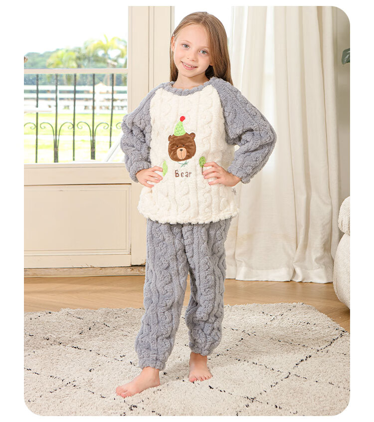 小猪大卫 PECODAVID珊瑚绒套装秋冬儿童室内居家服男女可爱分体套装毛毛款 灰蓝宇航员 90 版型宽松,按正常尺码拍