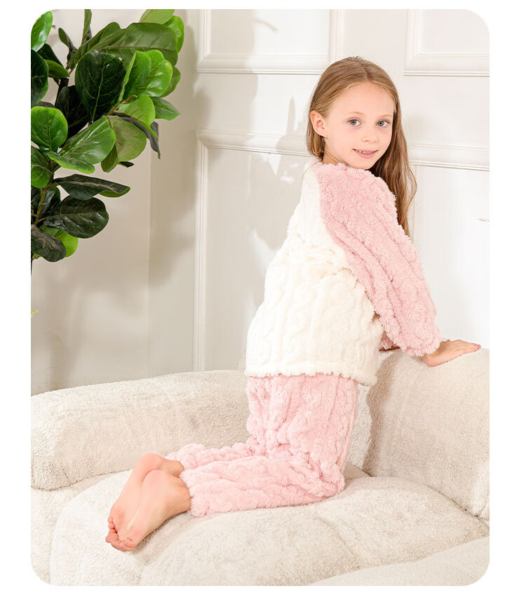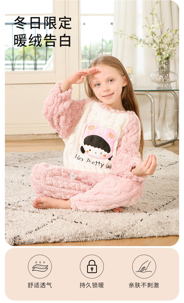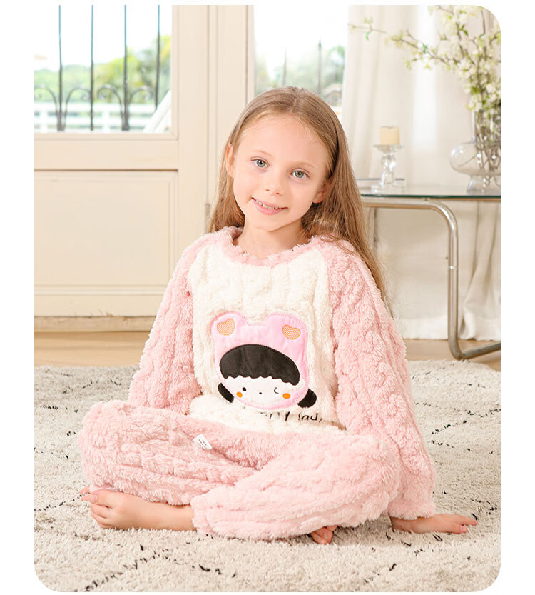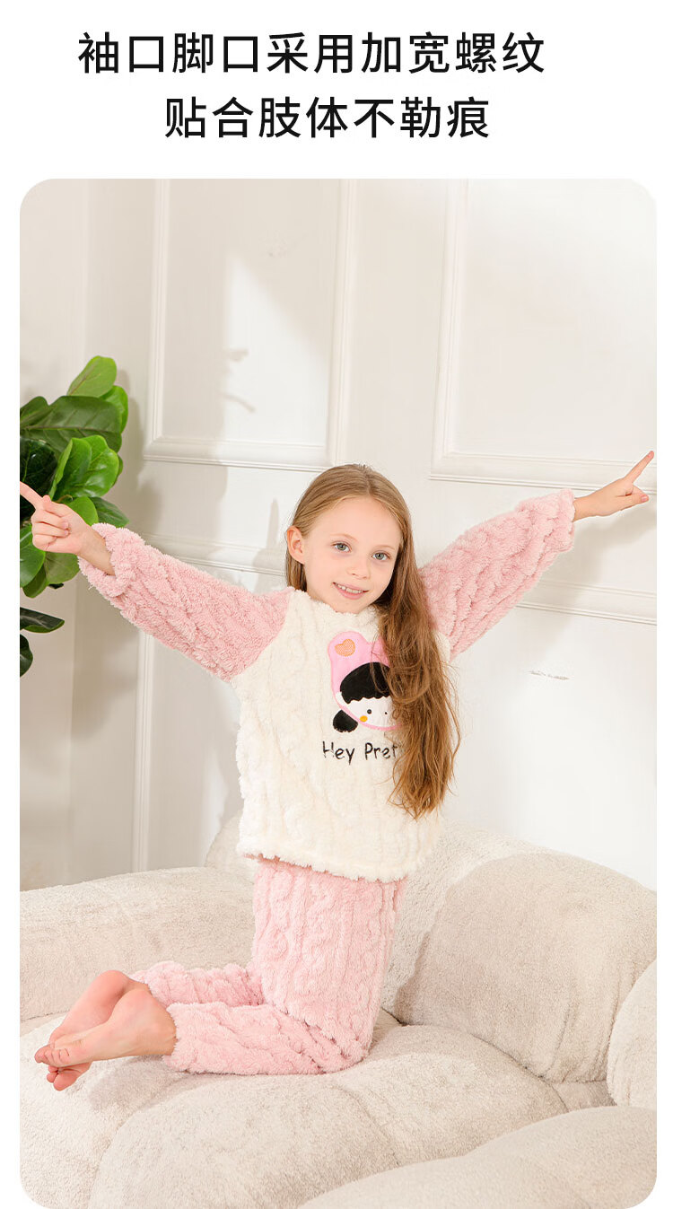 小猪大卫 PECODAVID珊瑚绒套装秋冬儿童室内居家服男女可爱分体套装毛毛款 灰蓝宇航员 90 版型宽松,按正常尺码拍
