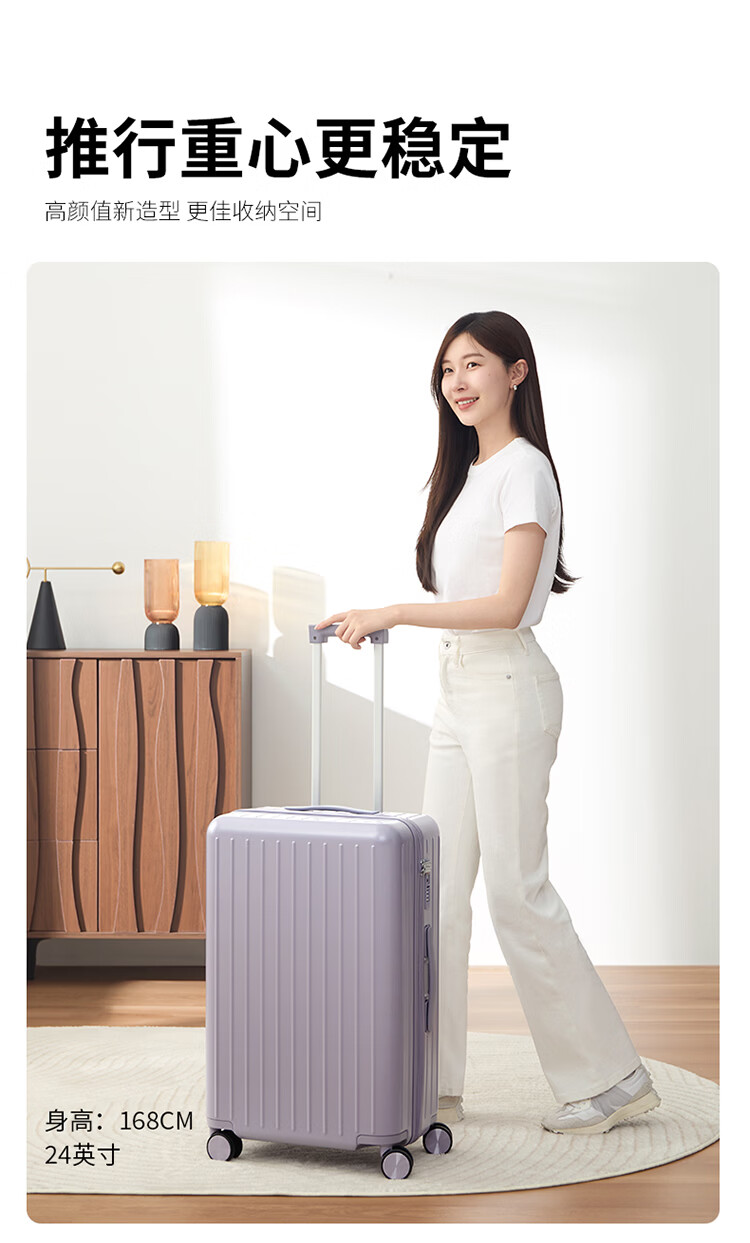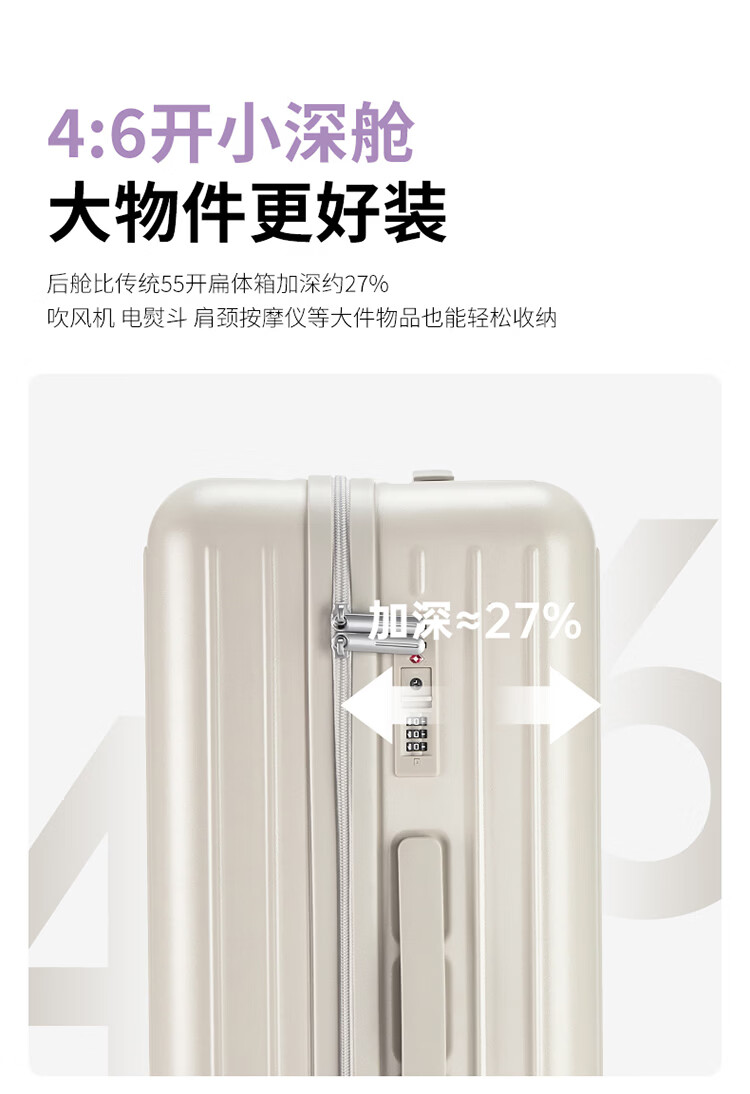 卡拉羊【蒋勤勤代言】46开小深舱行李箱男女大容量纯PC旅行箱防刮抗摔 玉白色(升级鎏金板材防刮抗摔) 20英寸 约41L随身登机箱 单人旅行