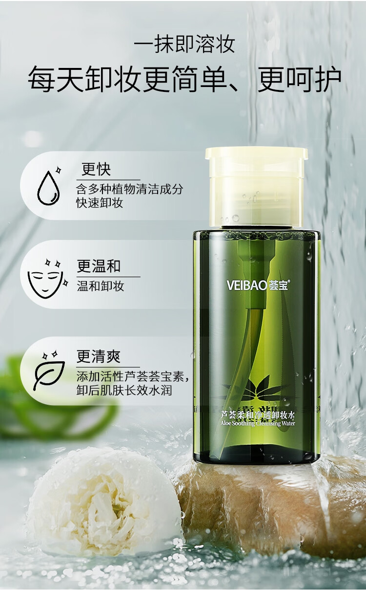 荟宝官方卸妆水芦荟柔和净透卸妆水210ml清爽控油不油腻男女平价礼物 1瓶【210ml】