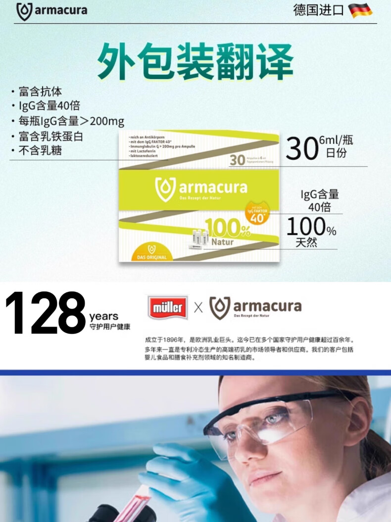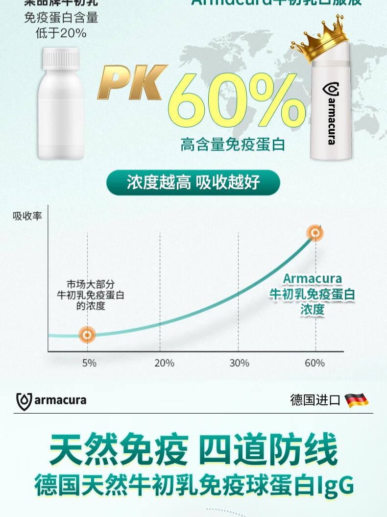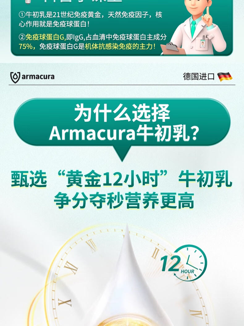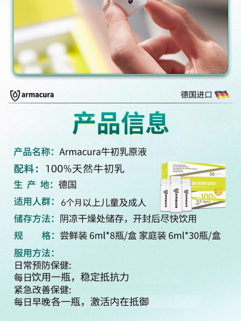 armacura【6盒8瓶】德国进口牛初乳增强免疫儿童免疫球蛋白乳铁蛋白婴幼儿