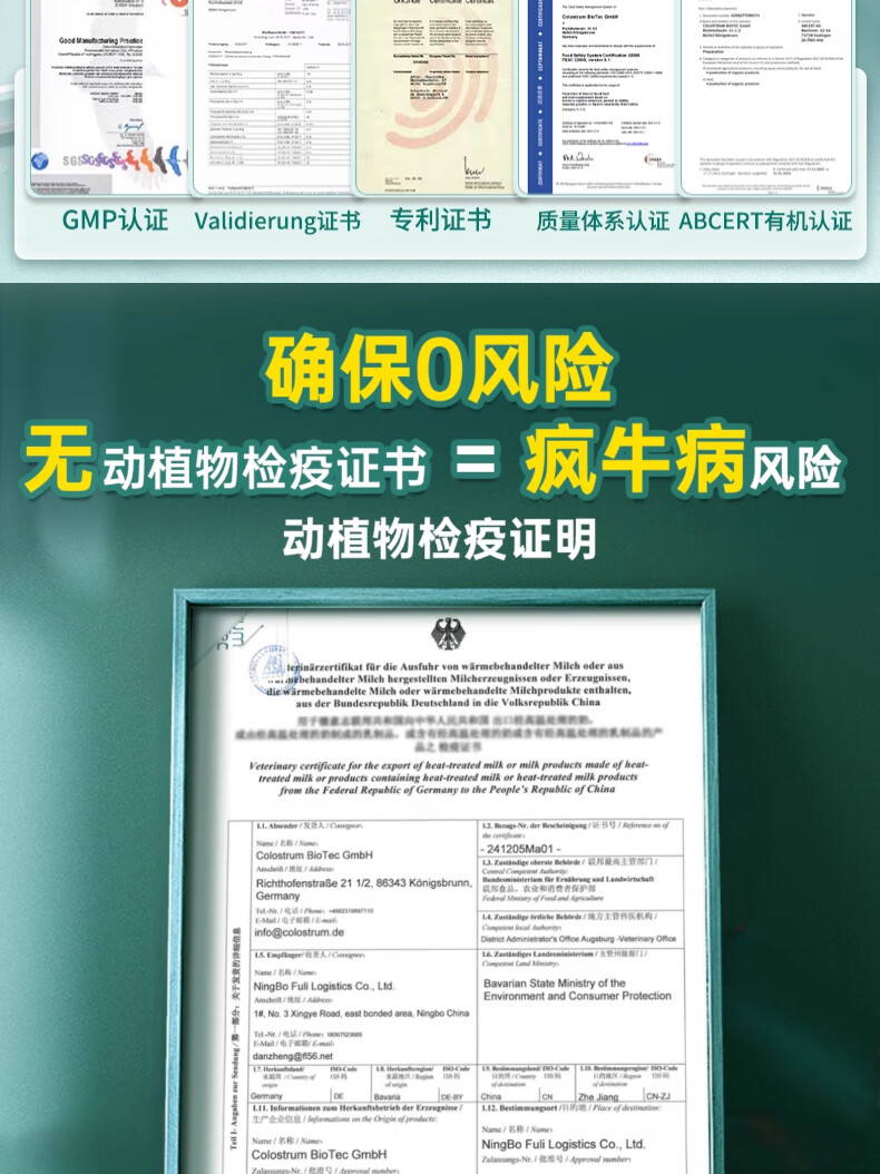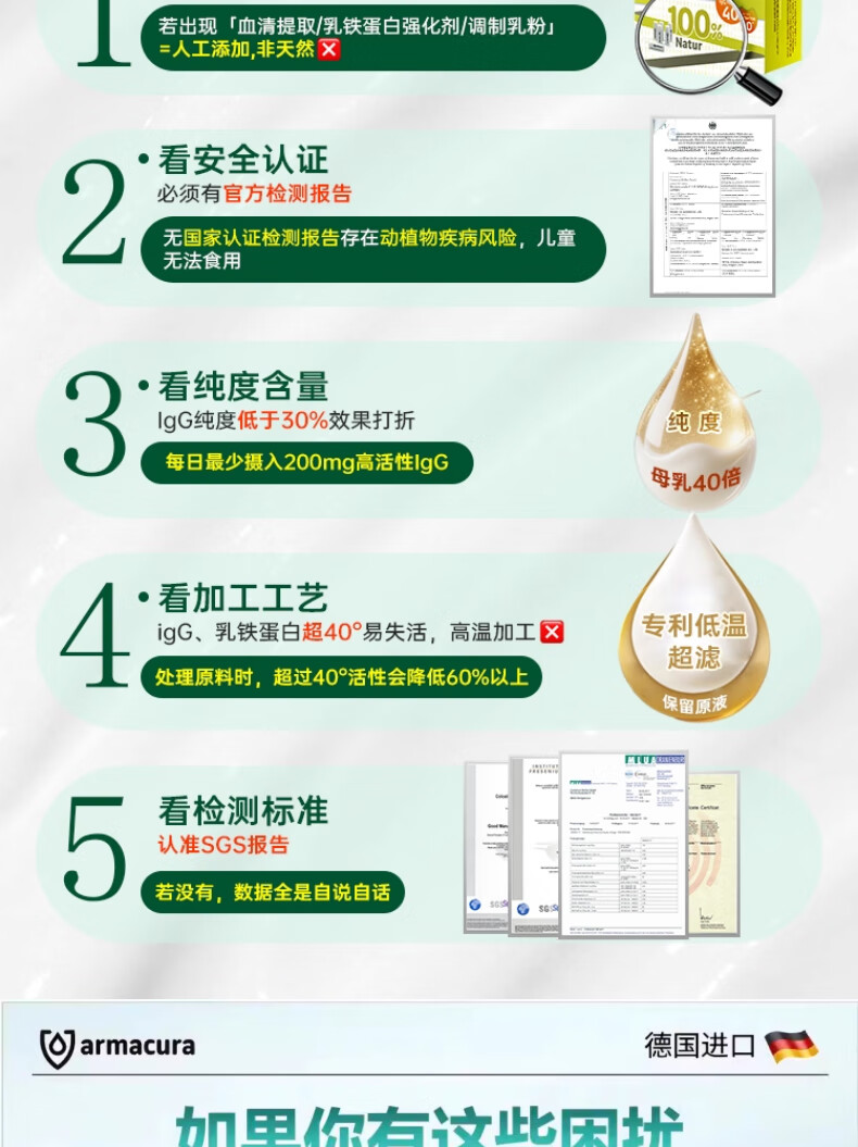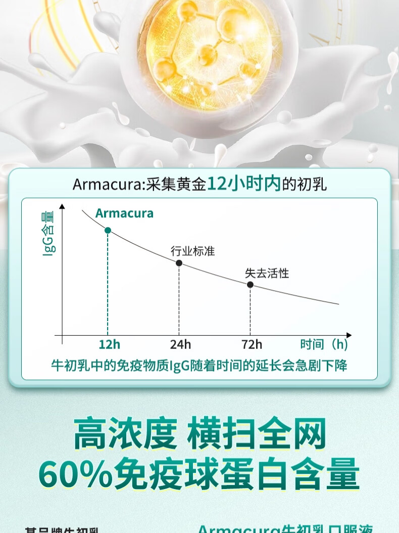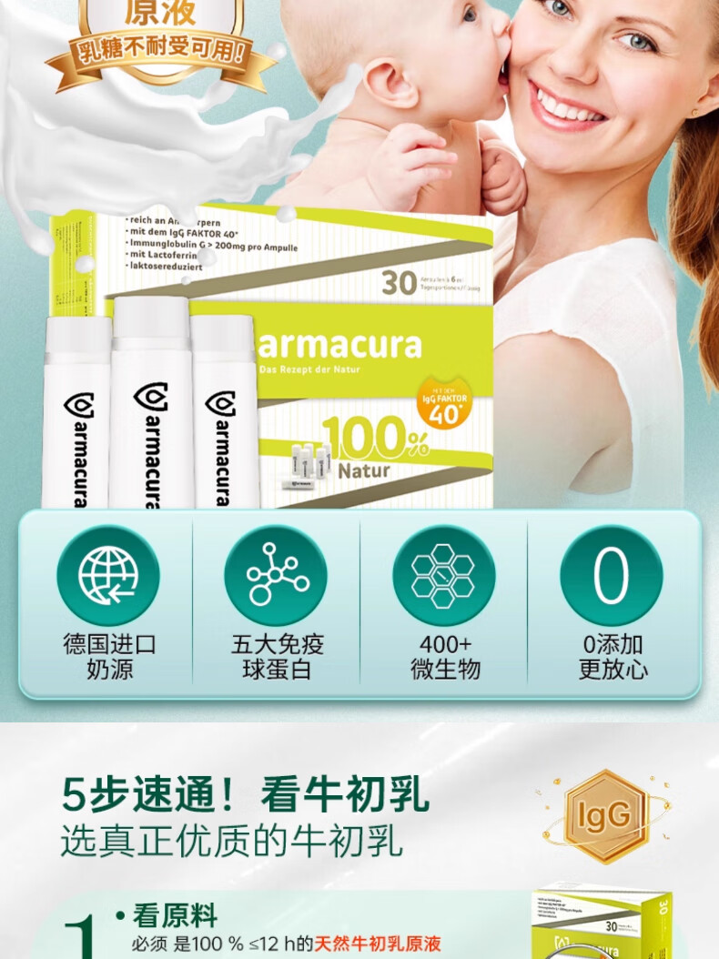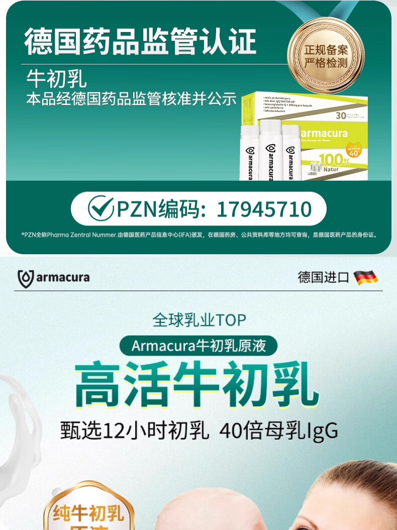 armacura【6盒8瓶】德国进口牛初乳增强免疫儿童免疫球蛋白乳铁蛋白婴幼儿