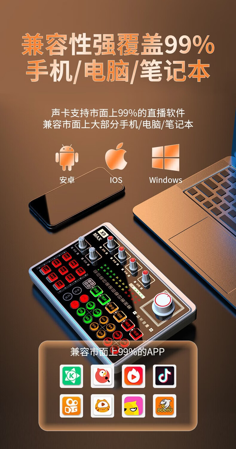 音奈尔(yinail)X9max专业直播声卡套装主播专用K歌录音U87麦克风N58无线话筒电脑外置调音台户外直播间设备 音奈尔X9max声卡【单声卡【官方标配】