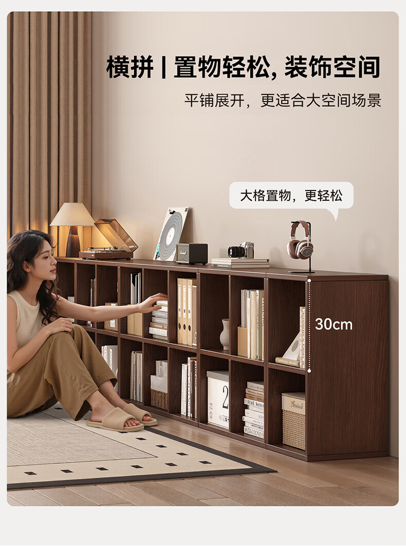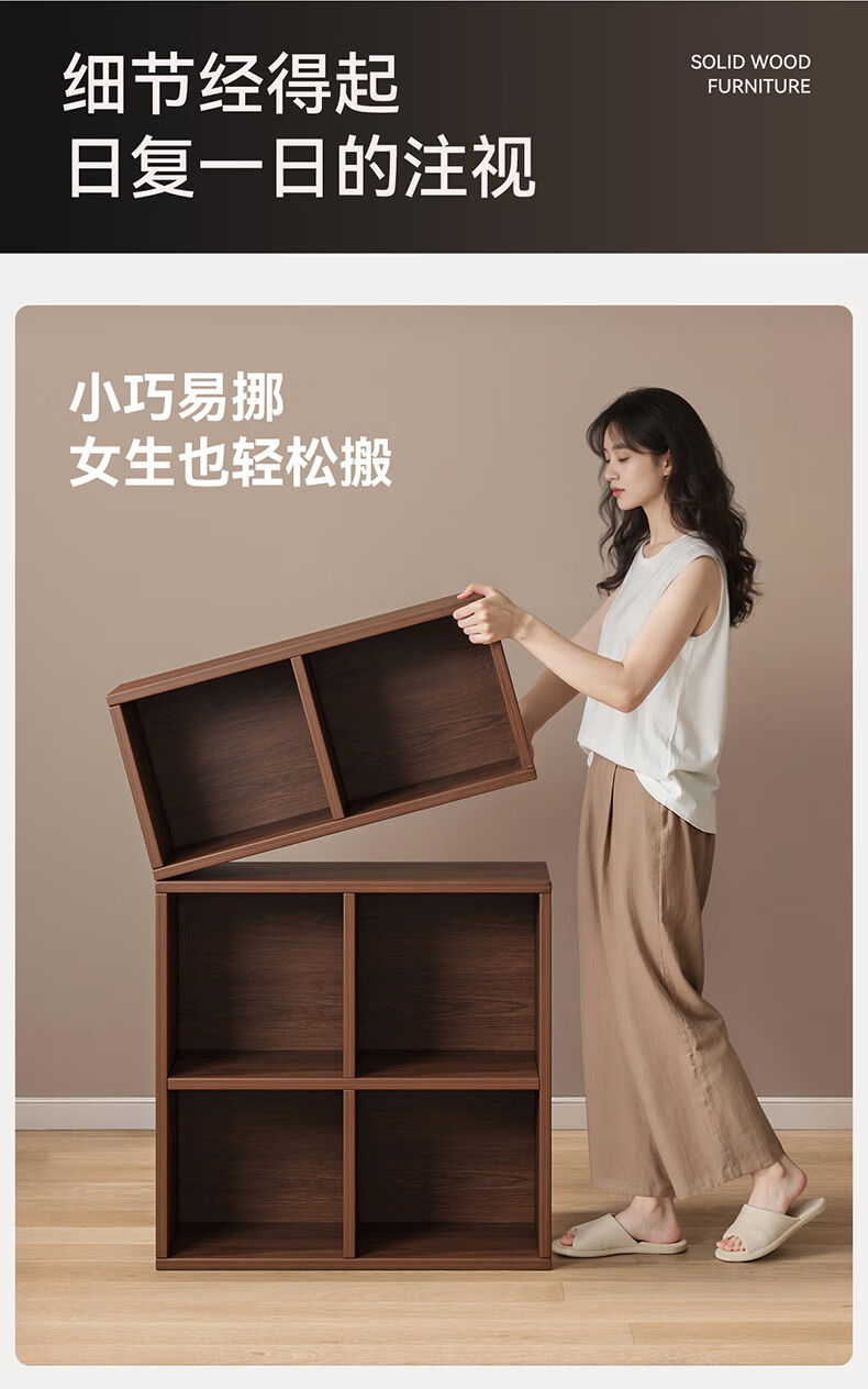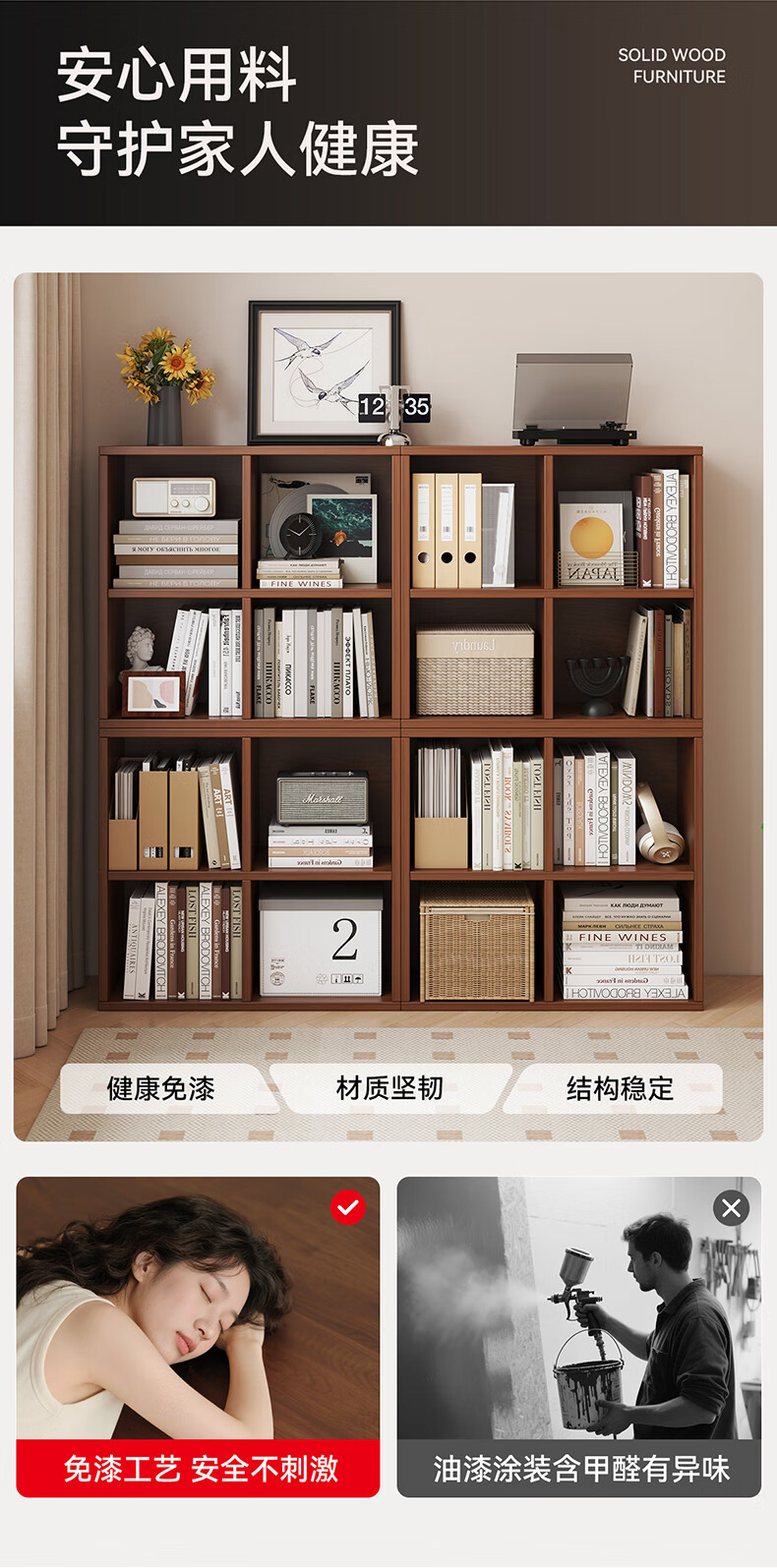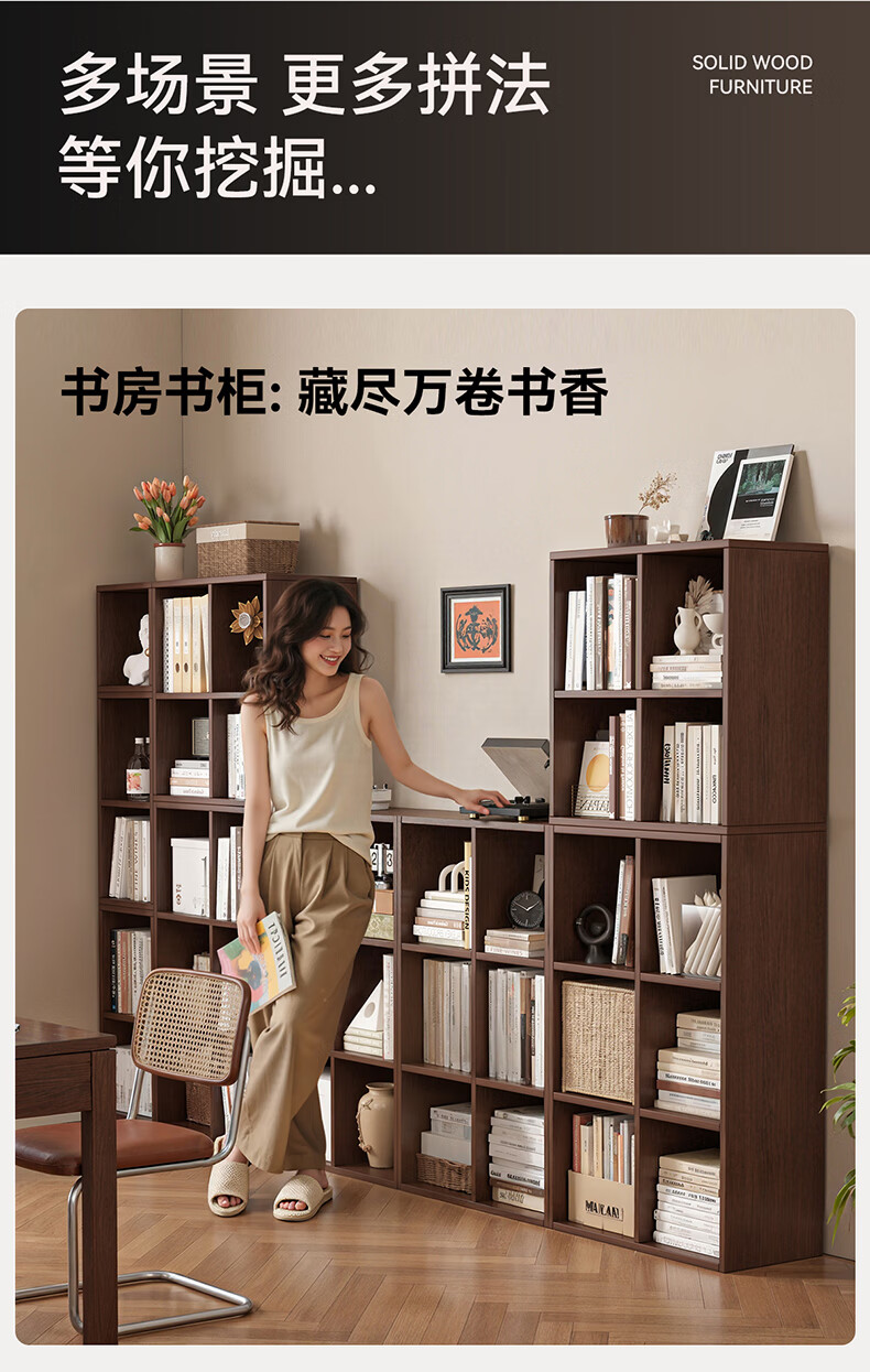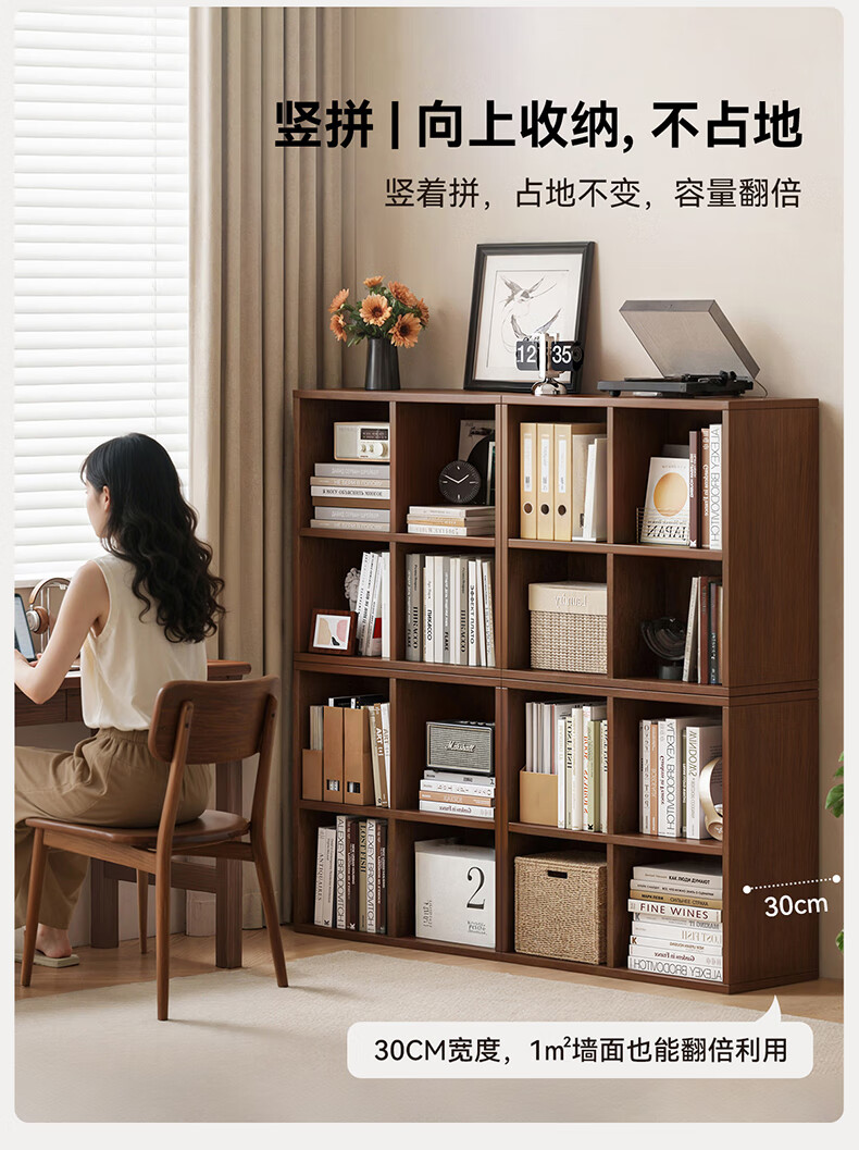 顾家家居书架置物架落地一体靠墙书柜储物柜家用收纳柜自由组合矮柜格子柜 包安装【自由组合】原木色2格款