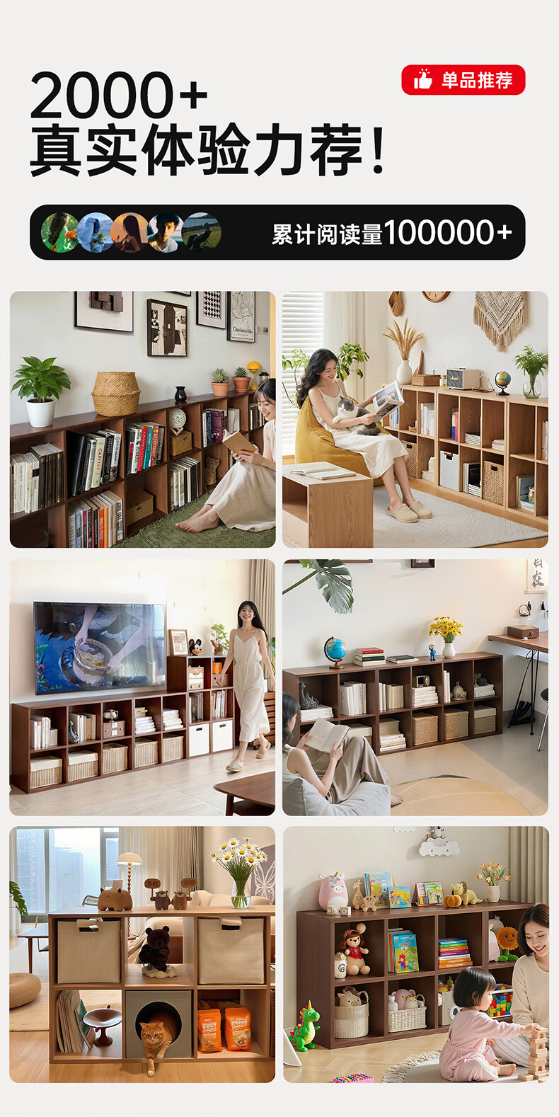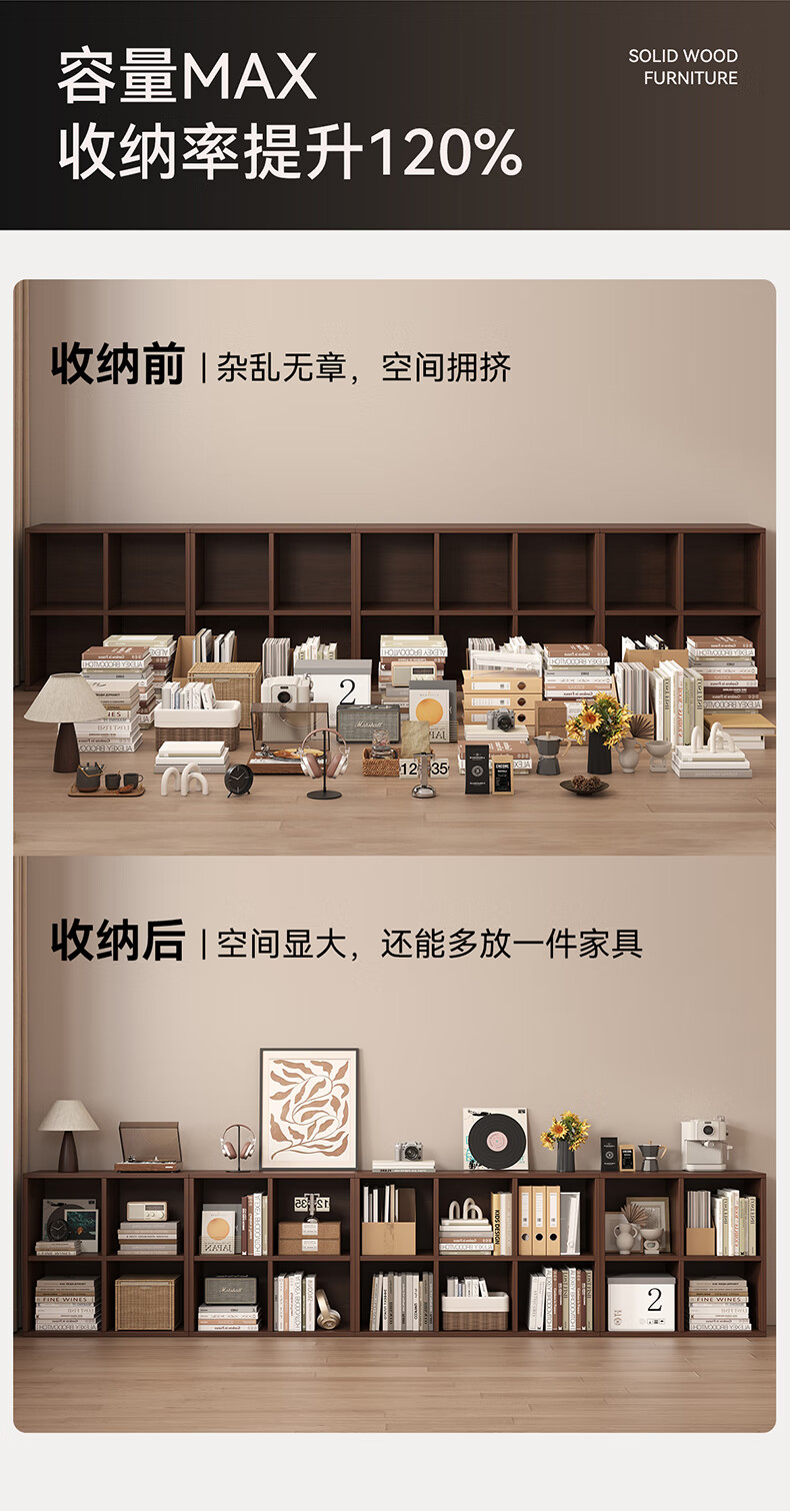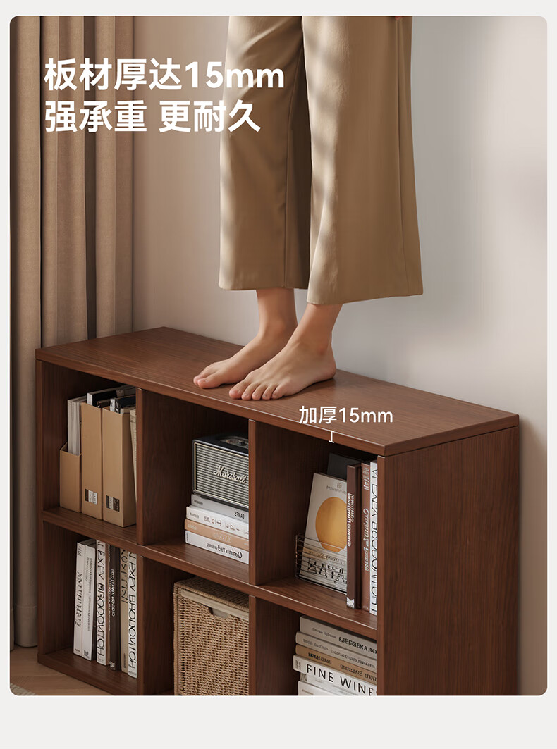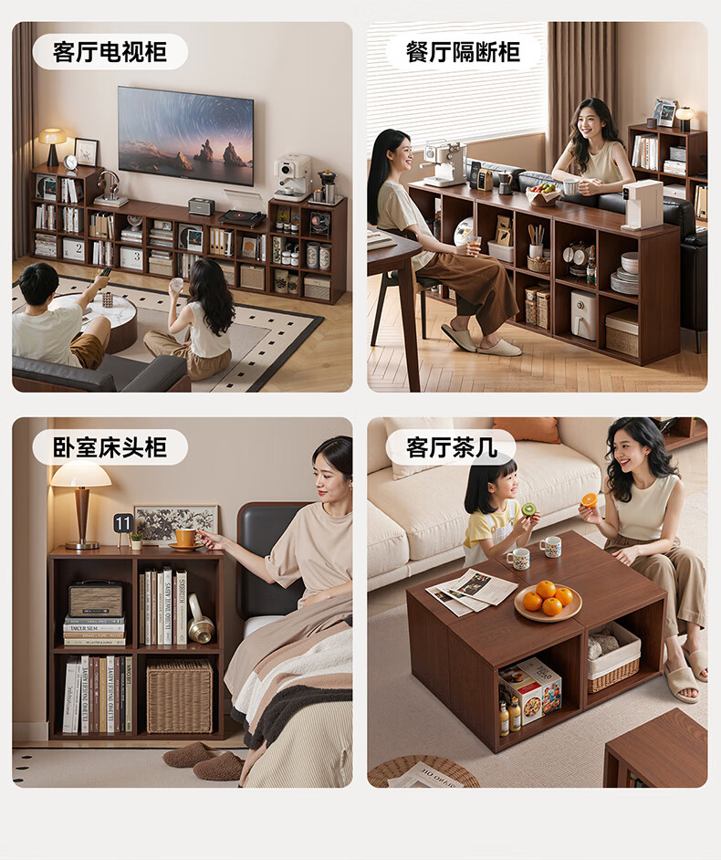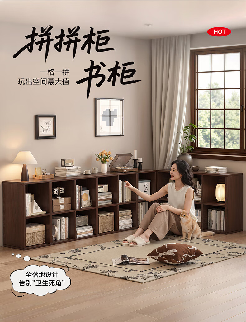 顾家家居书架置物架落地一体靠墙书柜储物柜家用收纳柜自由组合矮柜格子柜 包安装【自由组合】原木色2格款