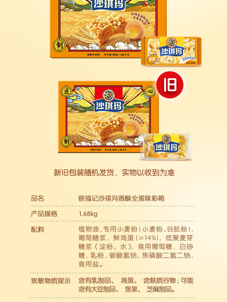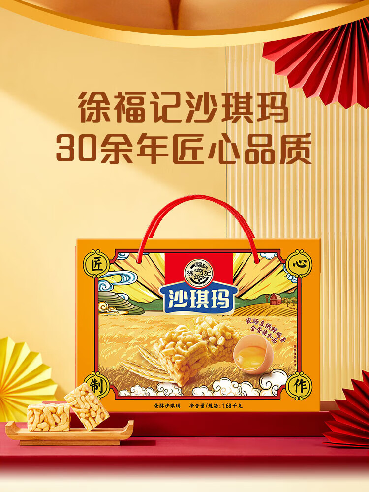徐福记香酥全蛋味沙琪玛礼盒1.68kg 休闲零食 早餐下午茶 糕点点心
