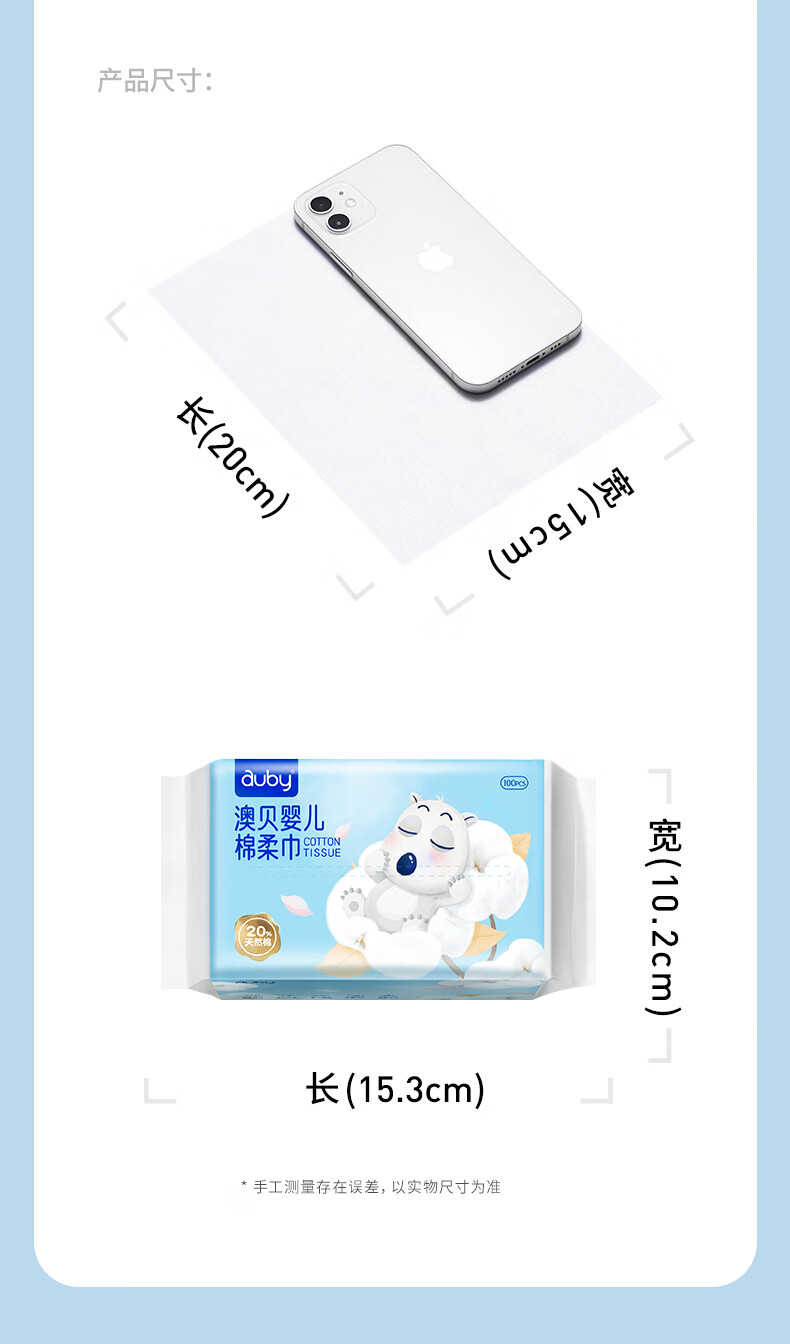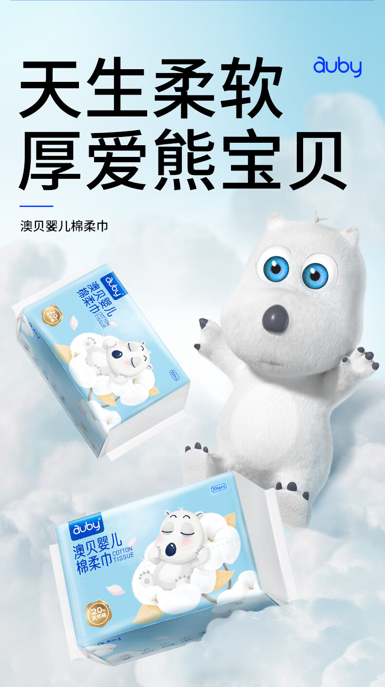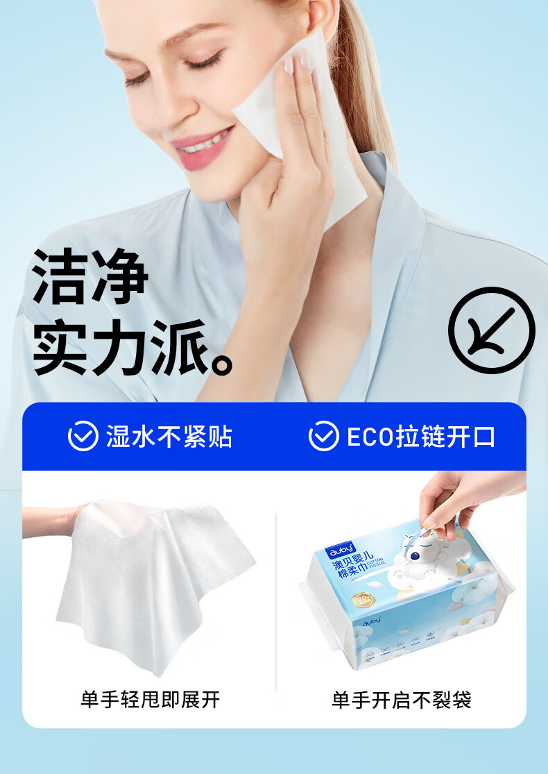 澳贝(auby)棉柔巾婴幼儿干湿两用宝宝专用新生儿柔纸洗脸巾一次性100抽*12包