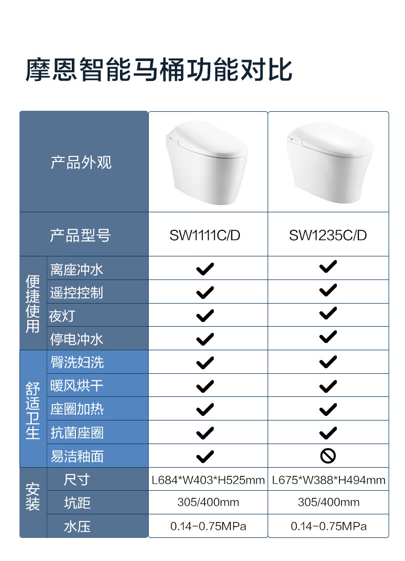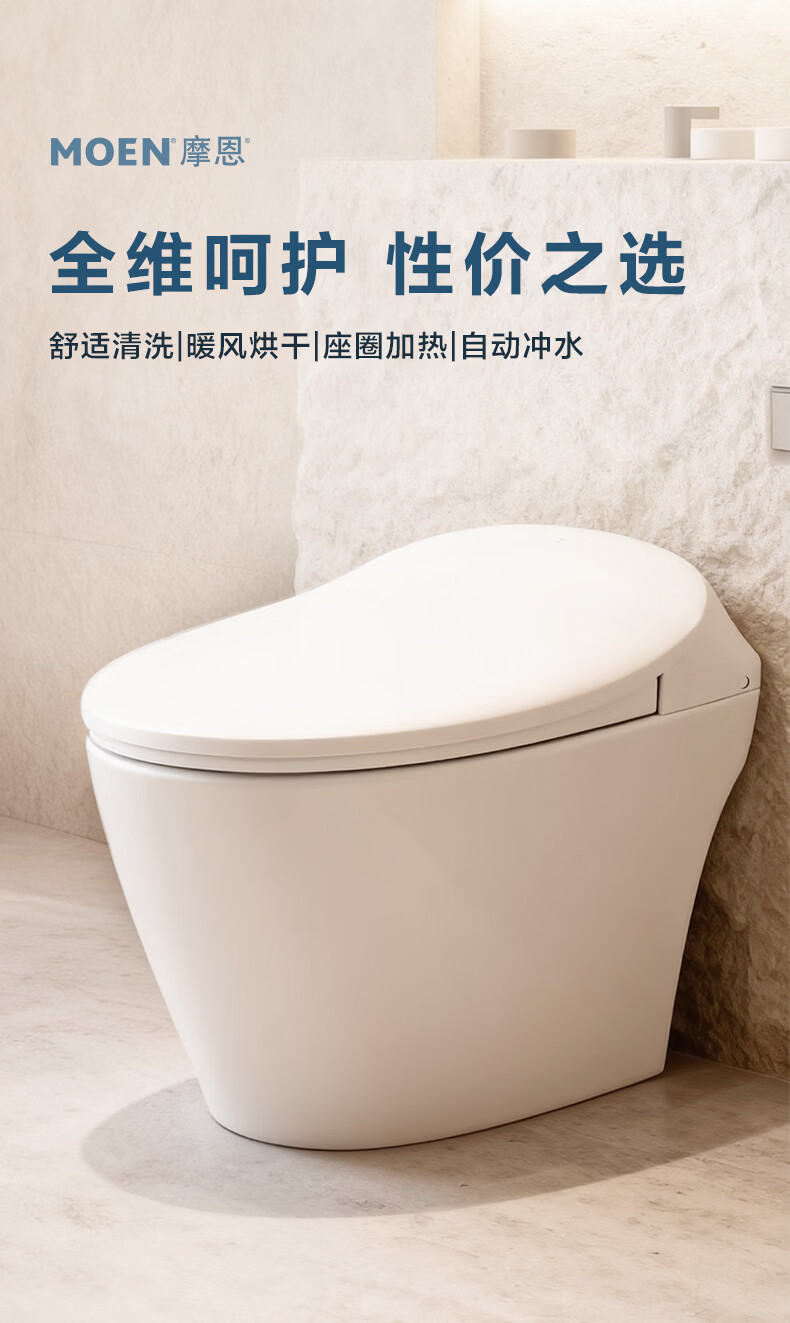 摩恩(MOEN)智能马桶一体式坐便器家用小户型离座自动冲水抗菌座圈SW1111 智能一体机 305/300mm