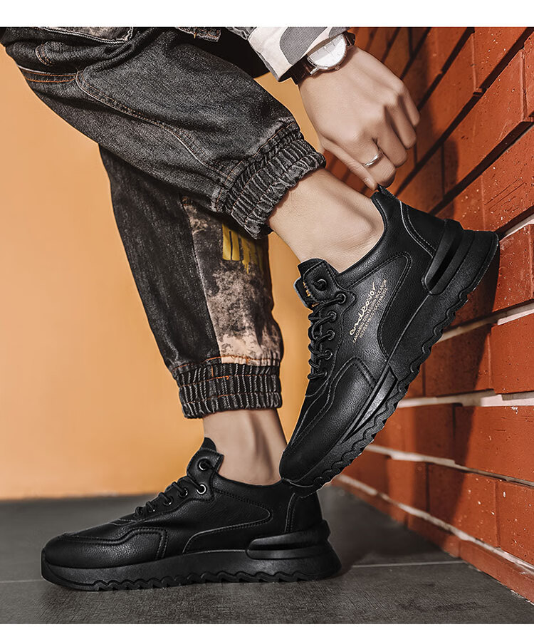 稻草人(MEXICAN)厨师男鞋冬季厨房工作劳保皮鞋黑色休闲运动男士防水防滑潮鞋秋季 黑色【升级款】 39