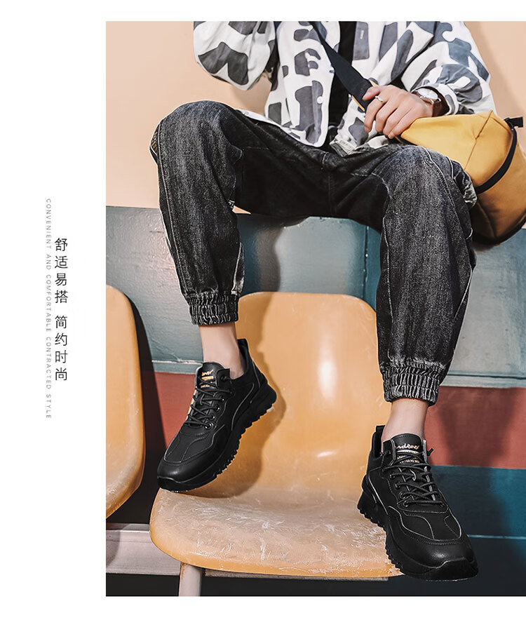 足力健老人鞋春季中老年散步鞋轻便爸爸鞋休闲鞋运动鞋男鞋 02K黑色40