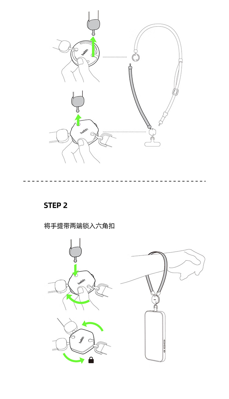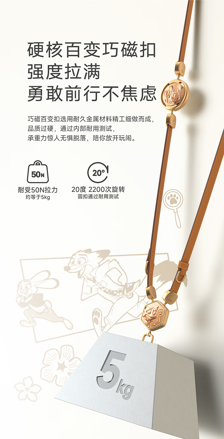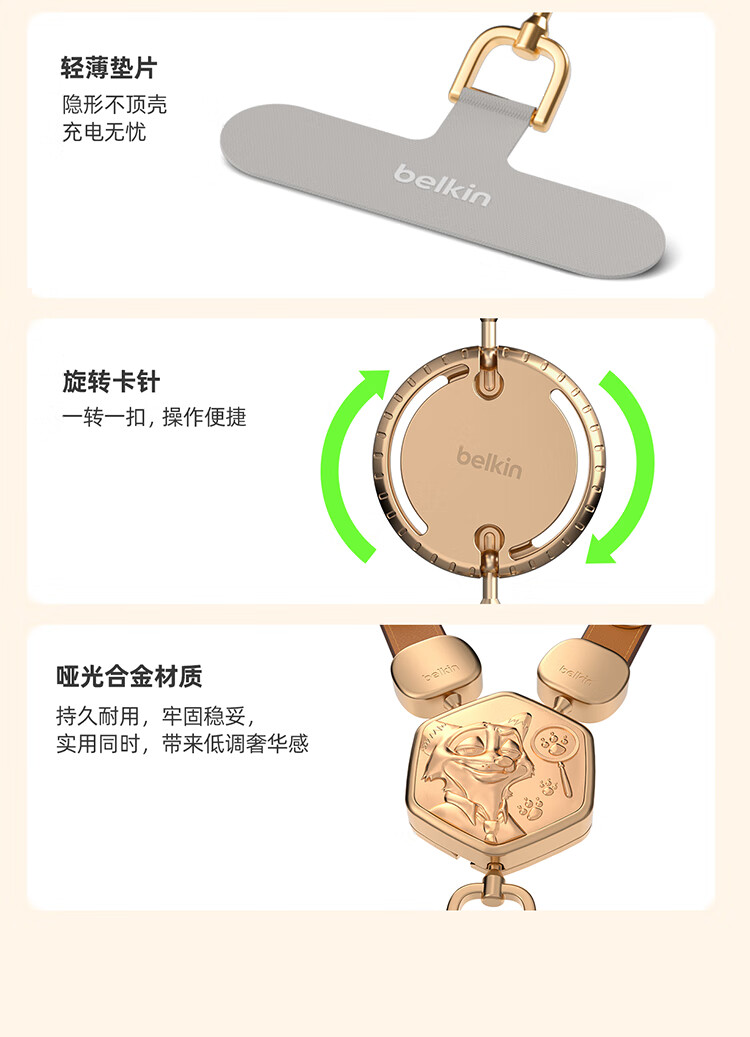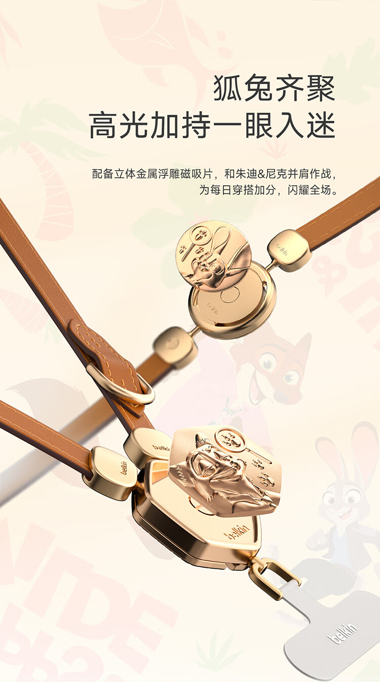 贝尔金(BELKIN)手机挂绳手腕 手机链手机绳高级感挂脖斜跨手机防丢绳带手机垫片 皮革二合一 疯狂动物城2