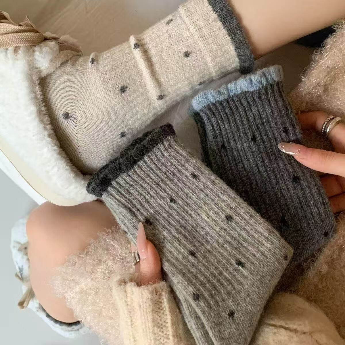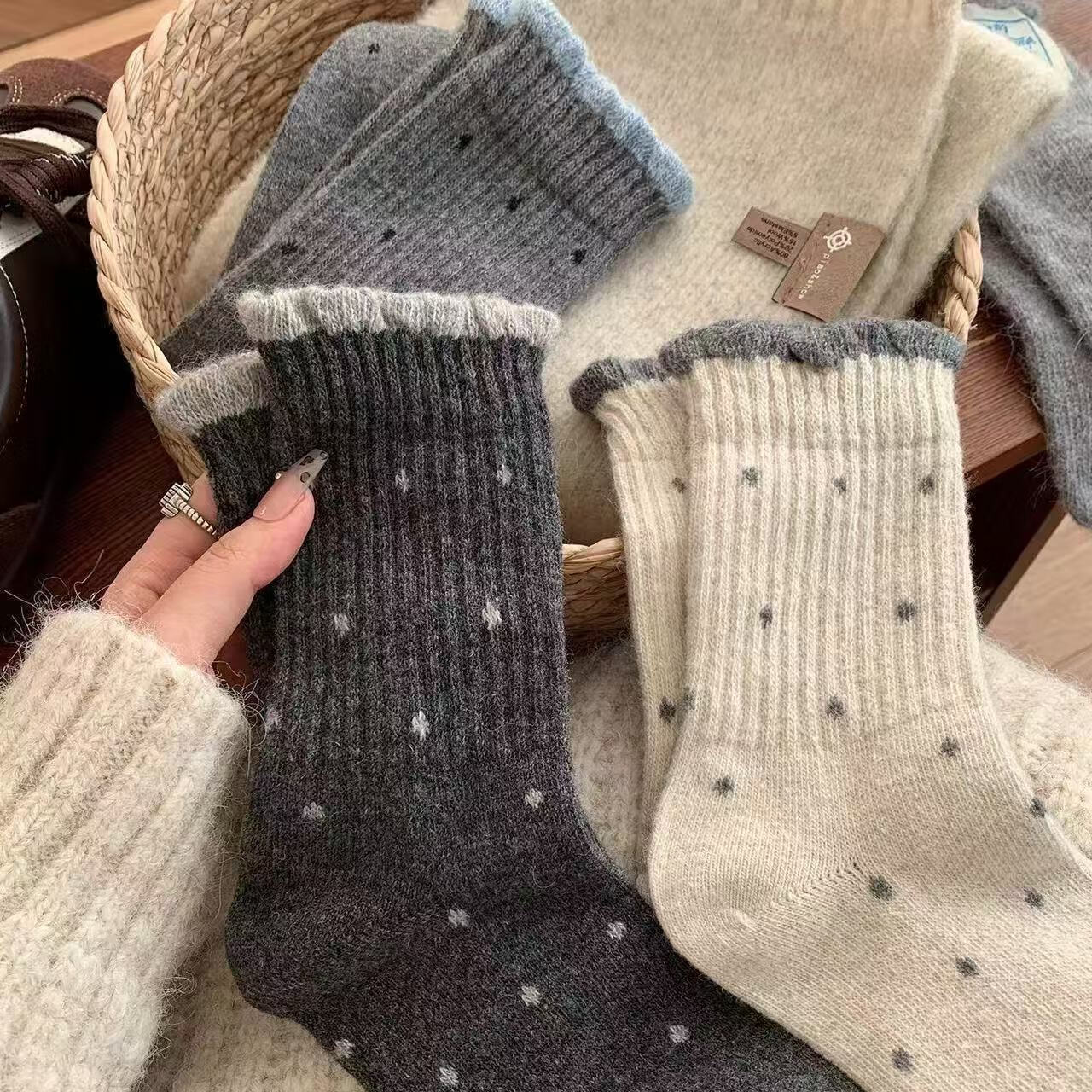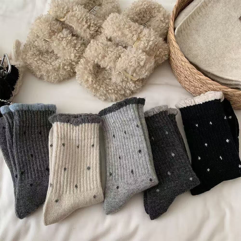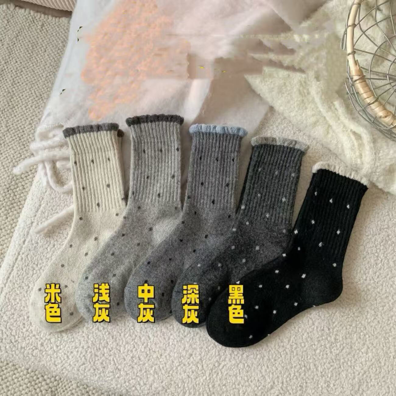 袜子女中筒花边波点女袜透气高筒袜秋冬季简约女士中筒袜运动长袜 【随机款式】 2双 均码