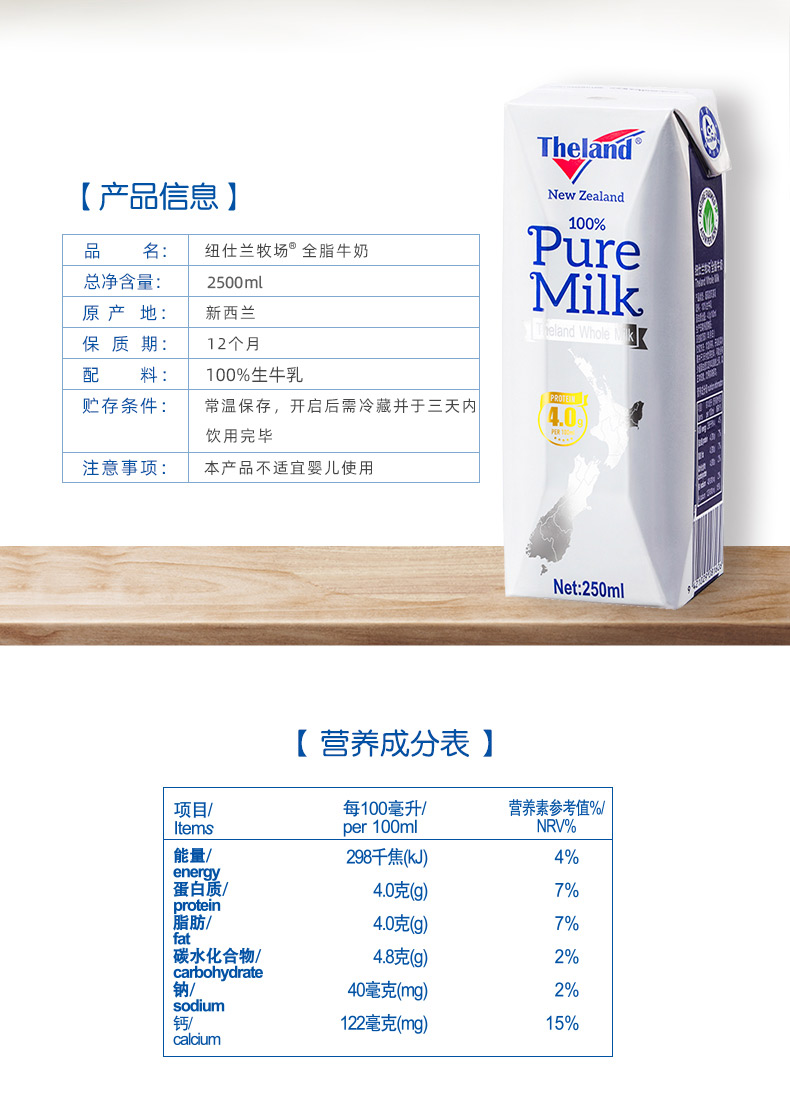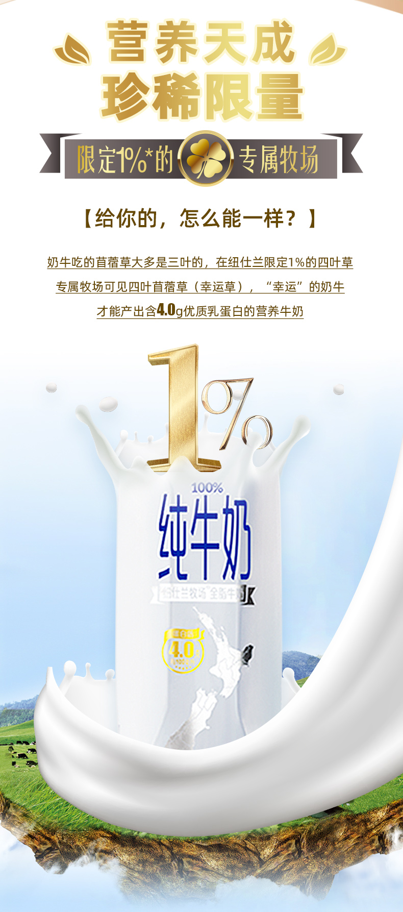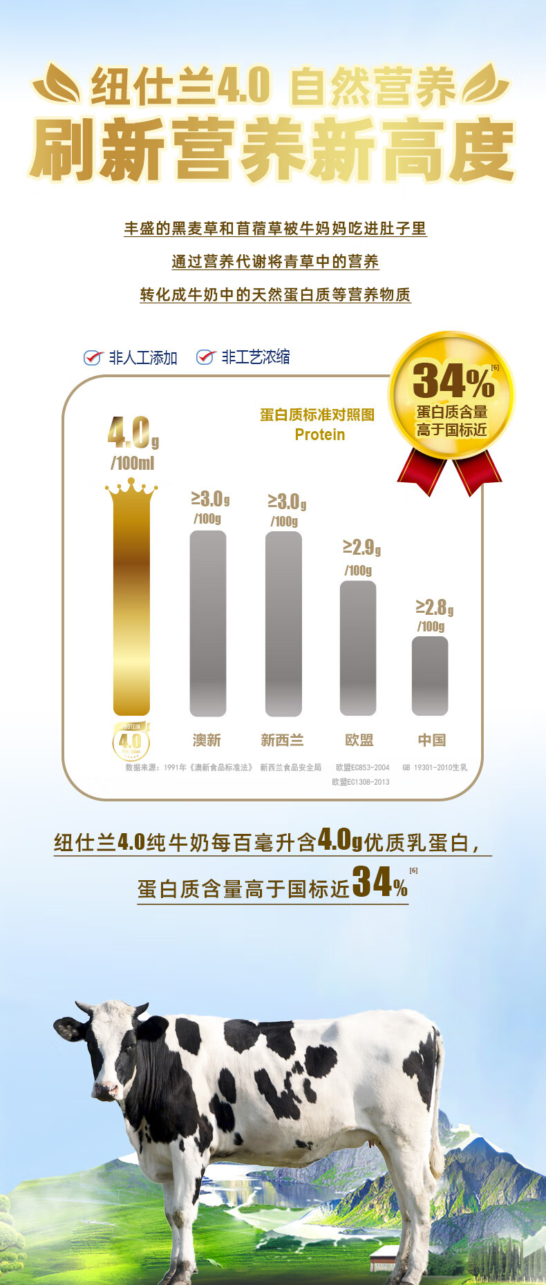 纽仕兰新西兰草饲4.0g蛋白质全脂纯牛奶礼盒 250ml*10盒 新年送礼