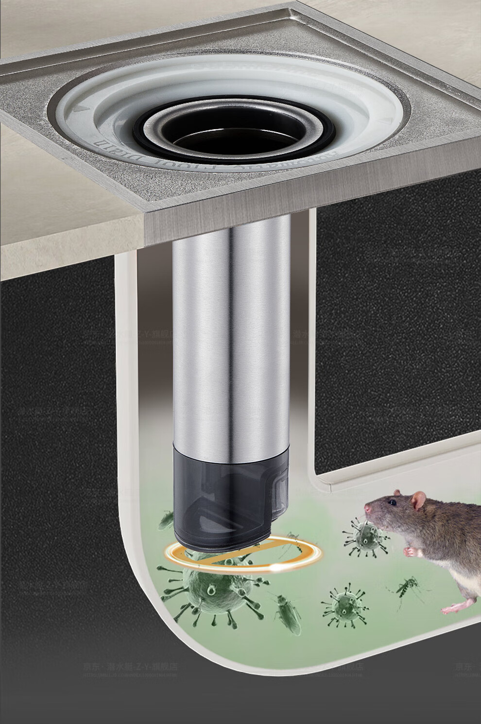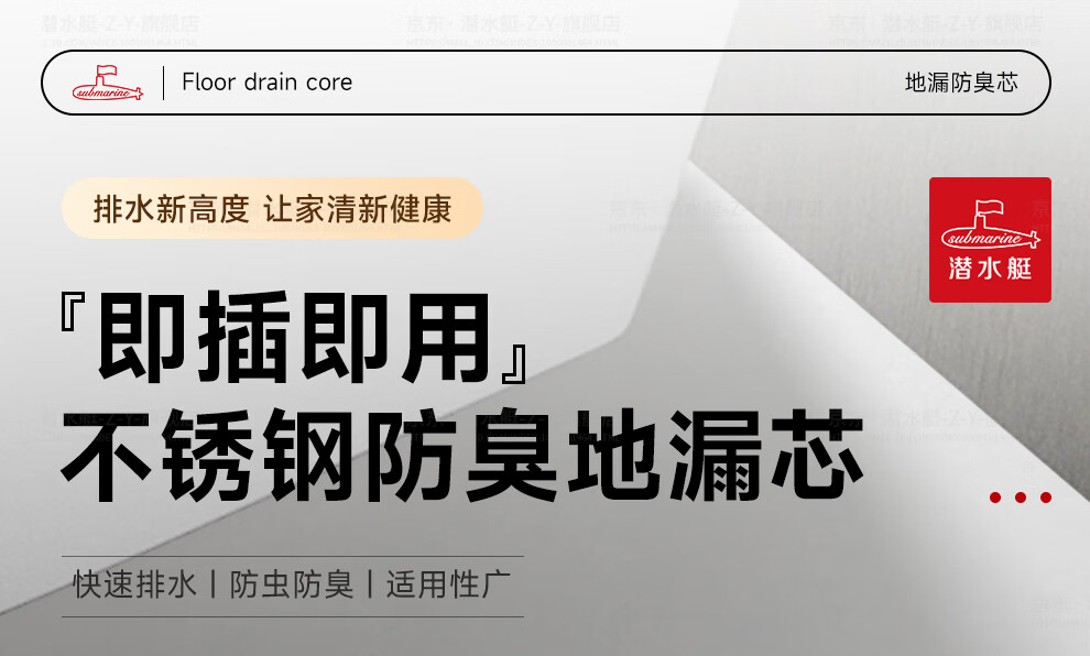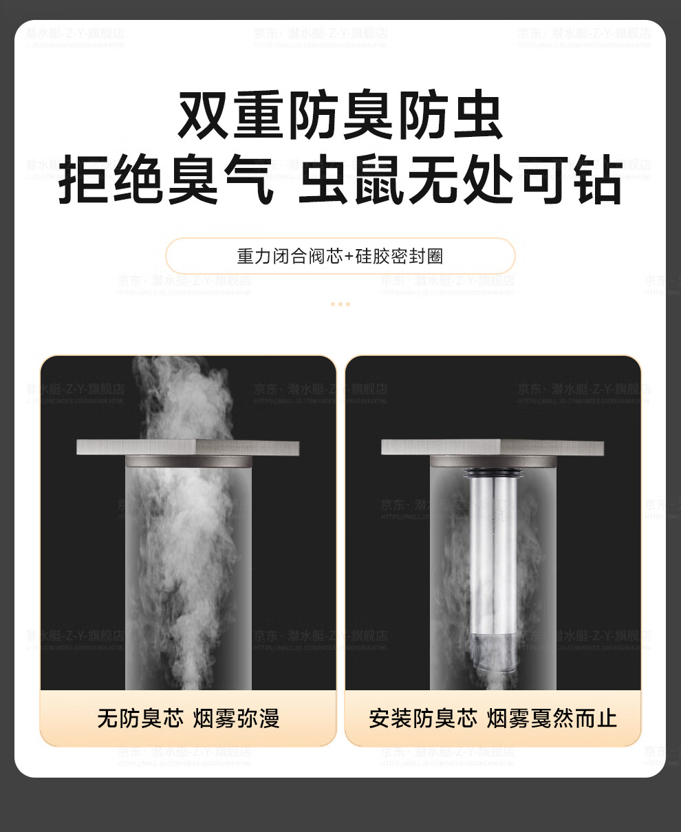 潜水艇(Submarine)FCQ-3215B不锈钢断层地漏专用防臭内芯加长防臭适配多种尺寸