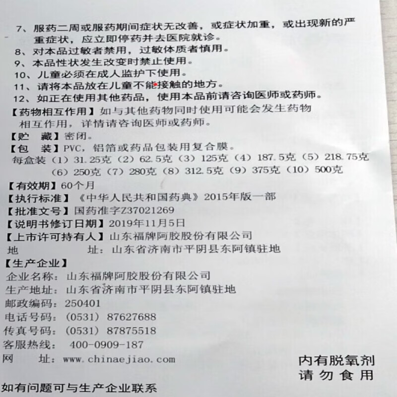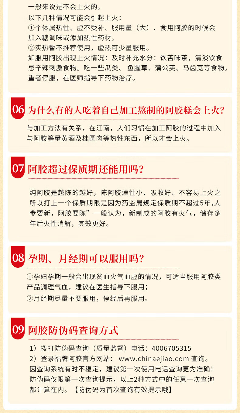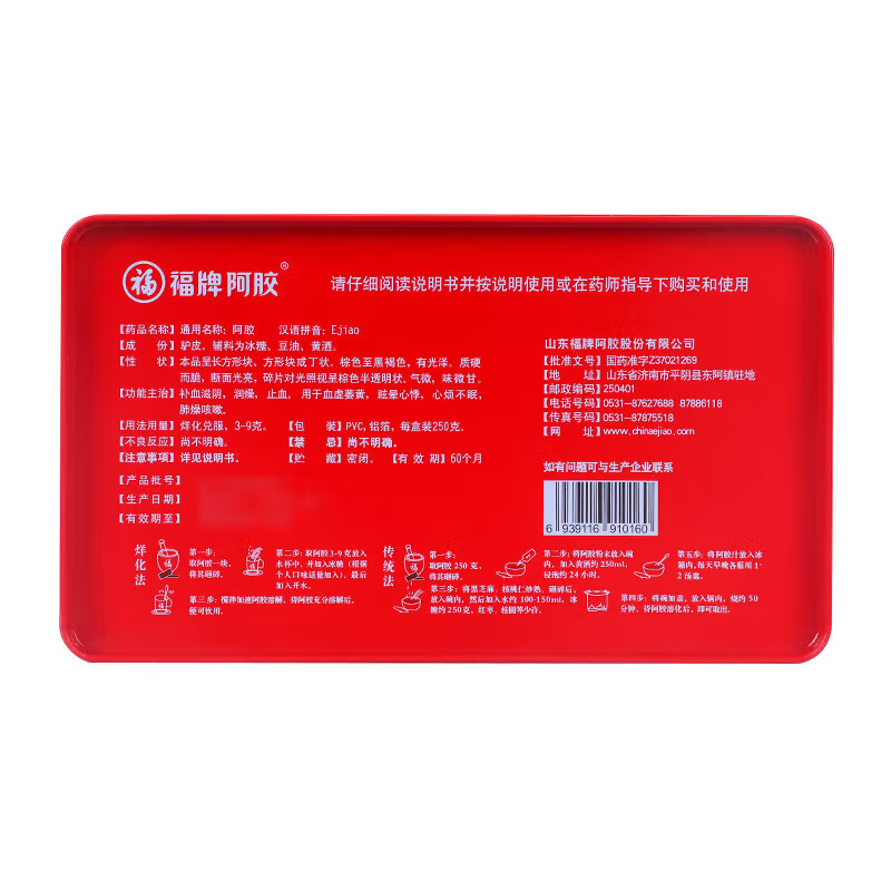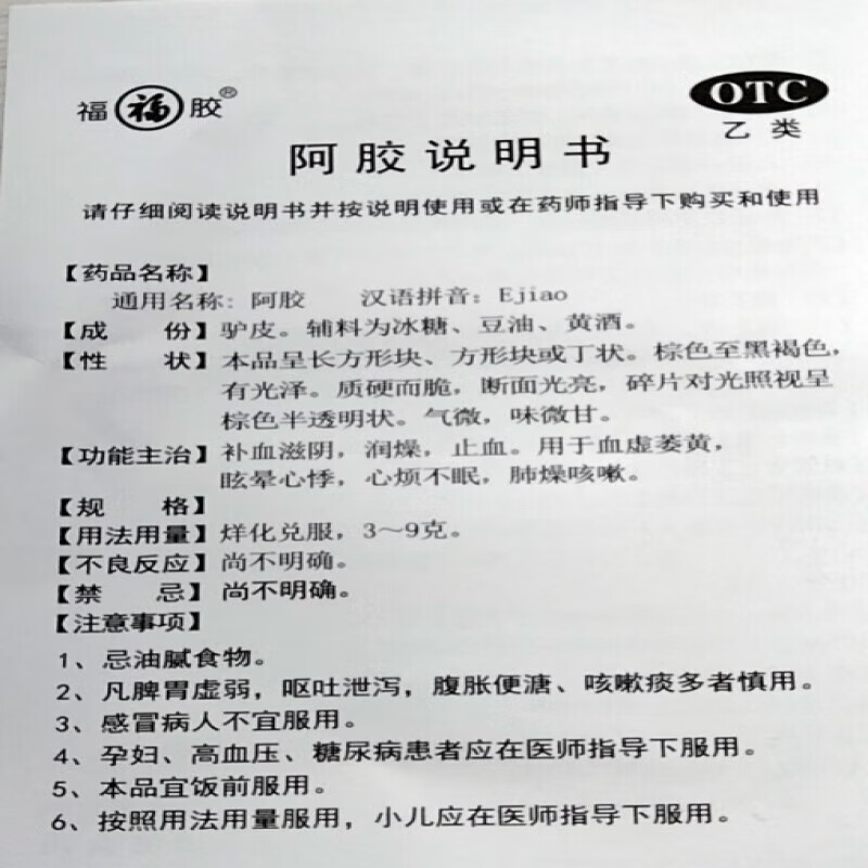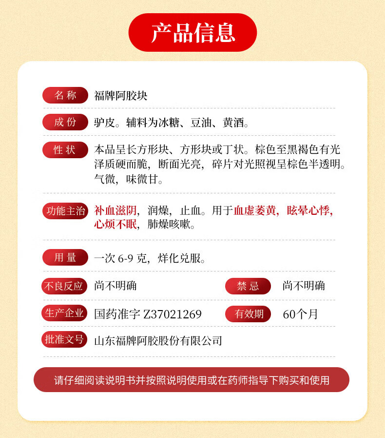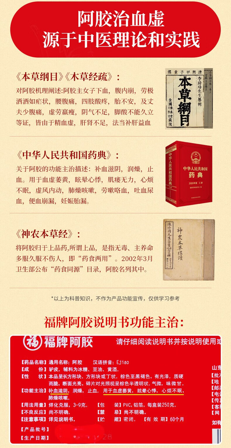福胶 福牌阿胶 250g 补血滋阴 润燥止血 用于血虚萎黄 眩晕心悸 心烦不眠 肺燥咳嗽