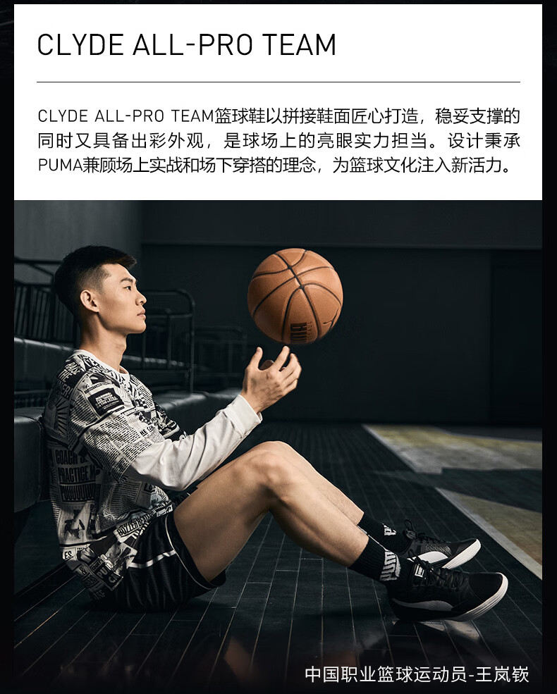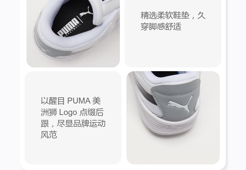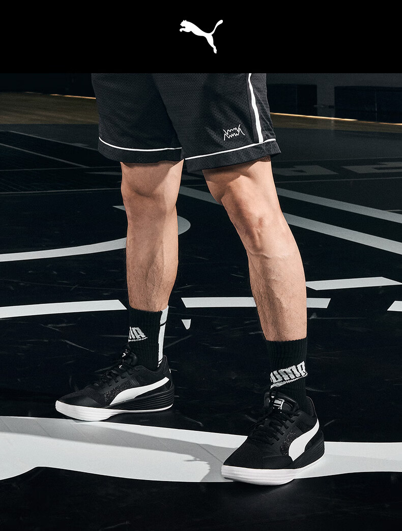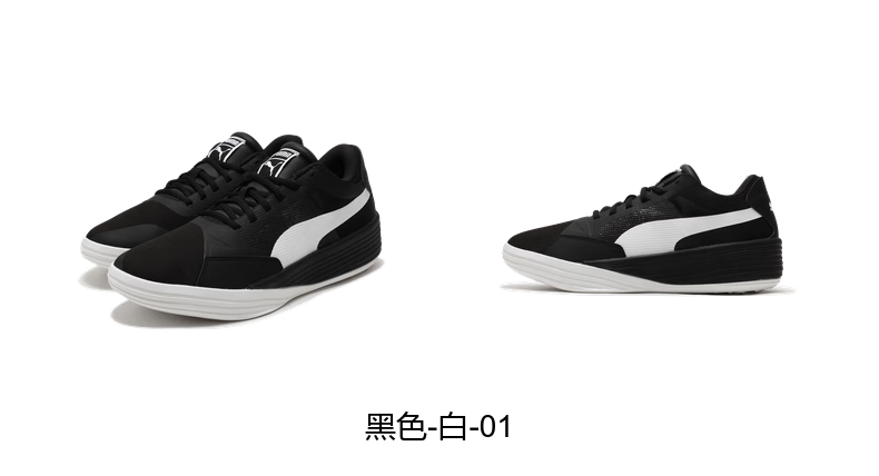 彪马(PUMA)王岚嵚同款|缓震实战篮球鞋男女款轻便低帮运动鞋 195509 白-黑色-02 43