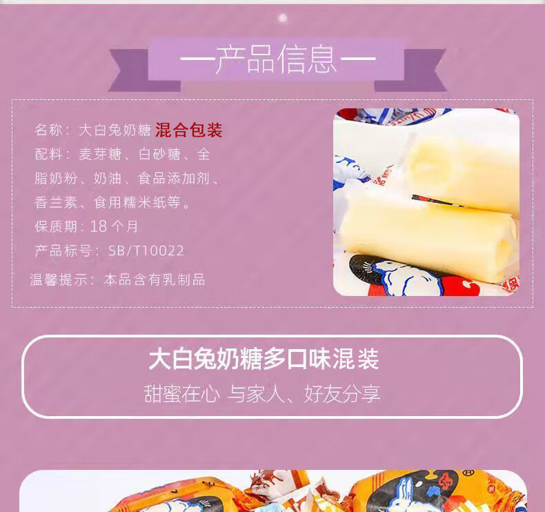 大白兔混合口味奶糖 500g约90颗散结婚喜糖上海特产 过年儿童糖果 零食