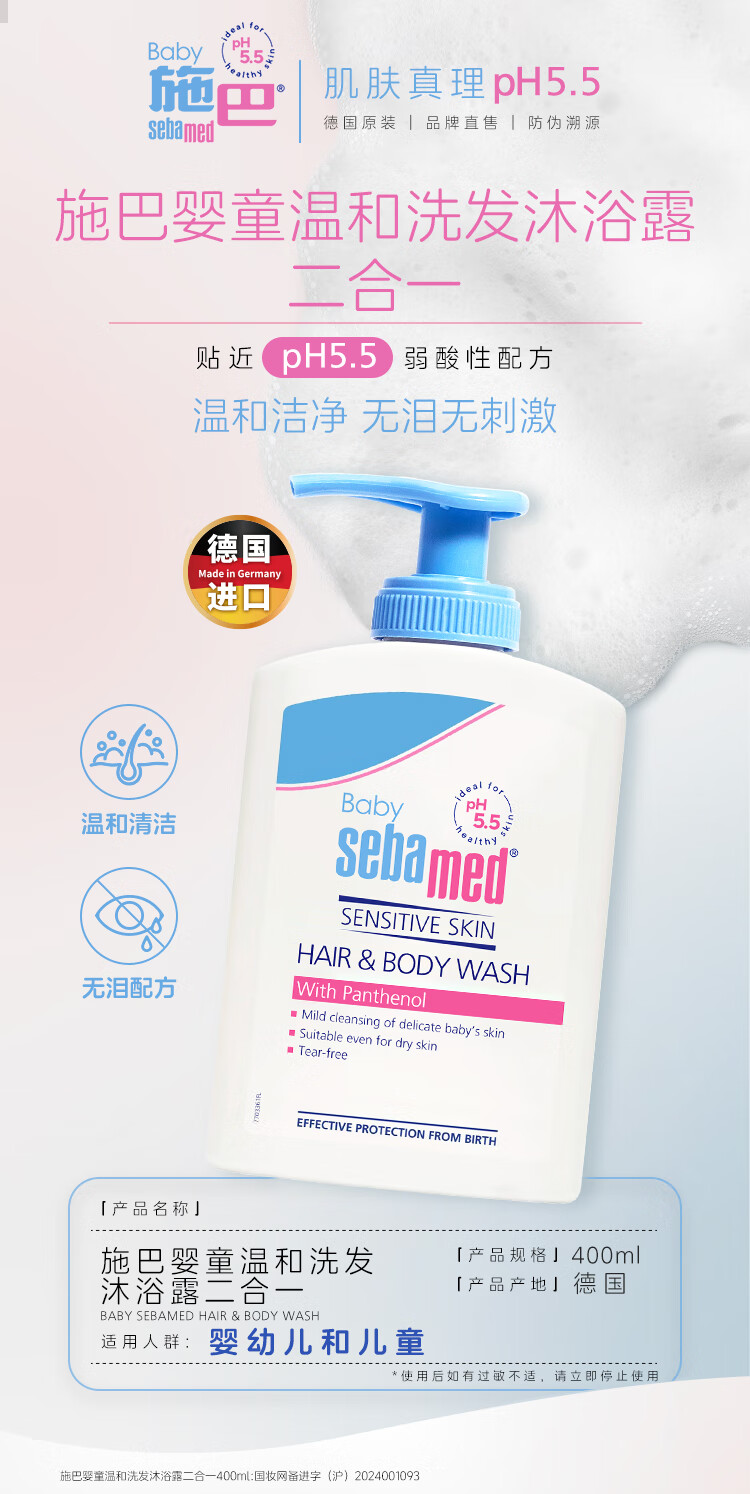 施巴婴童温和洗发沐浴露二合一400ml【临期清仓】