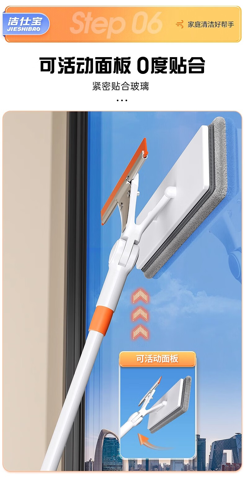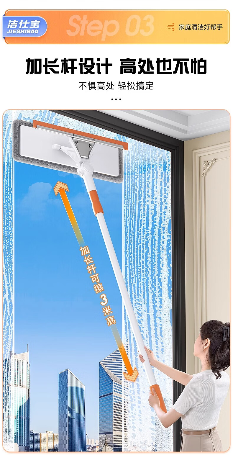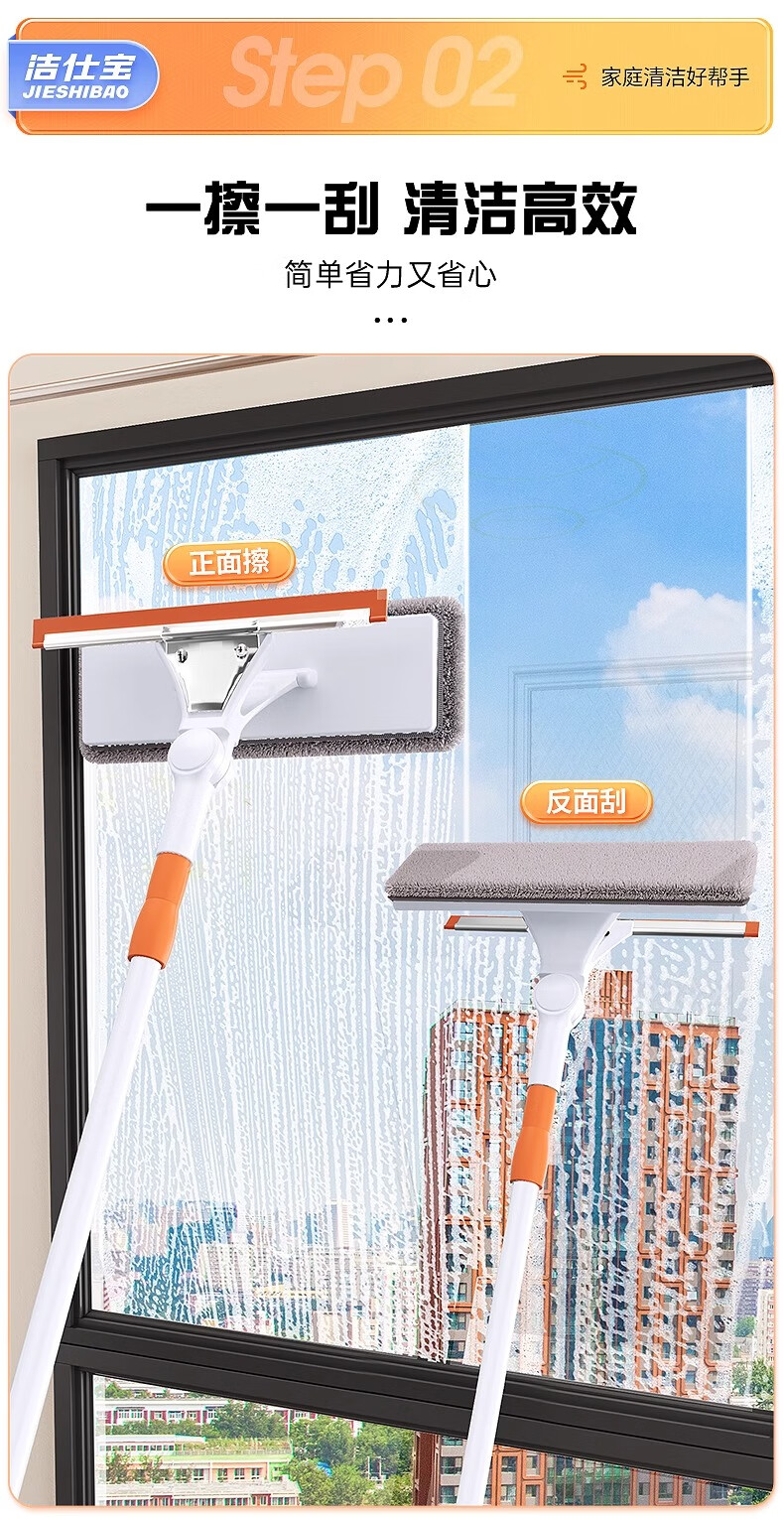 洁仕宝擦玻璃神器家用高层窗外专用刷伸缩杆双面搽洗刮水板保洁清洁窗户 加长杆可伸缩【 2块布】