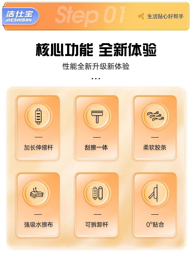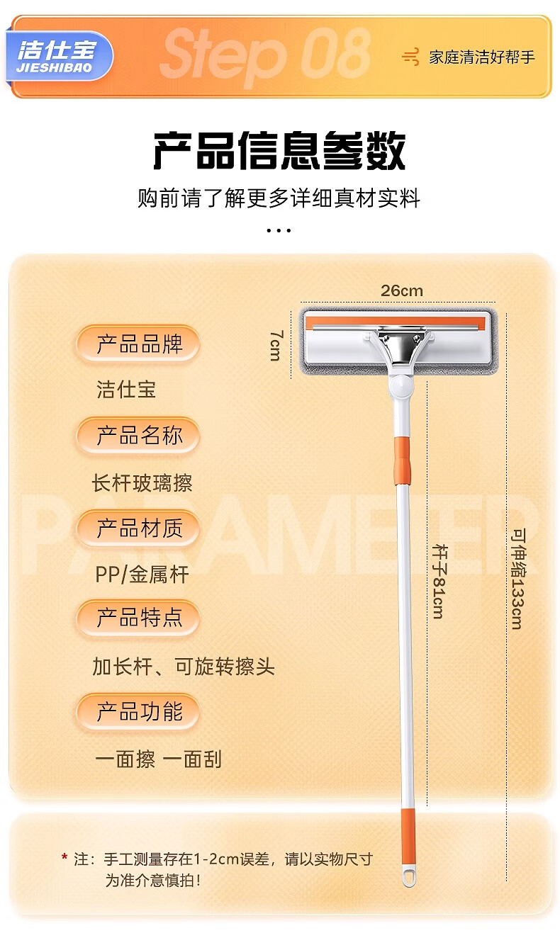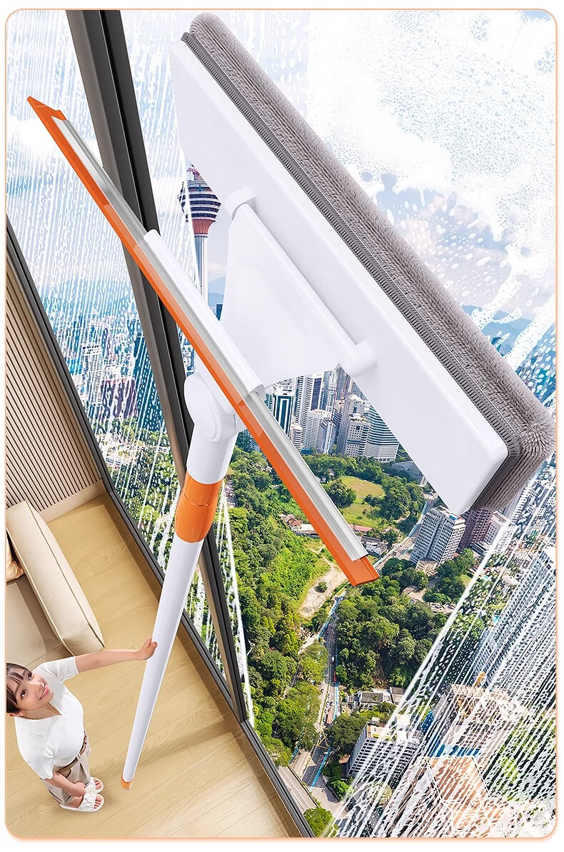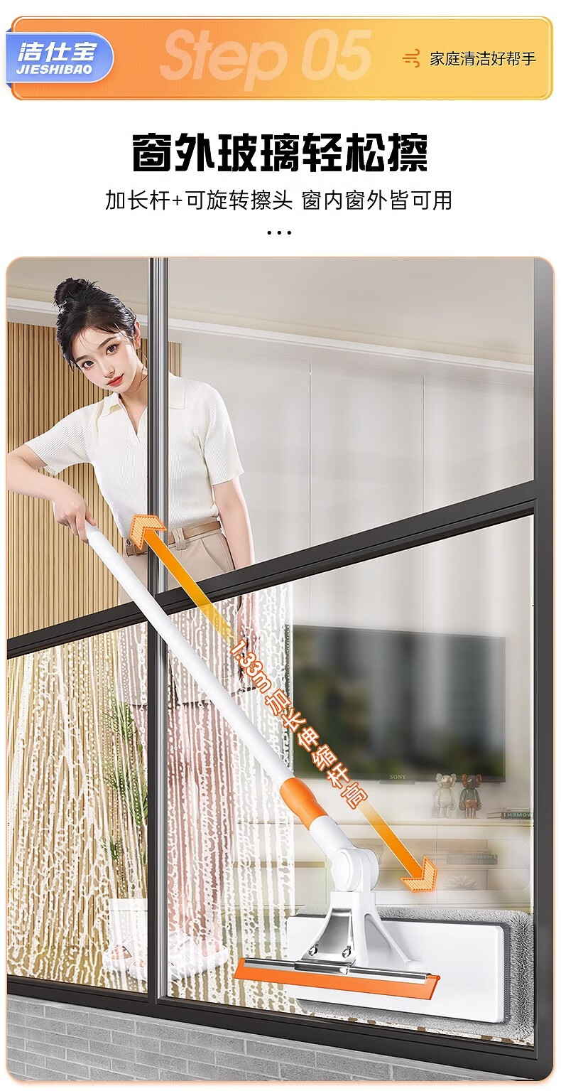 洁仕宝擦玻璃神器家用高层窗外专用刷伸缩杆双面搽洗刮水板保洁清洁窗户 加长杆可伸缩【 2块布】