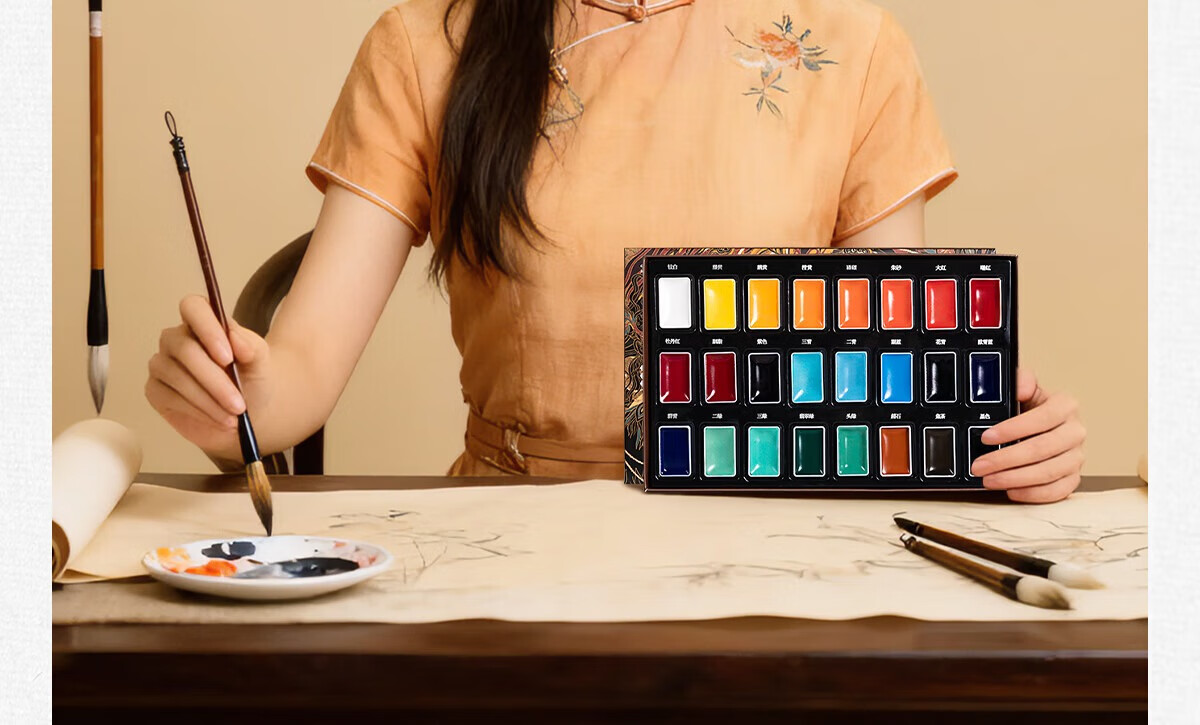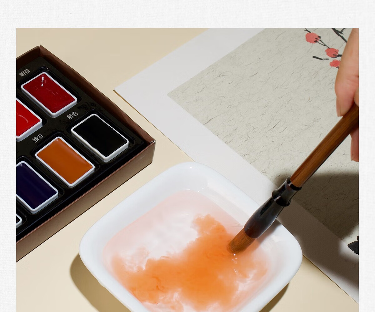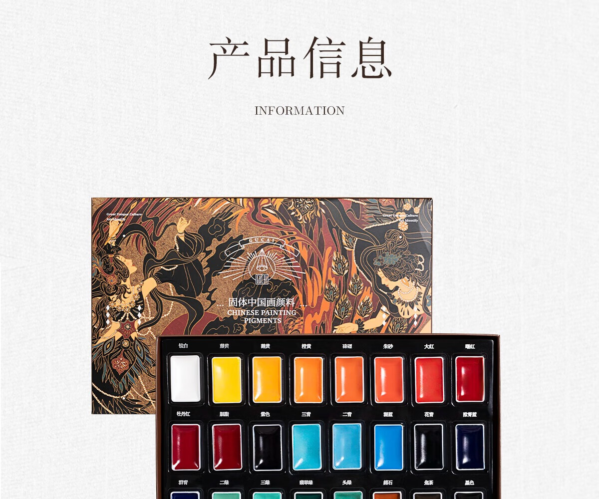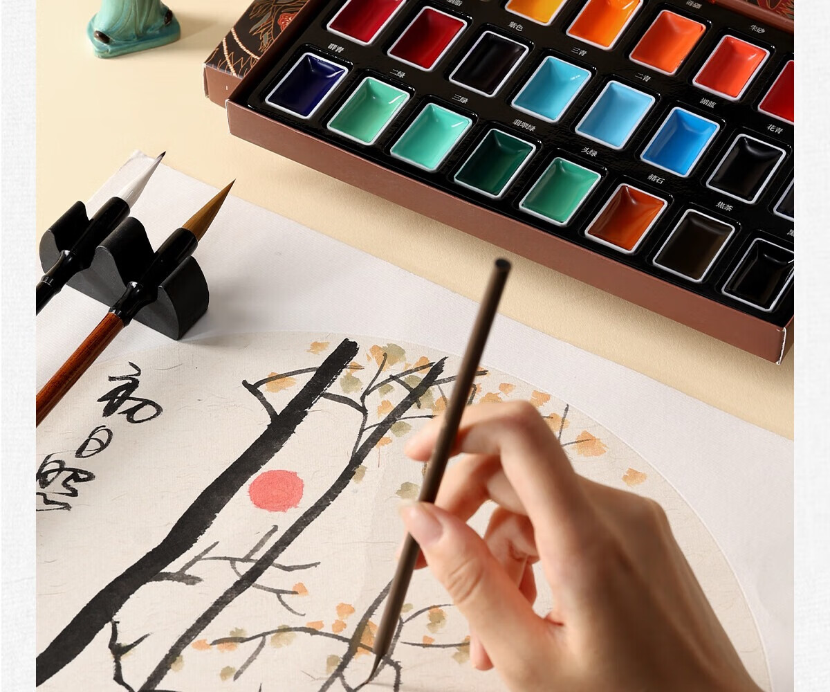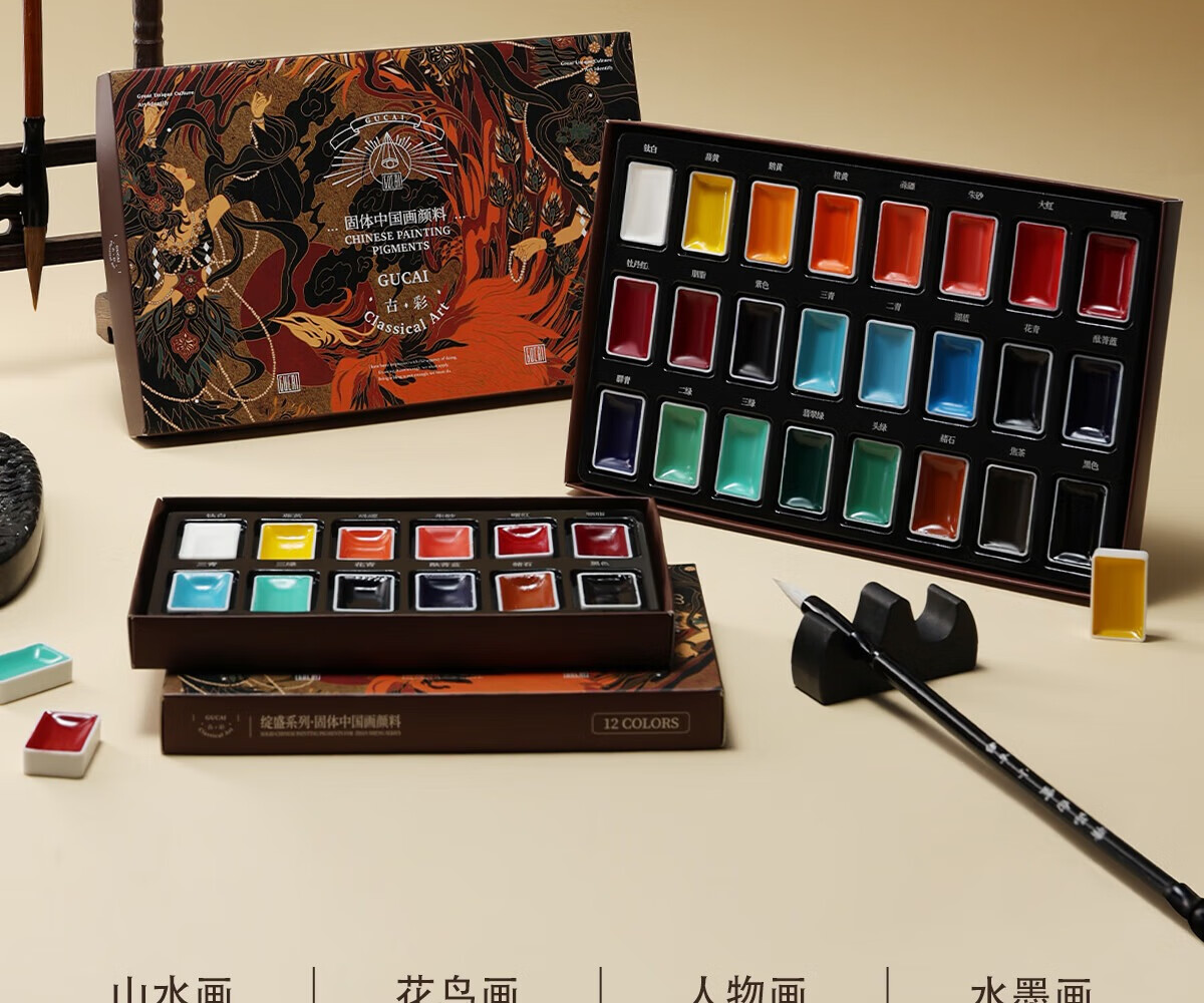 古彩 CLASSICAL ART固体国画颜料24色绽盛系列初学套装中国画12色套装钛白藤黄小学生水墨画工笔画高级传统矿物质颜料 12色固体国画颜料