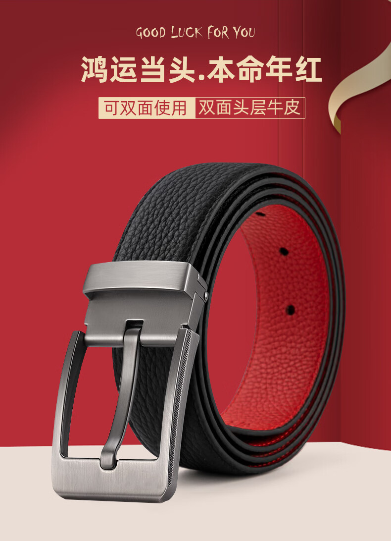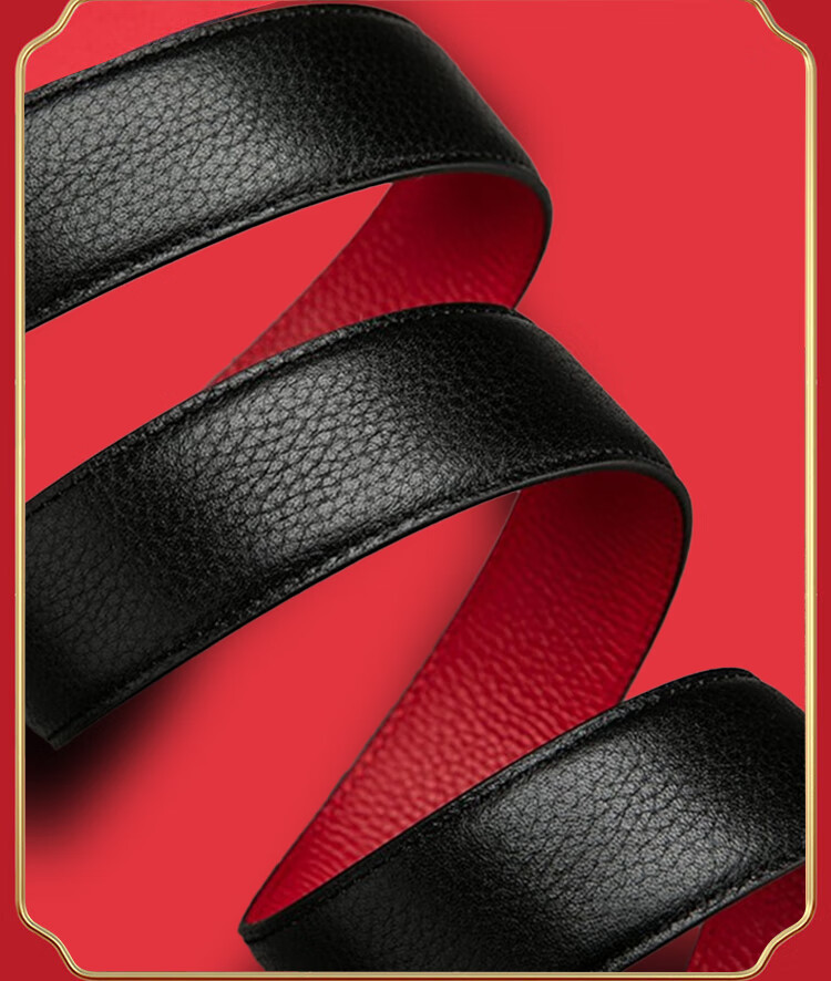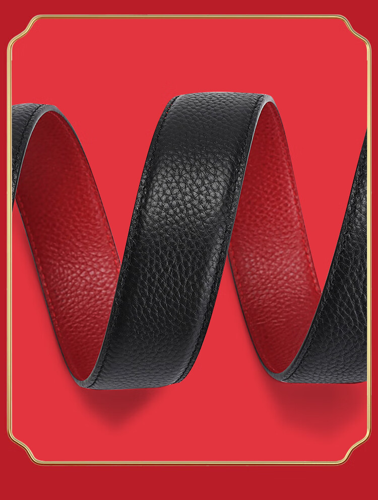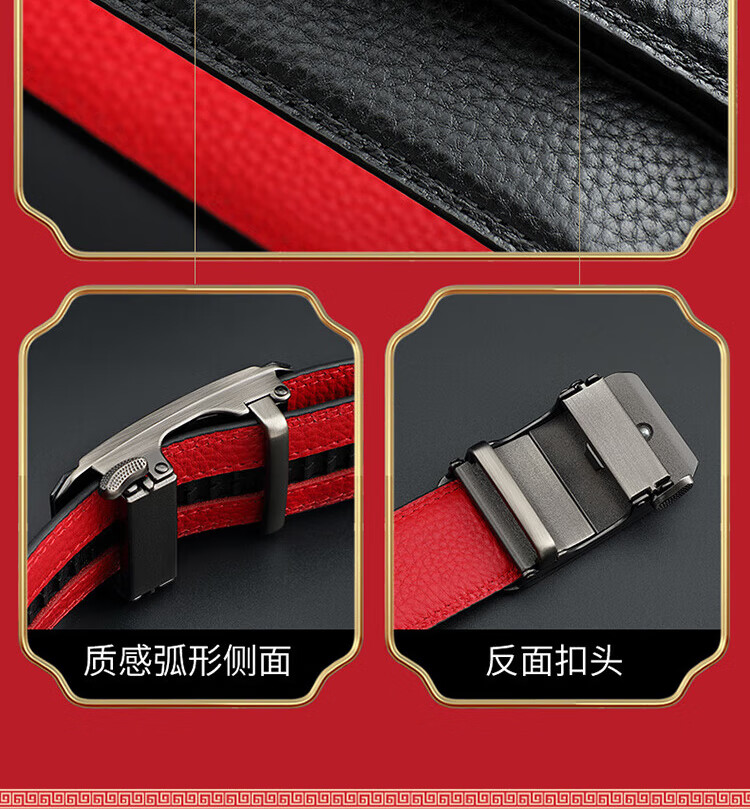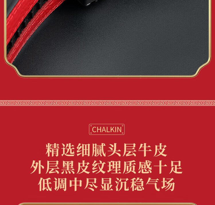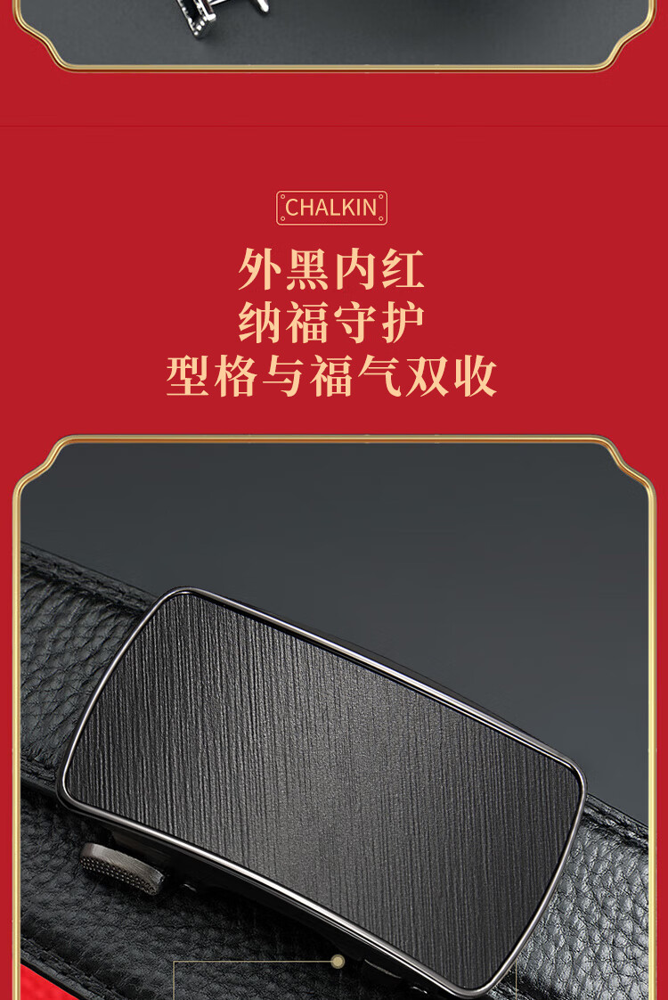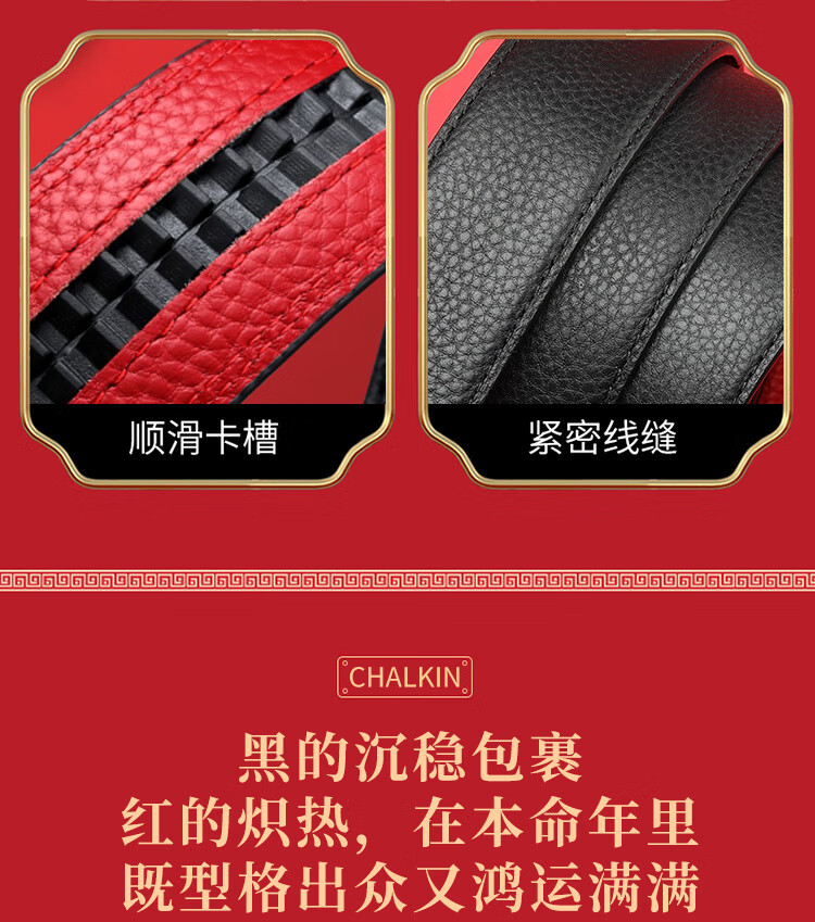 CHALKIN本命年腰带男马年红黑两面真皮针扣皮带双面用头层牛皮爸爸裤腰带 款49打孔带 115cm 体重135-145/裤码34-35