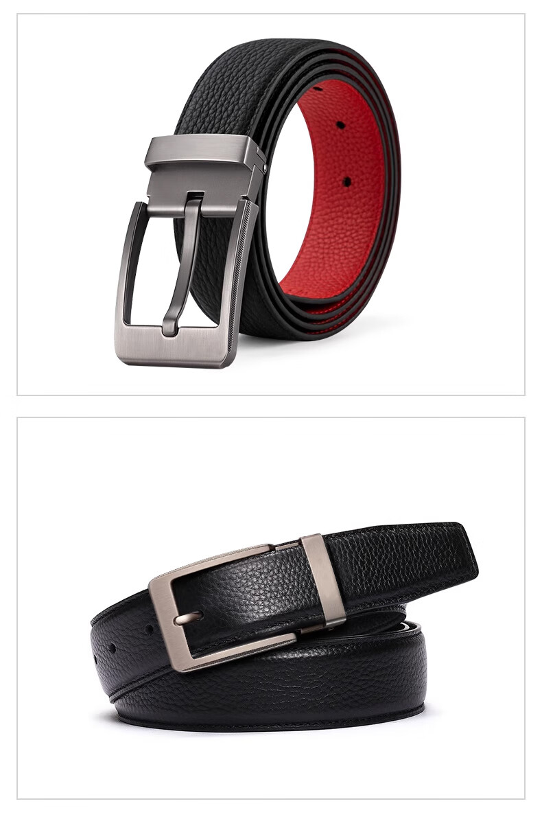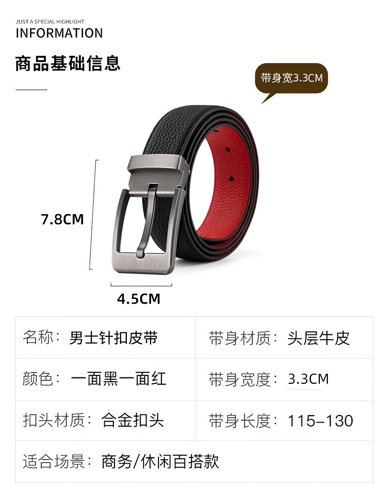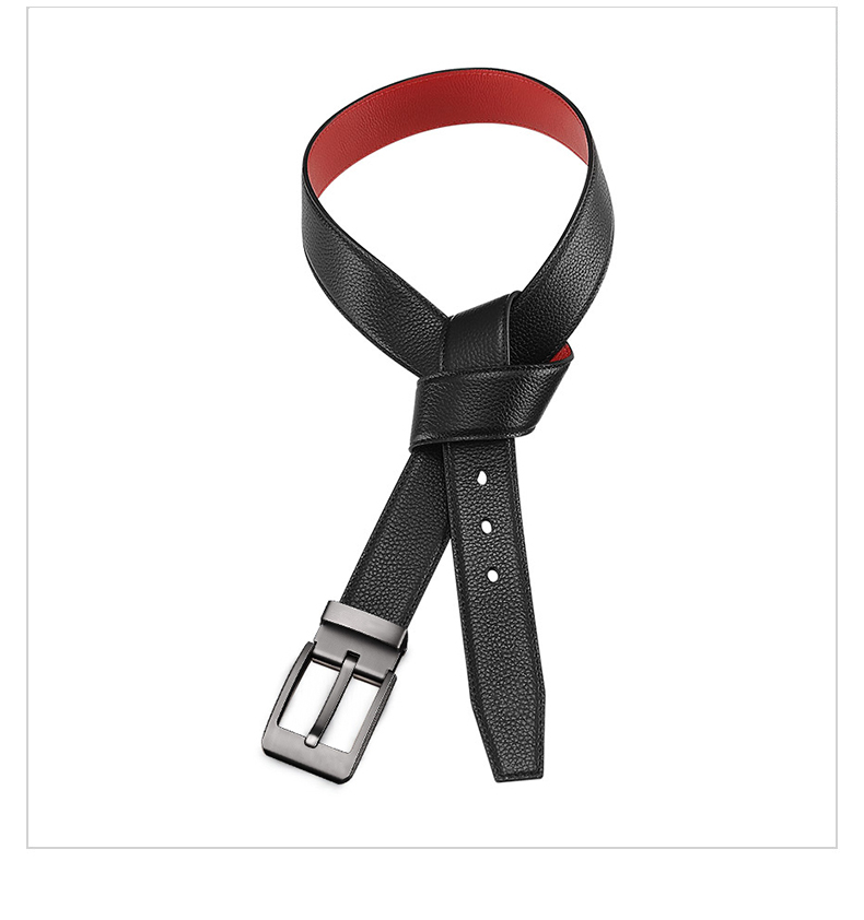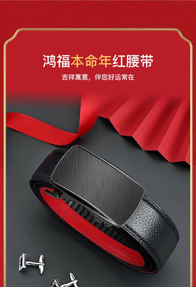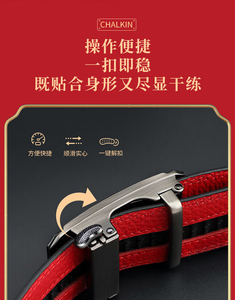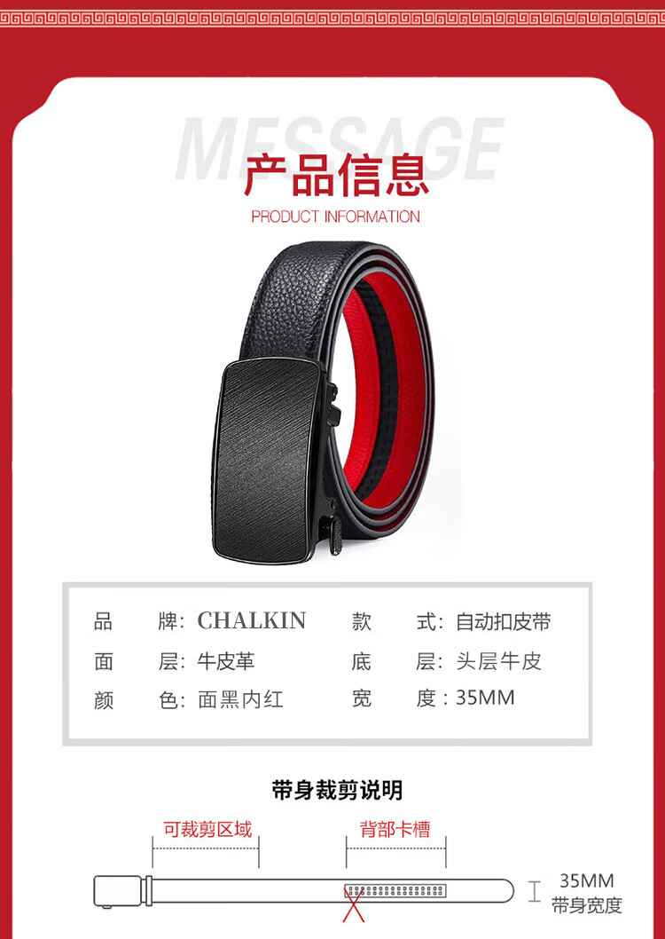 CHALKIN本命年腰带男马年红黑两面真皮针扣皮带双面用头层牛皮爸爸裤腰带 款49打孔带 115cm 体重135-145/裤码34-35