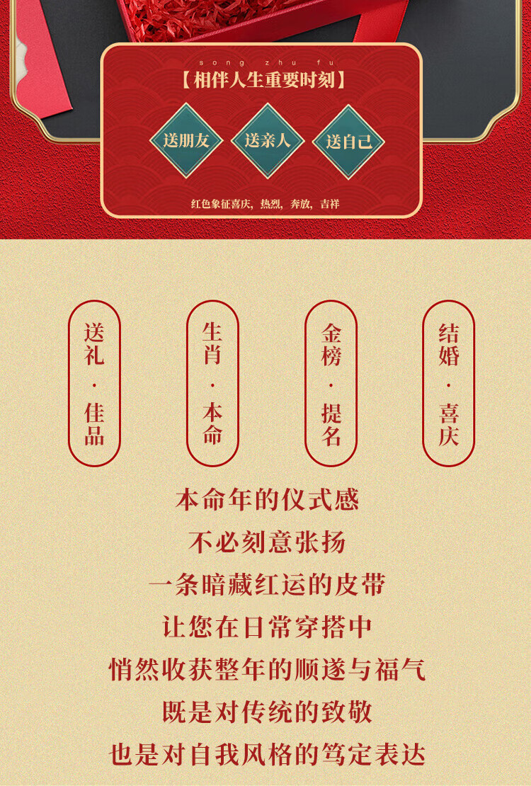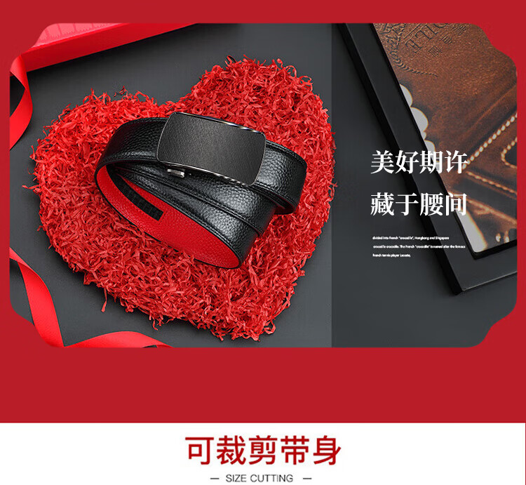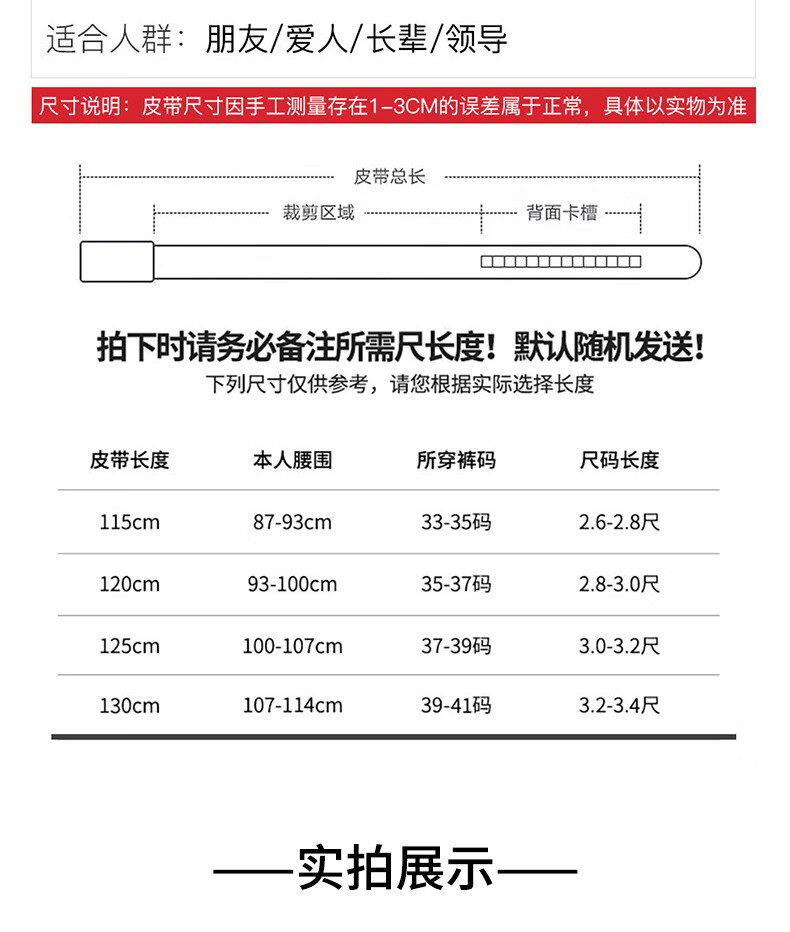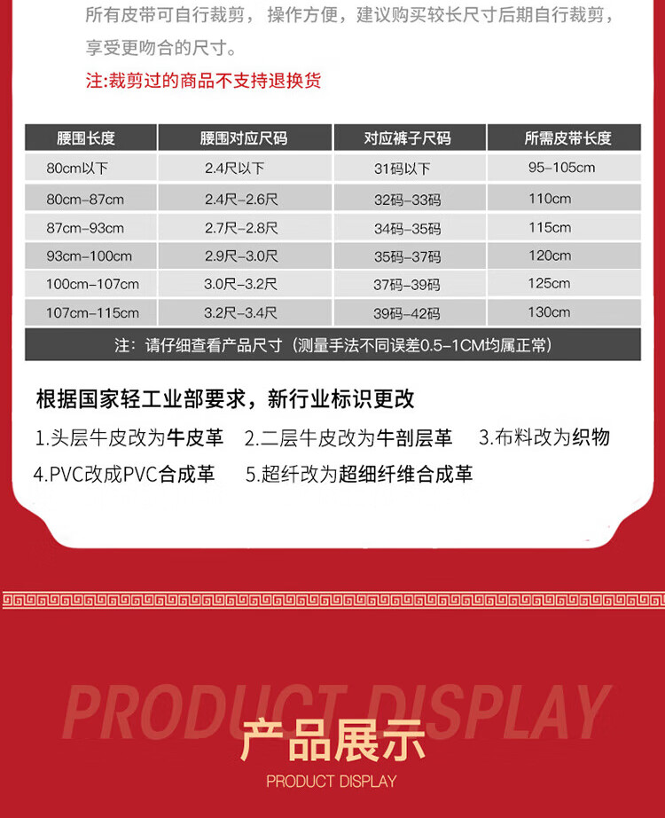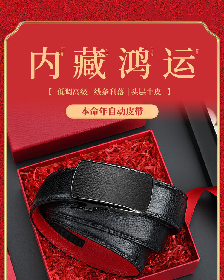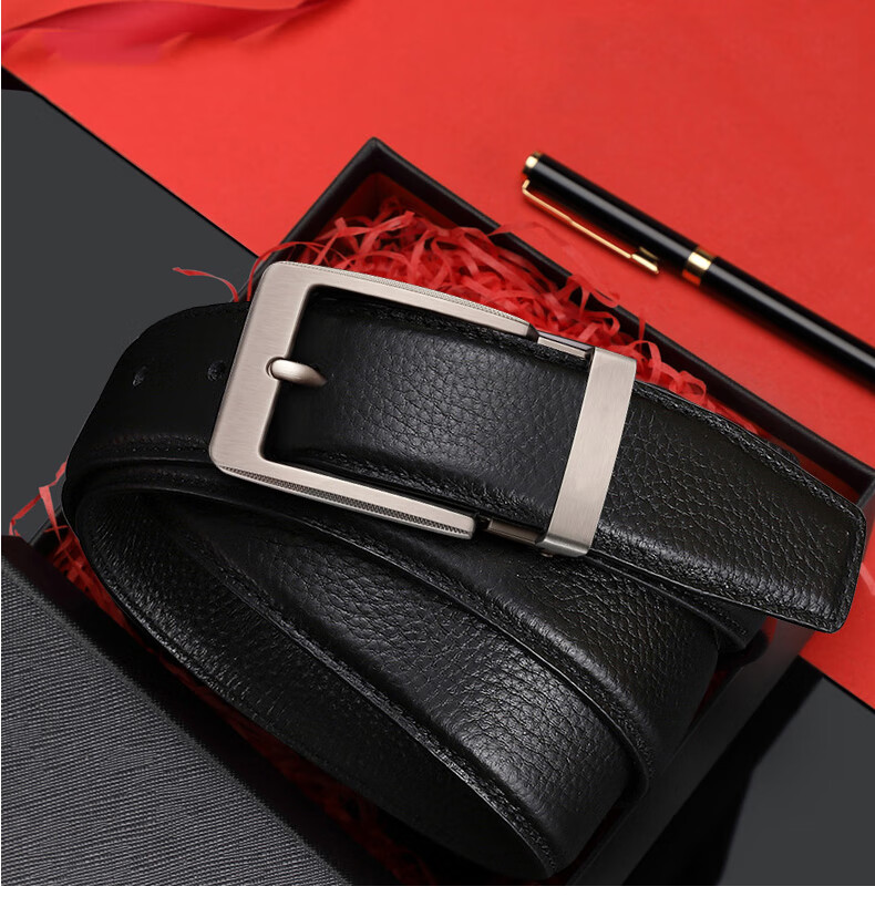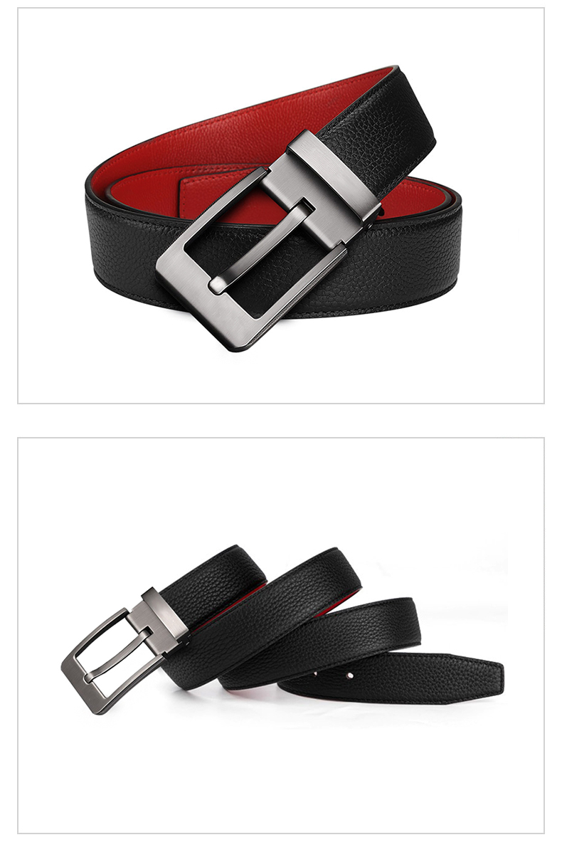 CHALKIN本命年腰带男马年红黑两面真皮针扣皮带双面用头层牛皮爸爸裤腰带 款49打孔带 115cm 体重135-145/裤码34-35