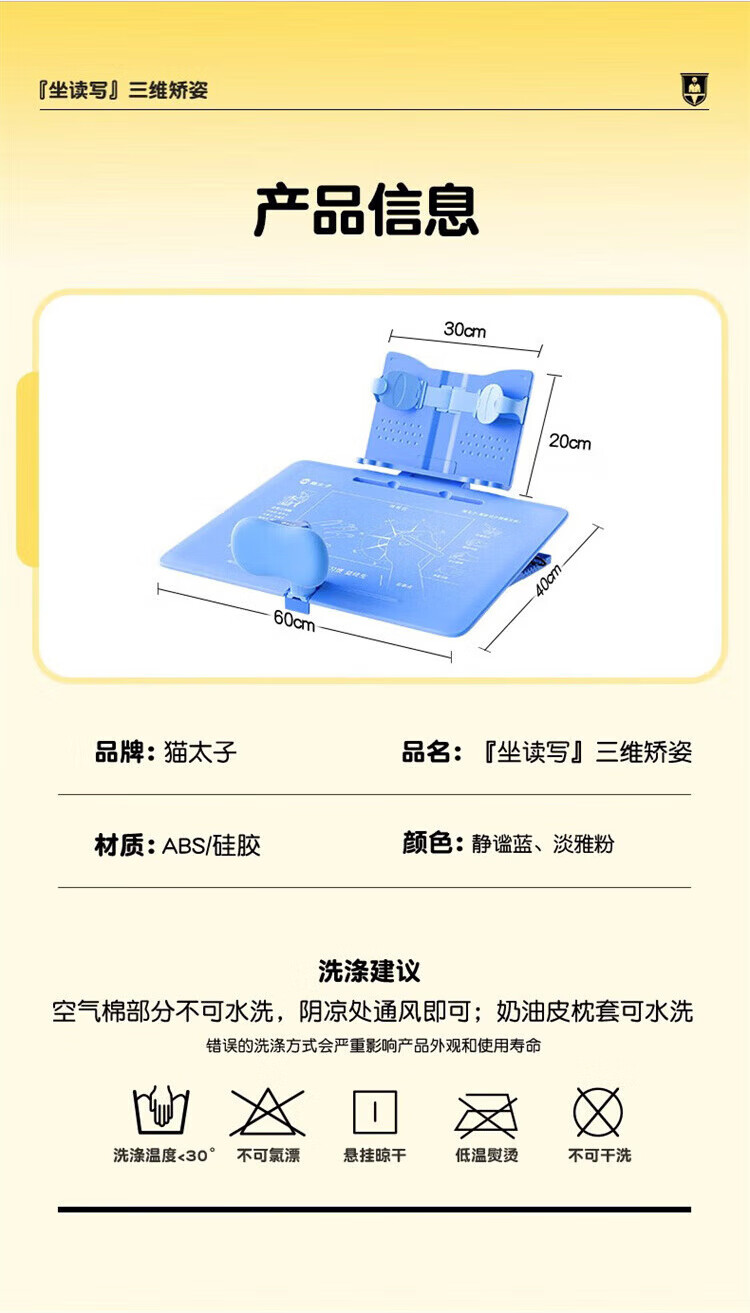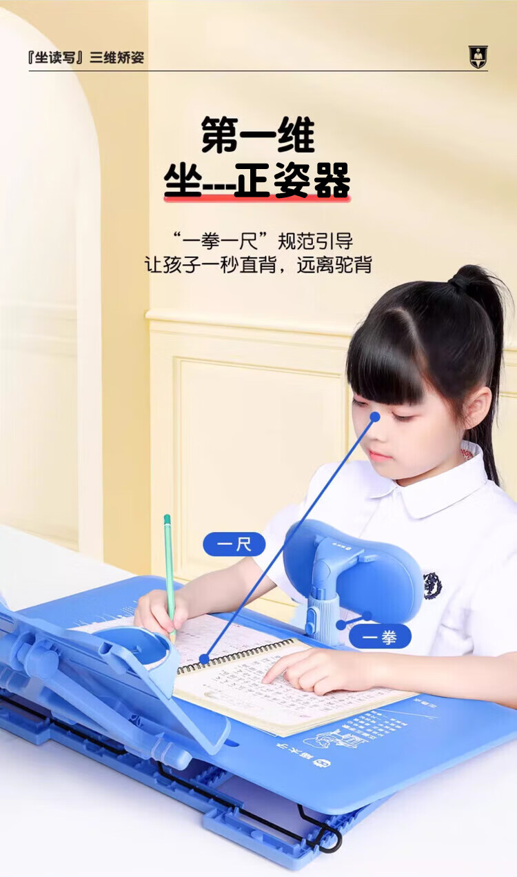 猫太子坐姿矫正器儿童低头姿势视力桌面款写字神器姿势阅读支架正姿学习桌板儿童节礼物 【店铺热销】淡雅粉