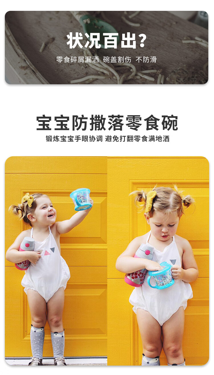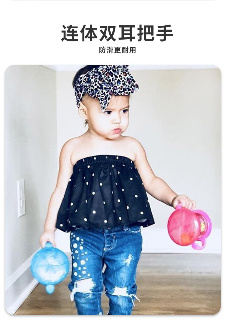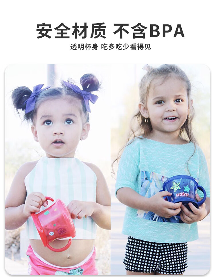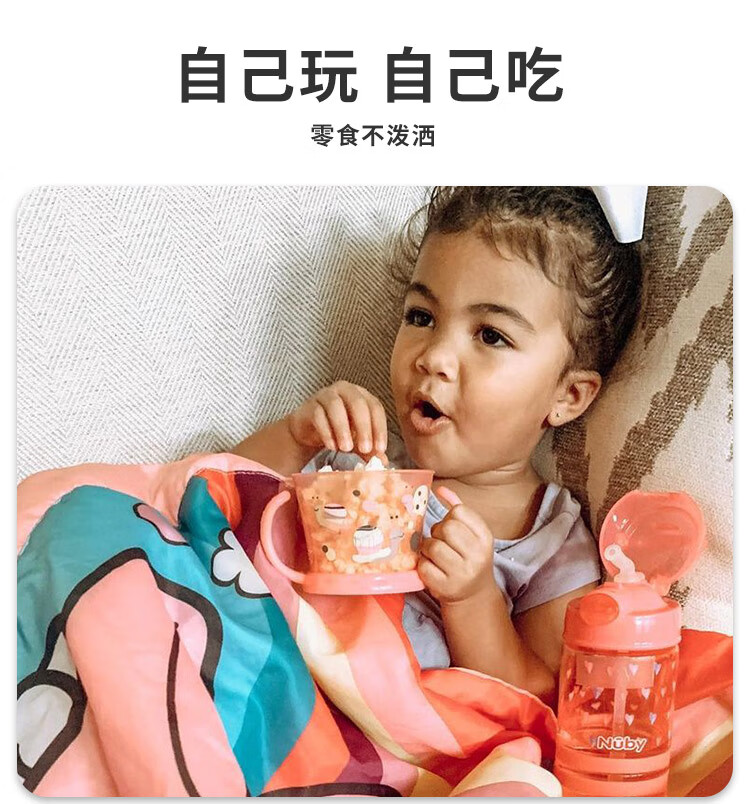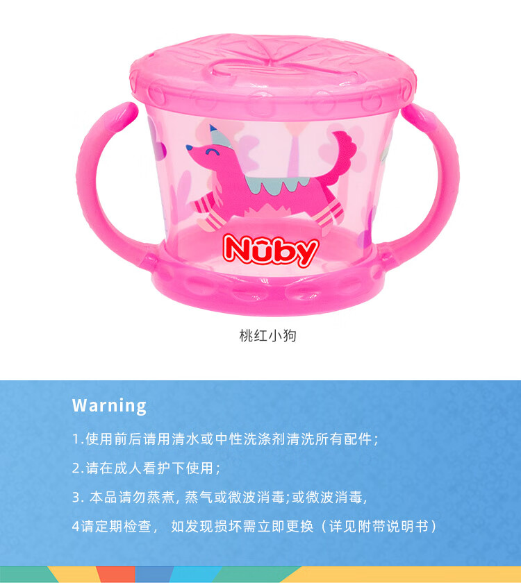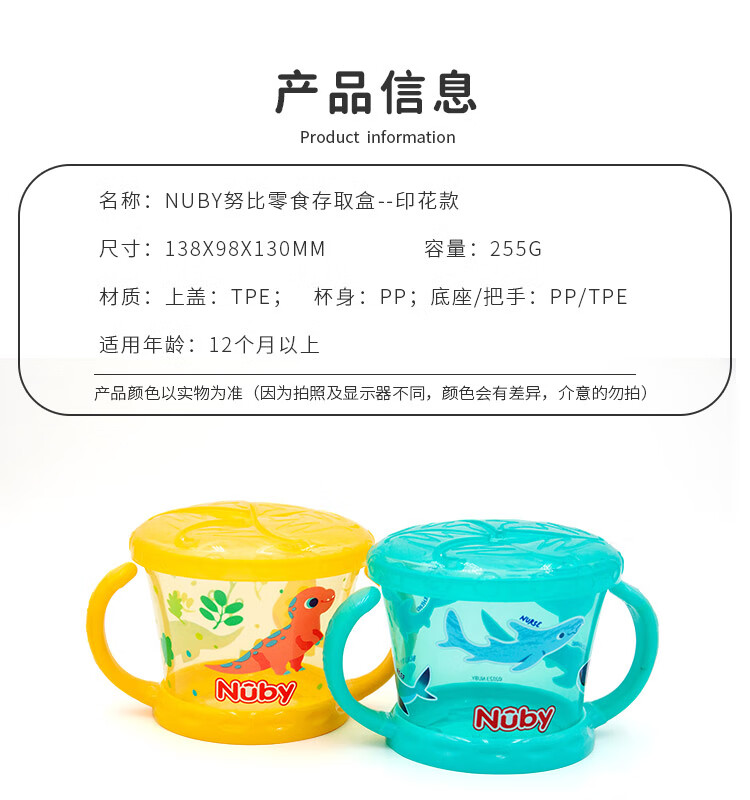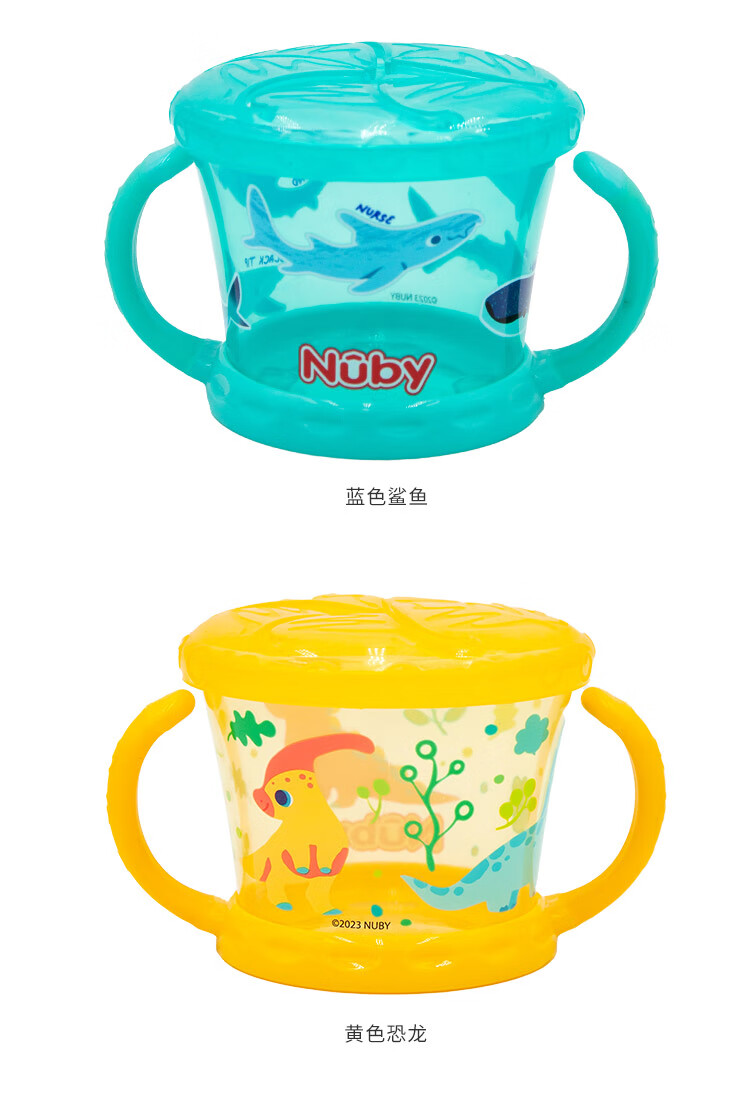 努比(Nuby)宝宝零食杯婴儿零食碗幼儿防泼洒带盖便携手柄儿童辅食盒 黄色恐龙
